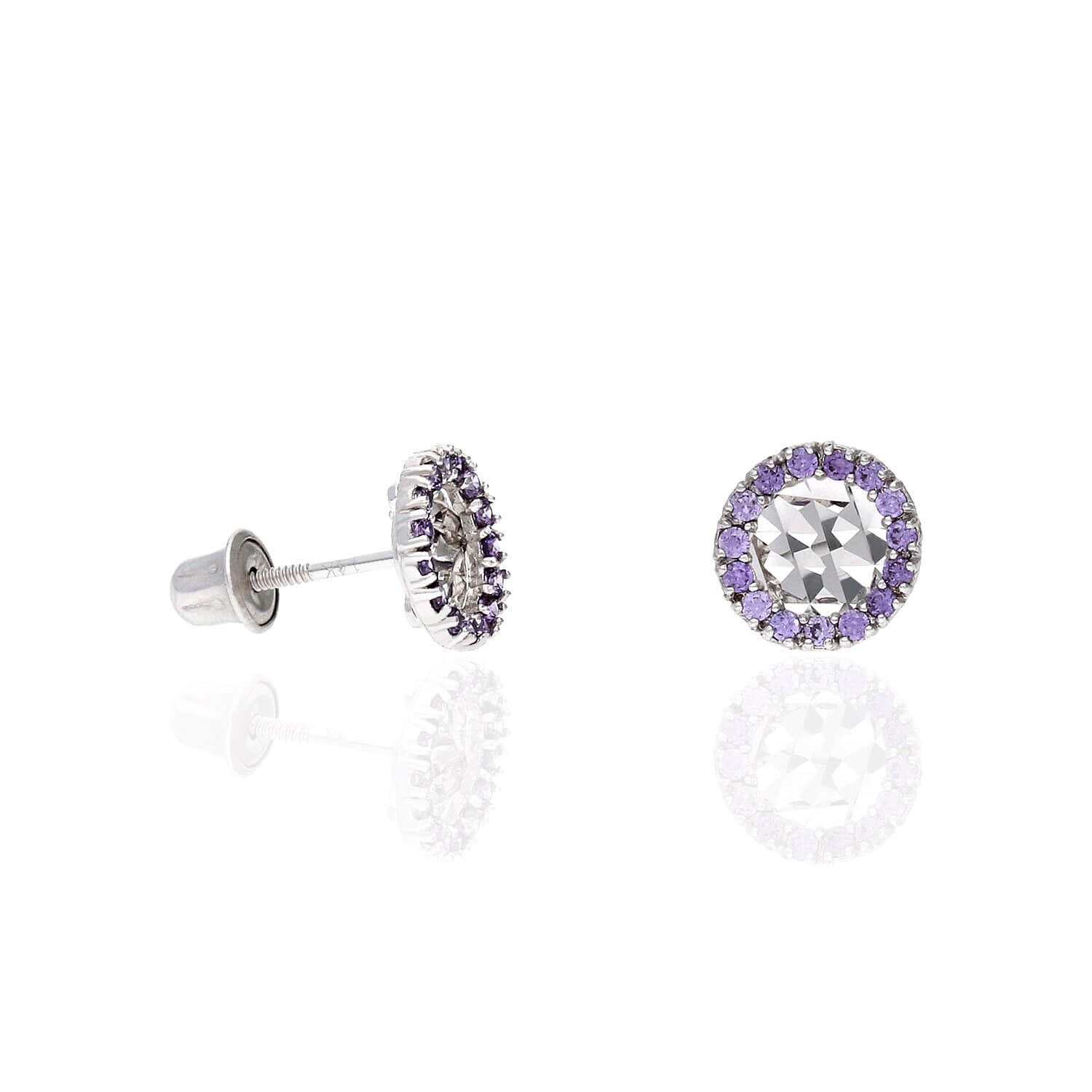 Read full return policy14K White Gold Diamond-Cut Gemstone Round Halo 7mm Screw Back Stud Earrings