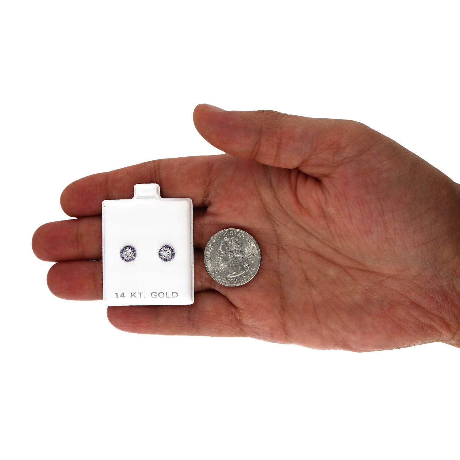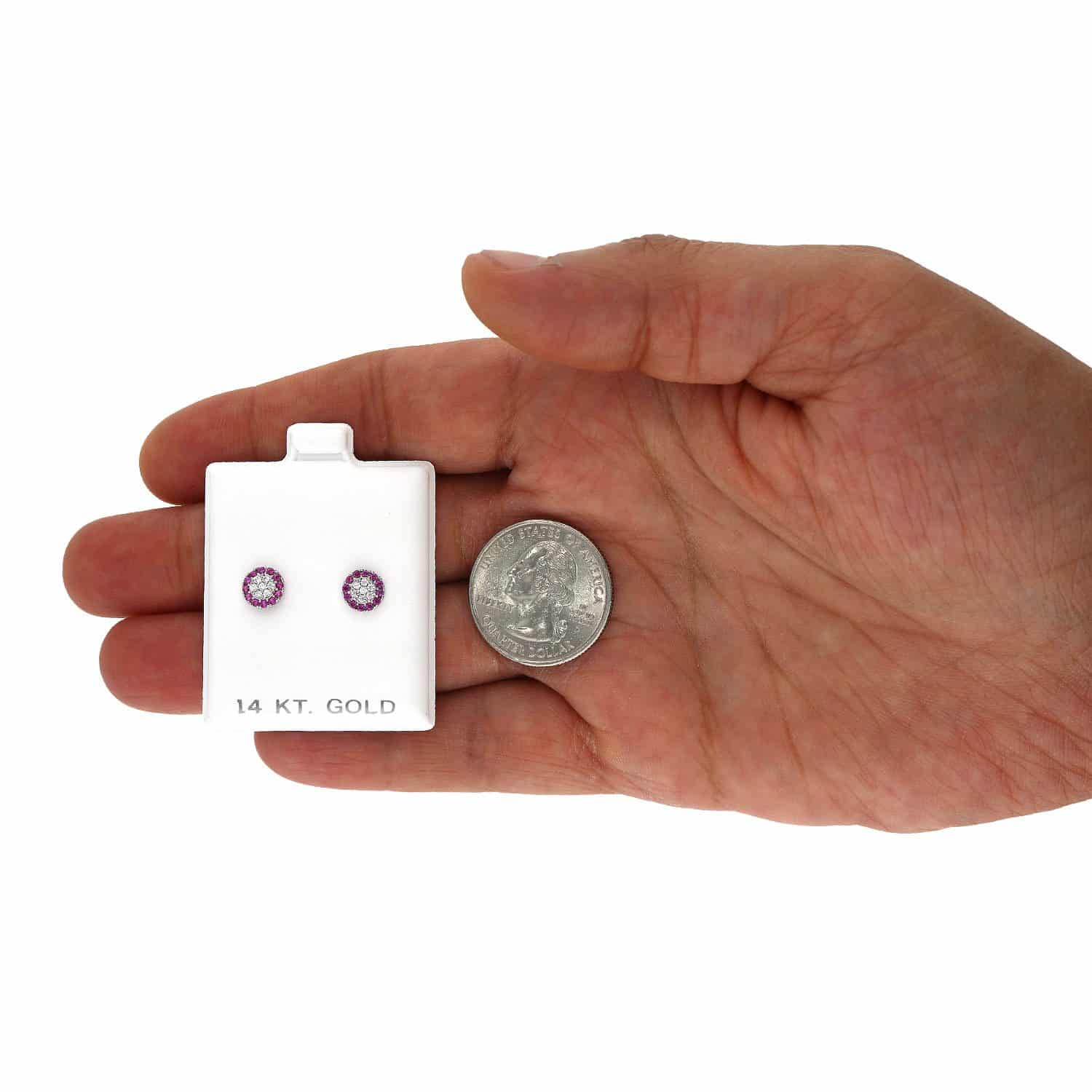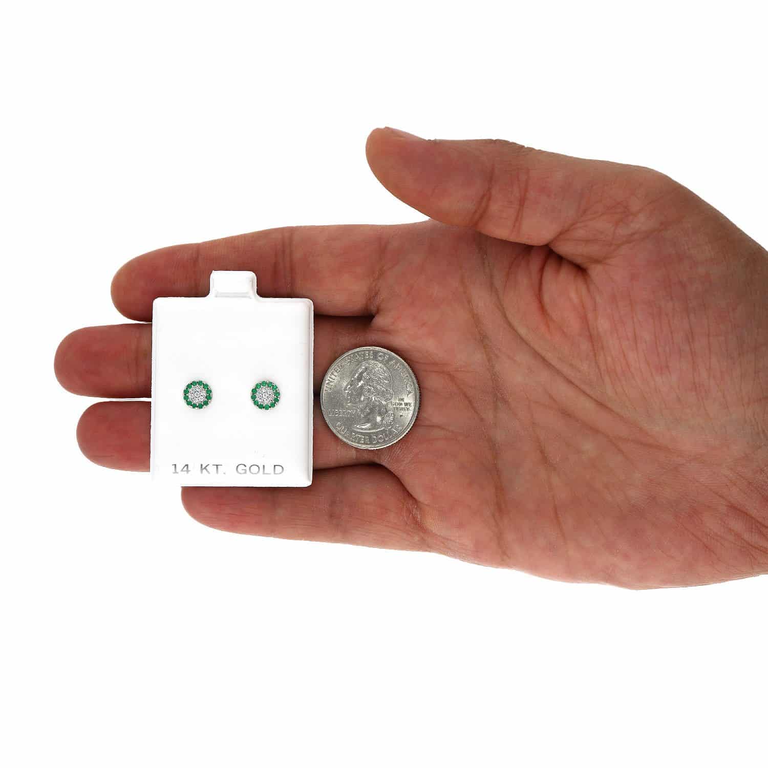 14K Gold CZ Gemstone Halo Round Cluster Screw Back Stud EarringsCouldn't load pickup availability