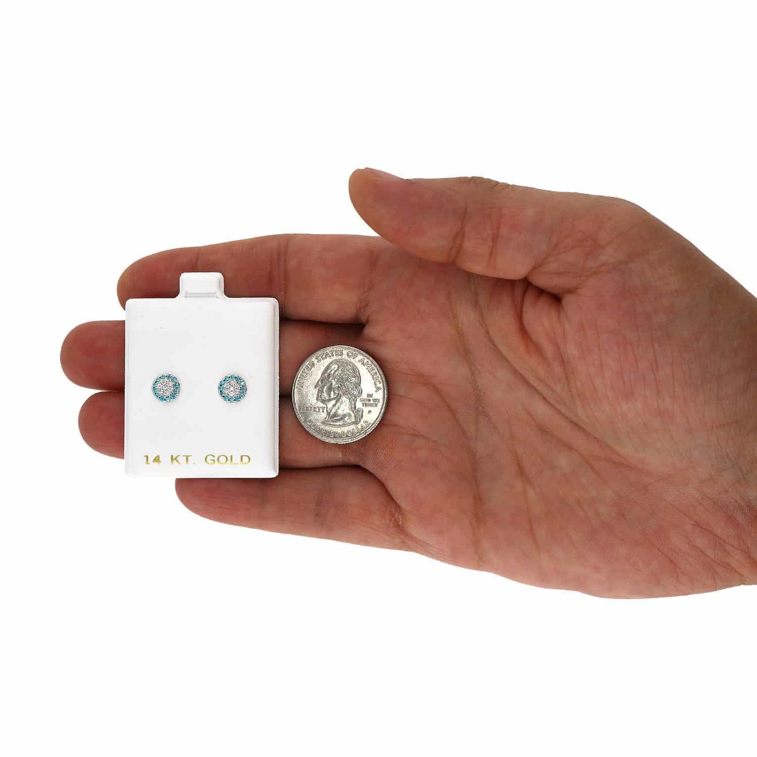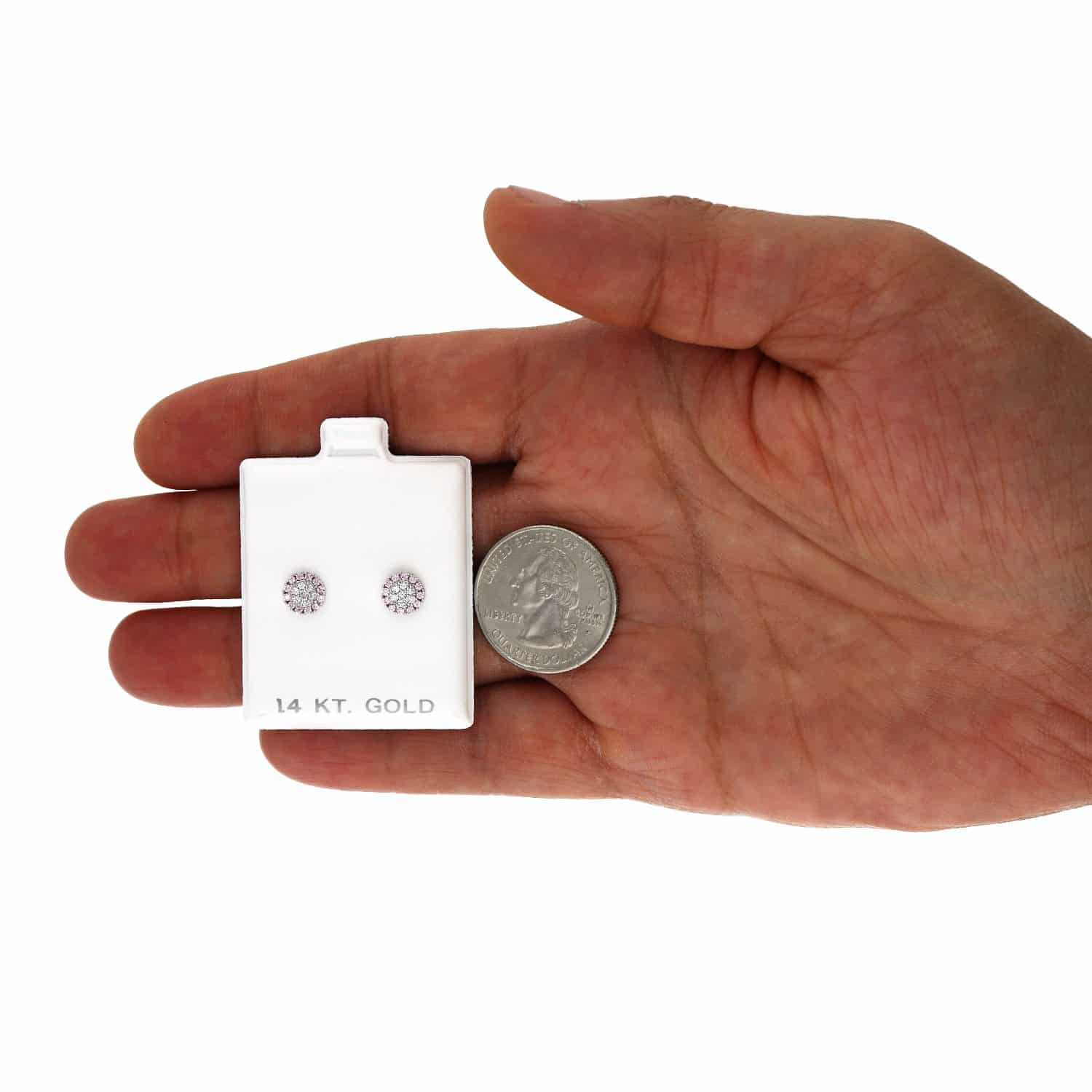Read full return policy14K Gold CZ Gemstone Halo Round Cluster Screw Back Stud Earrings