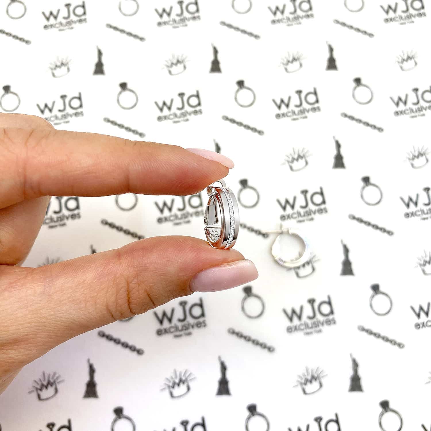 14K White Gold Glitter Strip Line Clip-On Post Half Hoop Earrings 18mmCouldn't load pickup availability