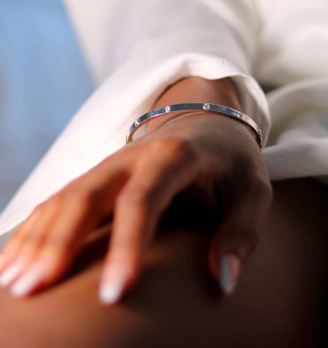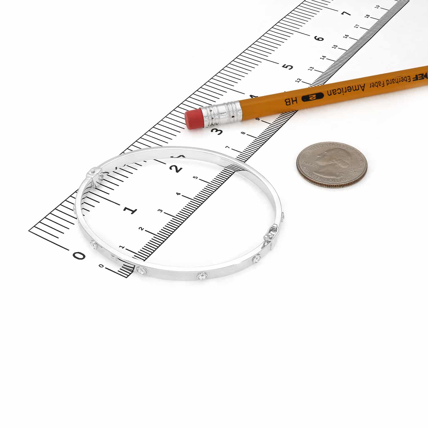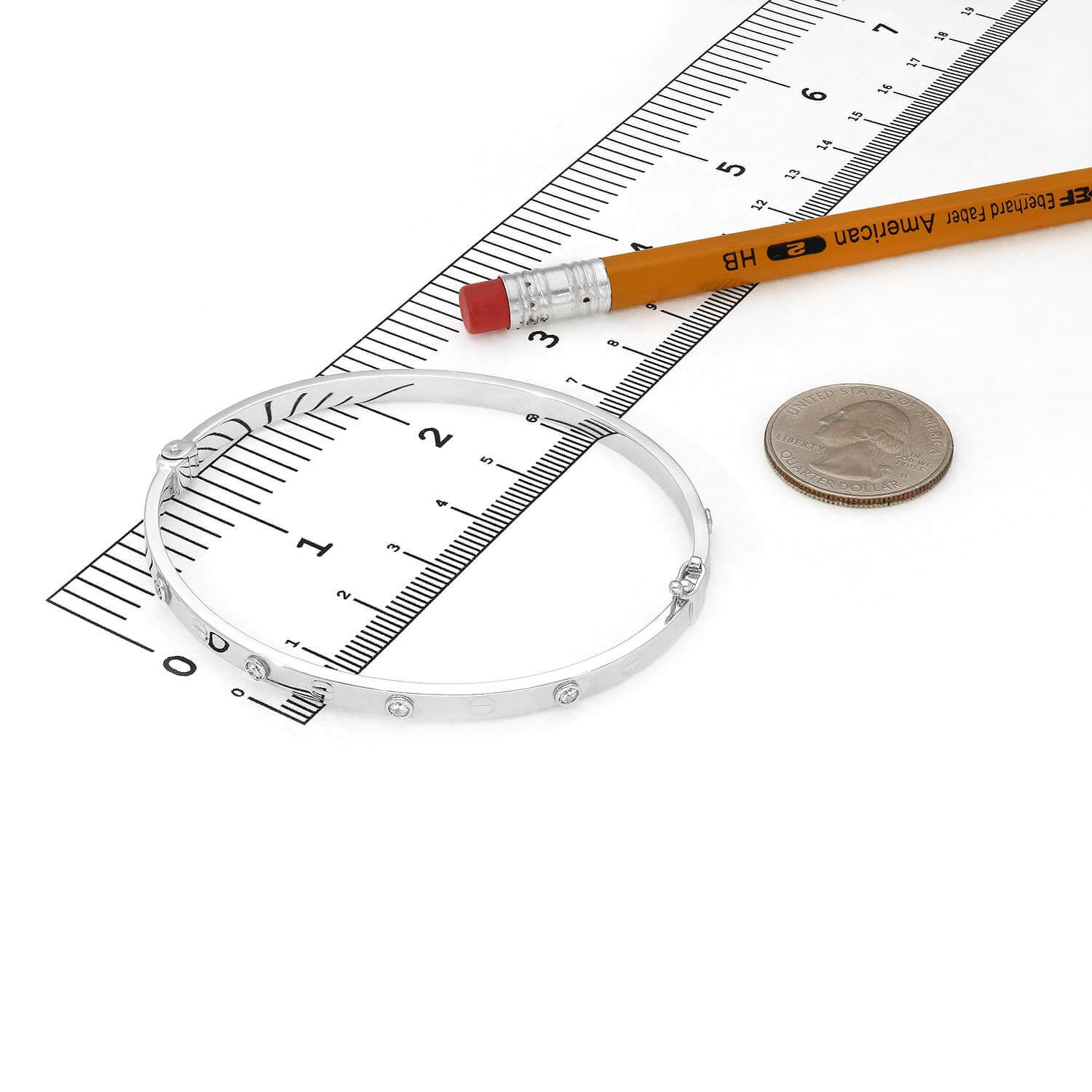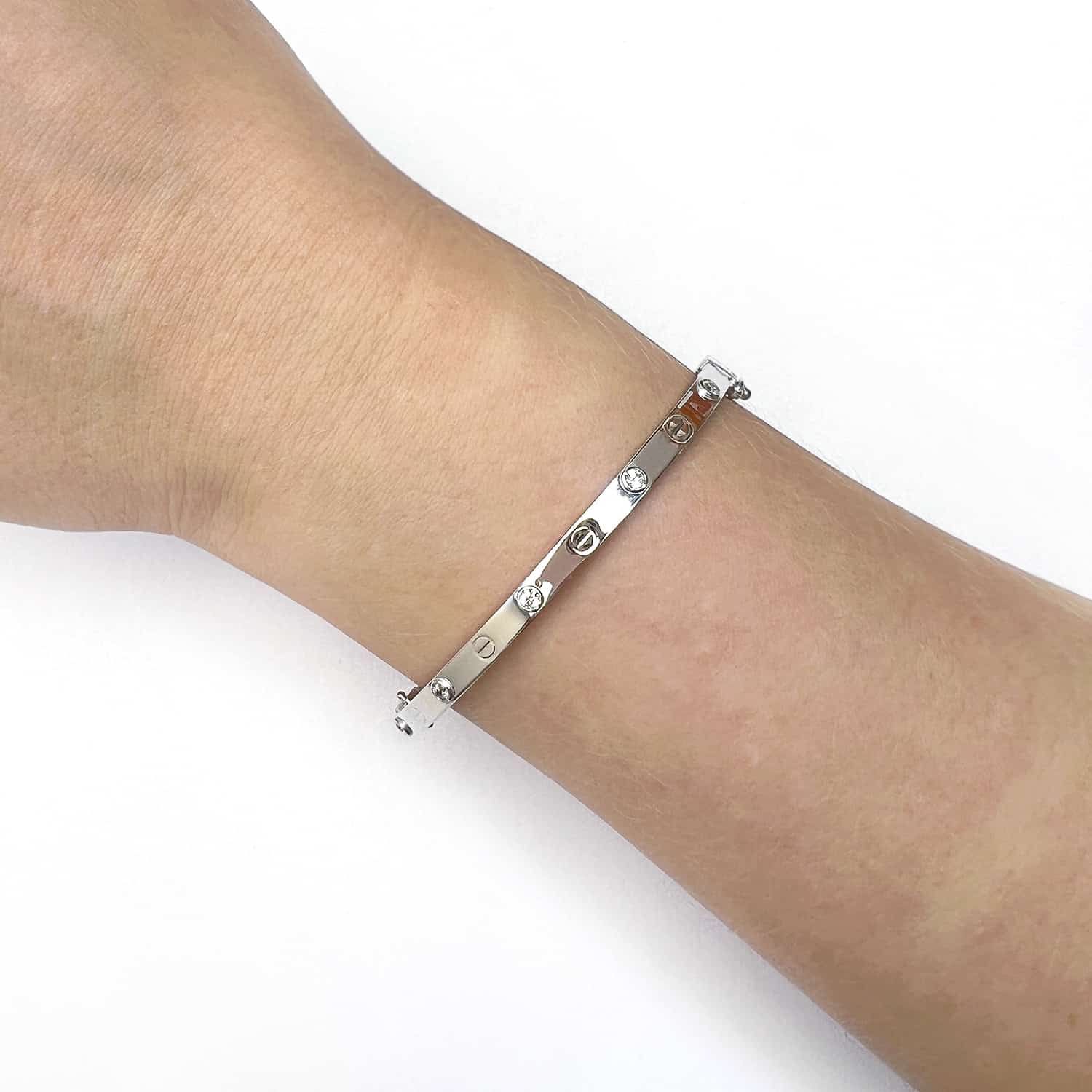 14K White Gold 4mm Screw CZ Bangle Bracelet (Hollow) 7.25"-7.5"Couldn't load pickup availability