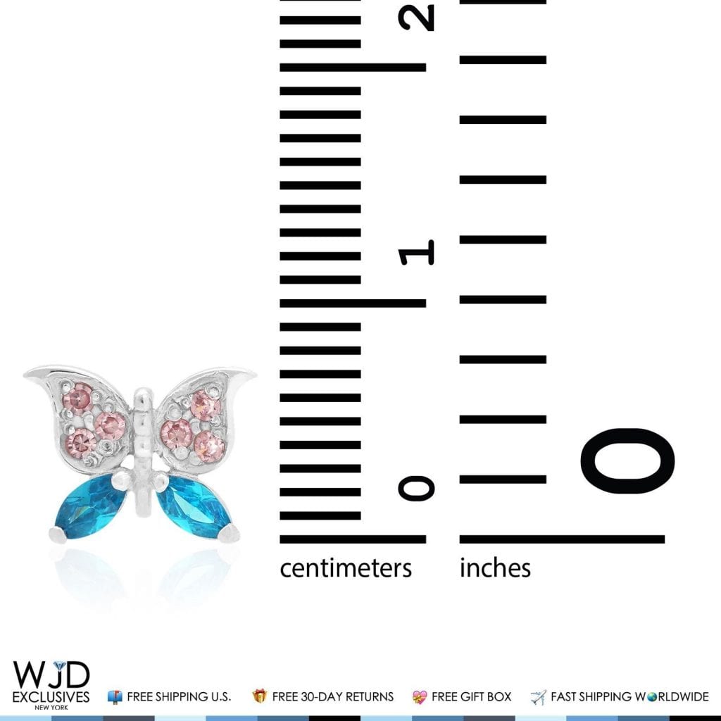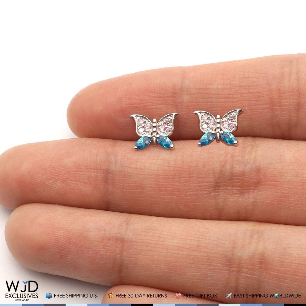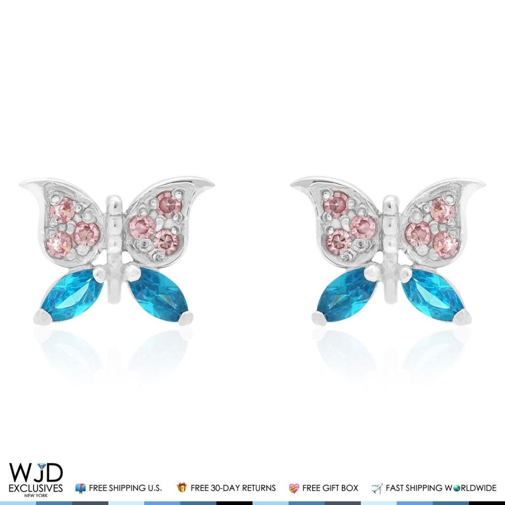 14K White Gold Pink Tourmaline & Blue Topaz Butterfly Screwback Stud EarringsCouldn't load pickup availability