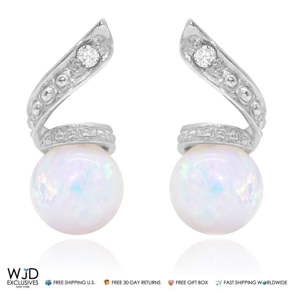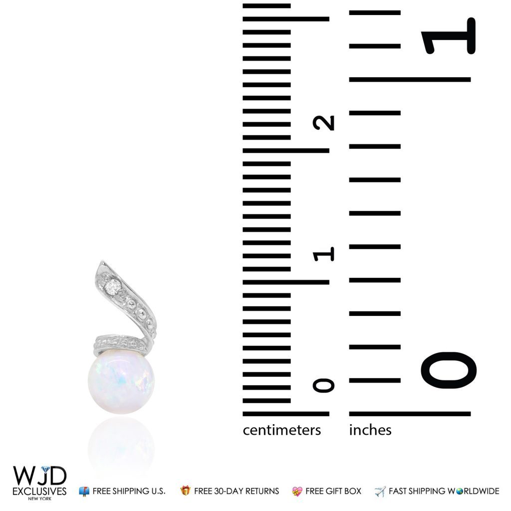 14k Whtie Gold 0.05Ct Diamond White Opal Ball Stud Swirl Earrings 0.5"Couldn't load pickup availability