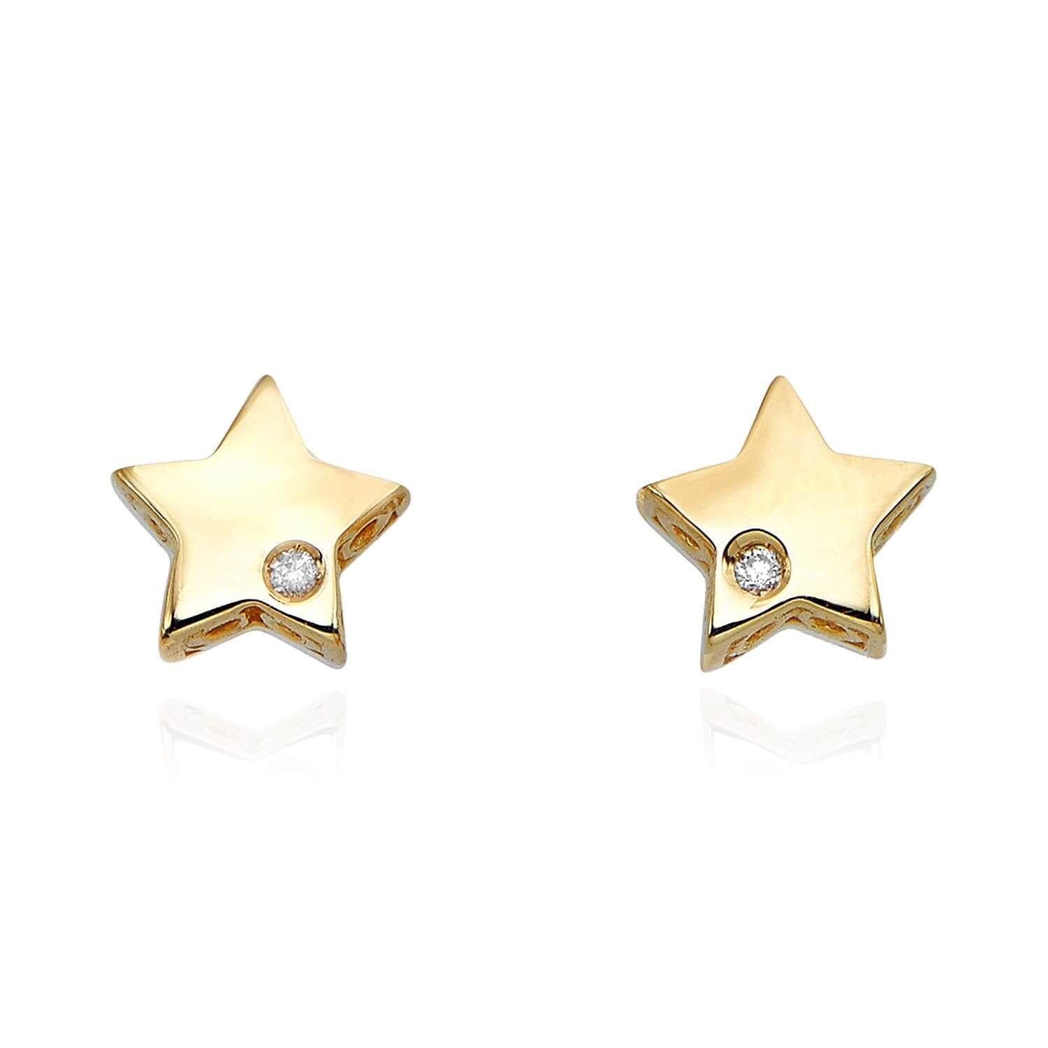 Read full return policy14K Yellow Gold 0.01Ct Natural Diamond 6.5mm Star Push Back Stud Earrings