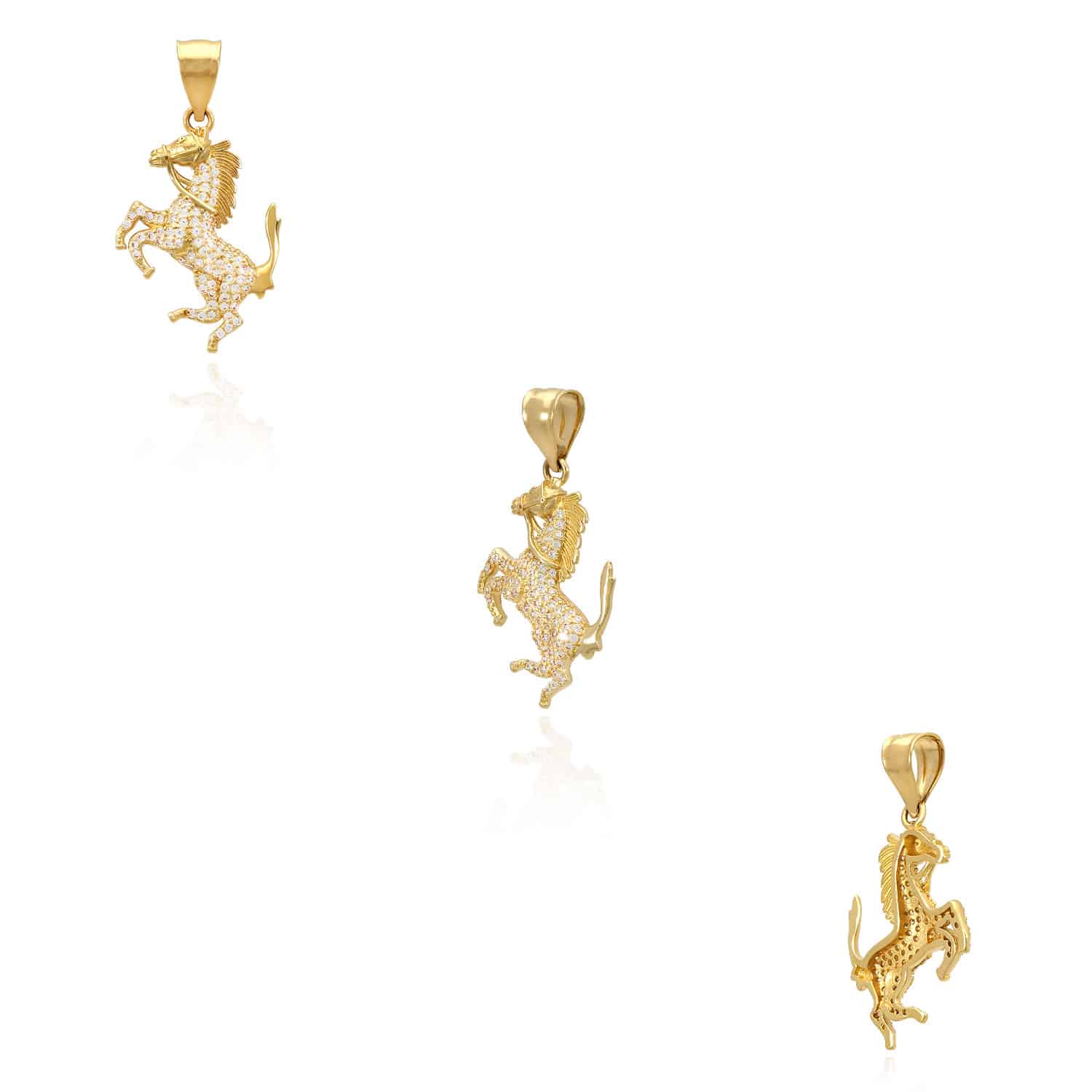 Read full return policy14K Yellow Gold 0.85CTW CZ Pave Horse Pendant 1.38"