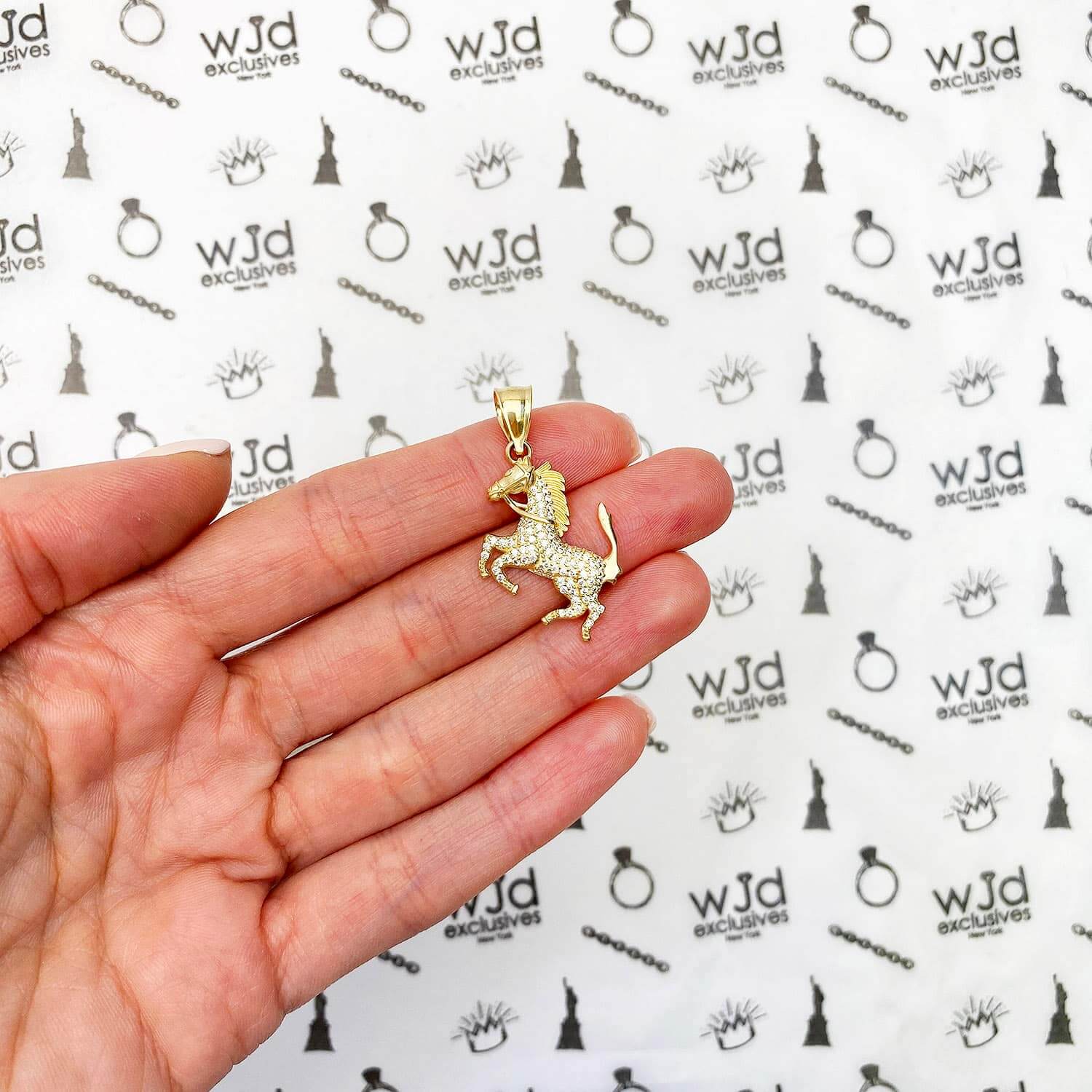 14K Yellow Gold 0.85CTW CZ Pave Horse Pendant 1.38"Couldn't load pickup availability