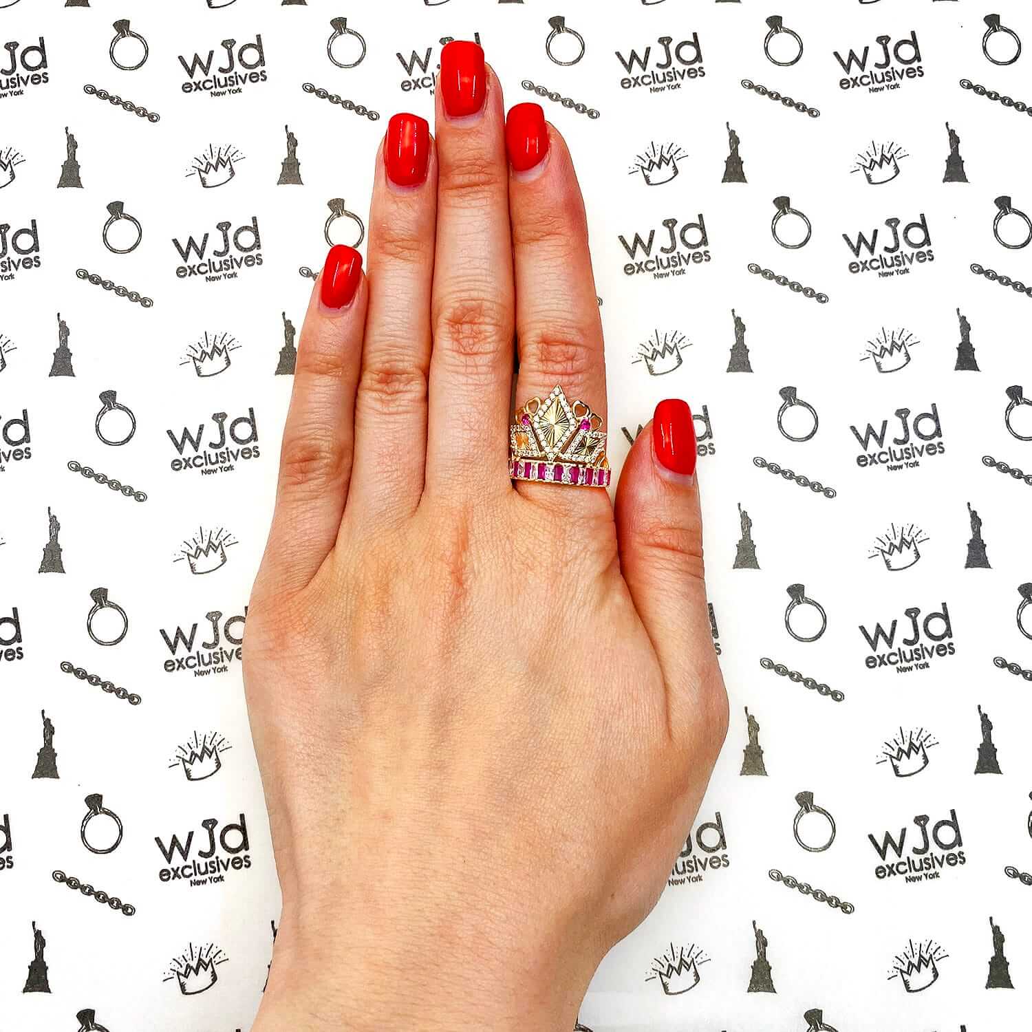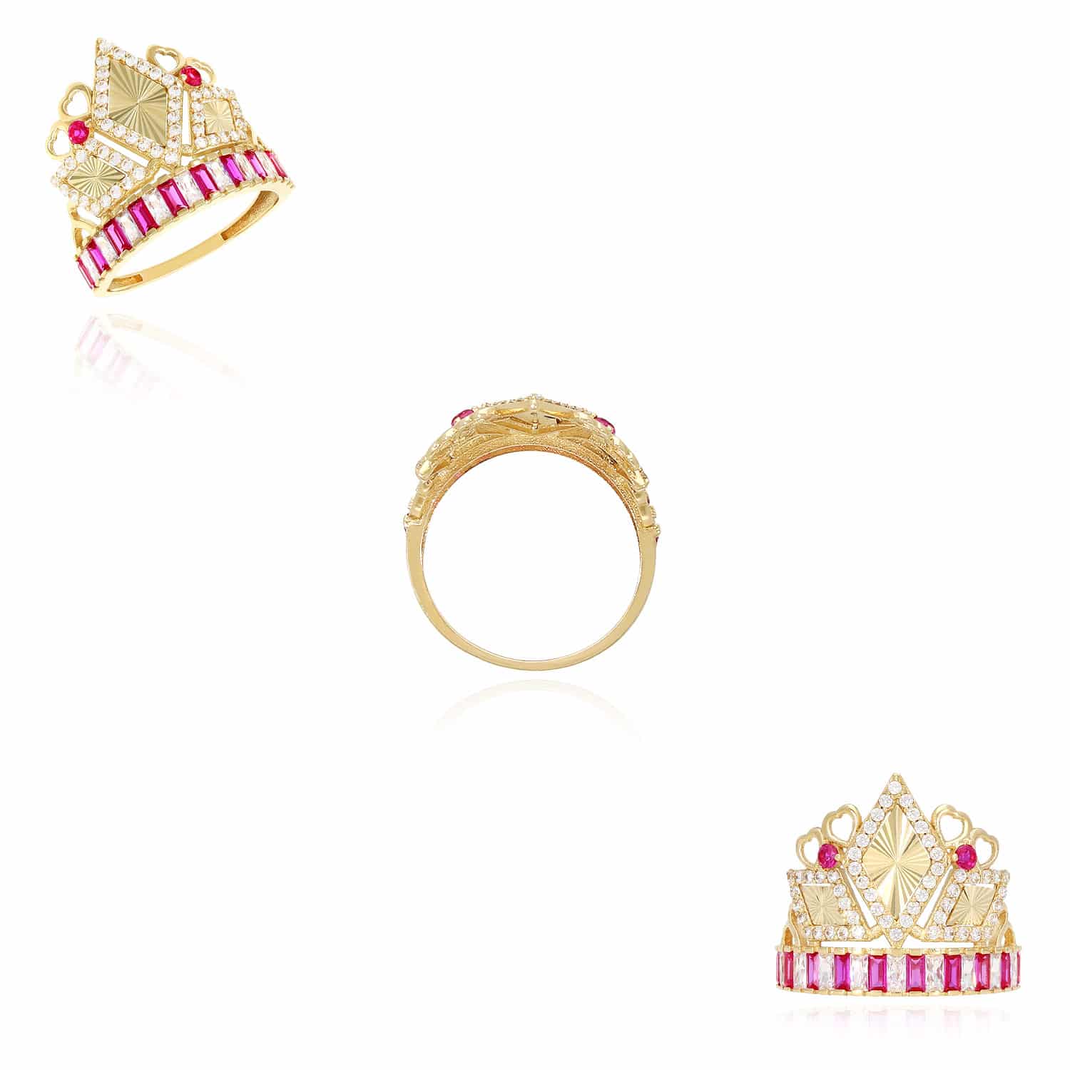 Read full return policy14K Yellow Gold 1.25CTW CZ Ruby Royal Crown Rhombus Cocktail Ring