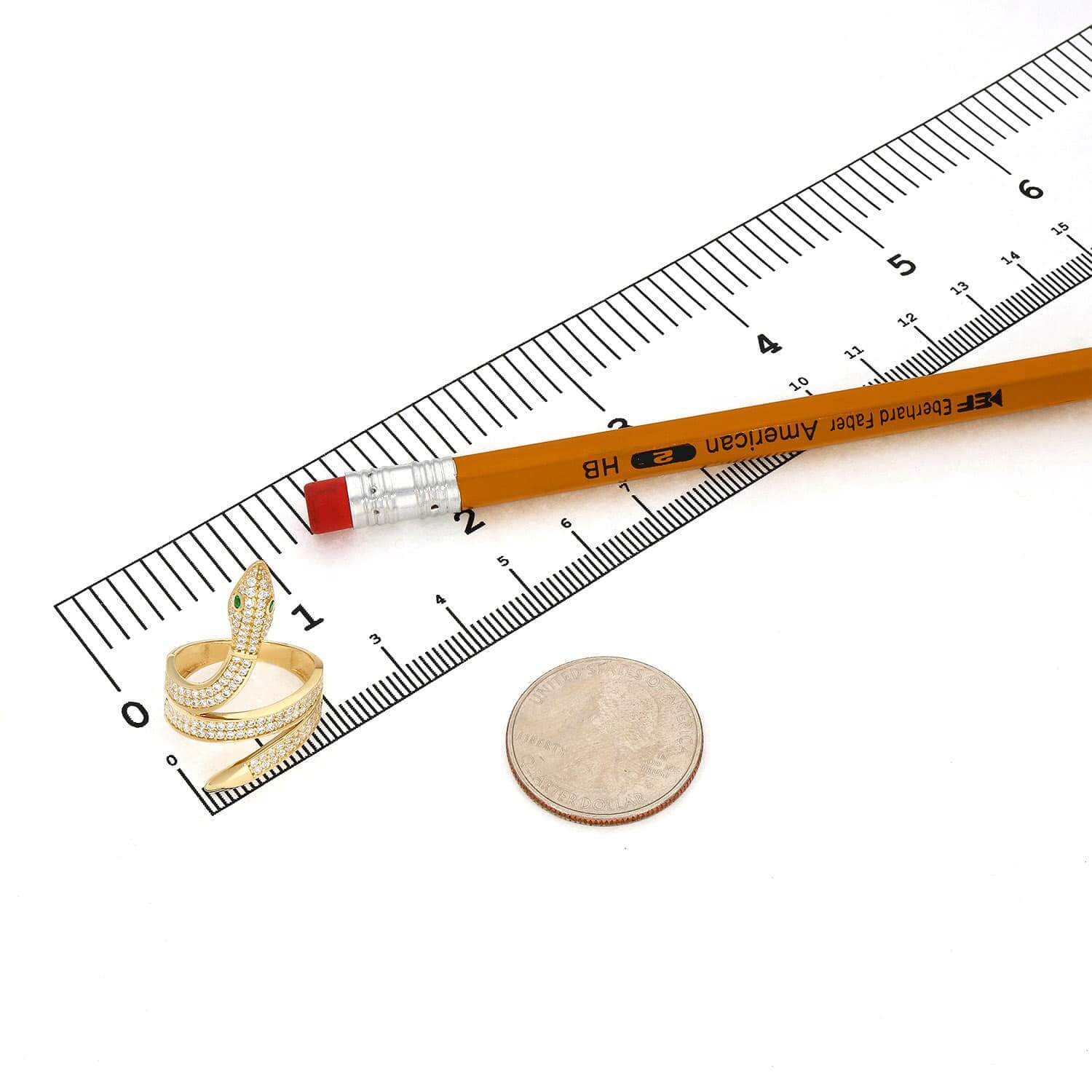 14K Yellow Gold 3.8CTW CZ Pave Emerald Green Eyes Snake RingCouldn't load pickup availability