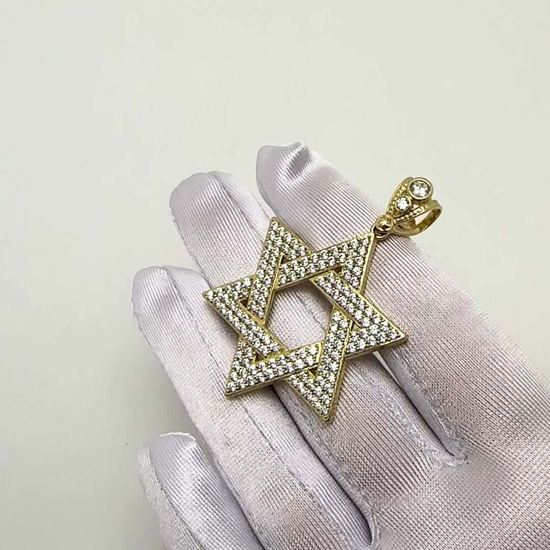 14K Yellow Gold 3.5CT CZ Star Of David Pendant 2"Couldn't load pickup availability