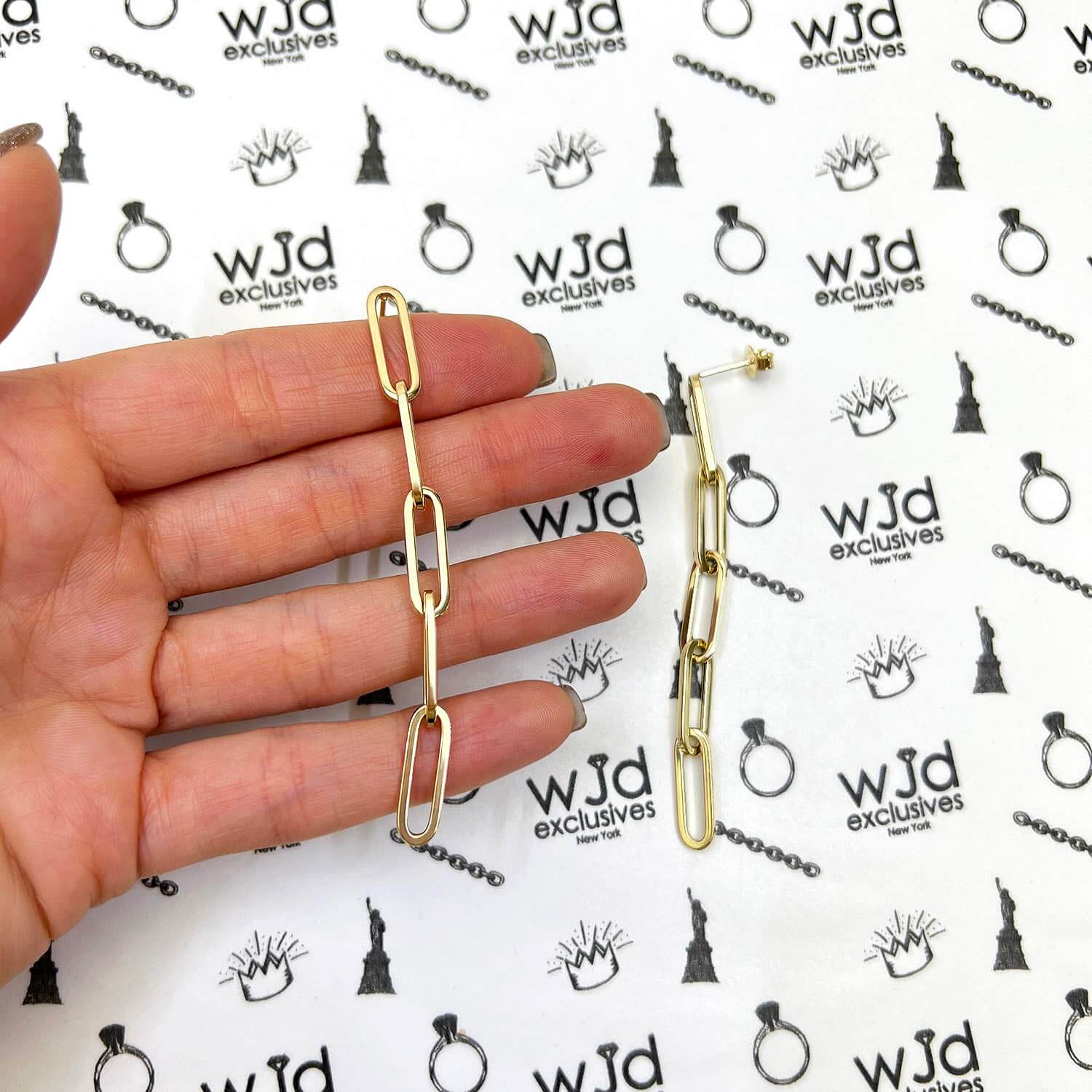 Read full return policy14K Yellow Gold 5-Link Paperclip Drop Push Back Earrings 76mm