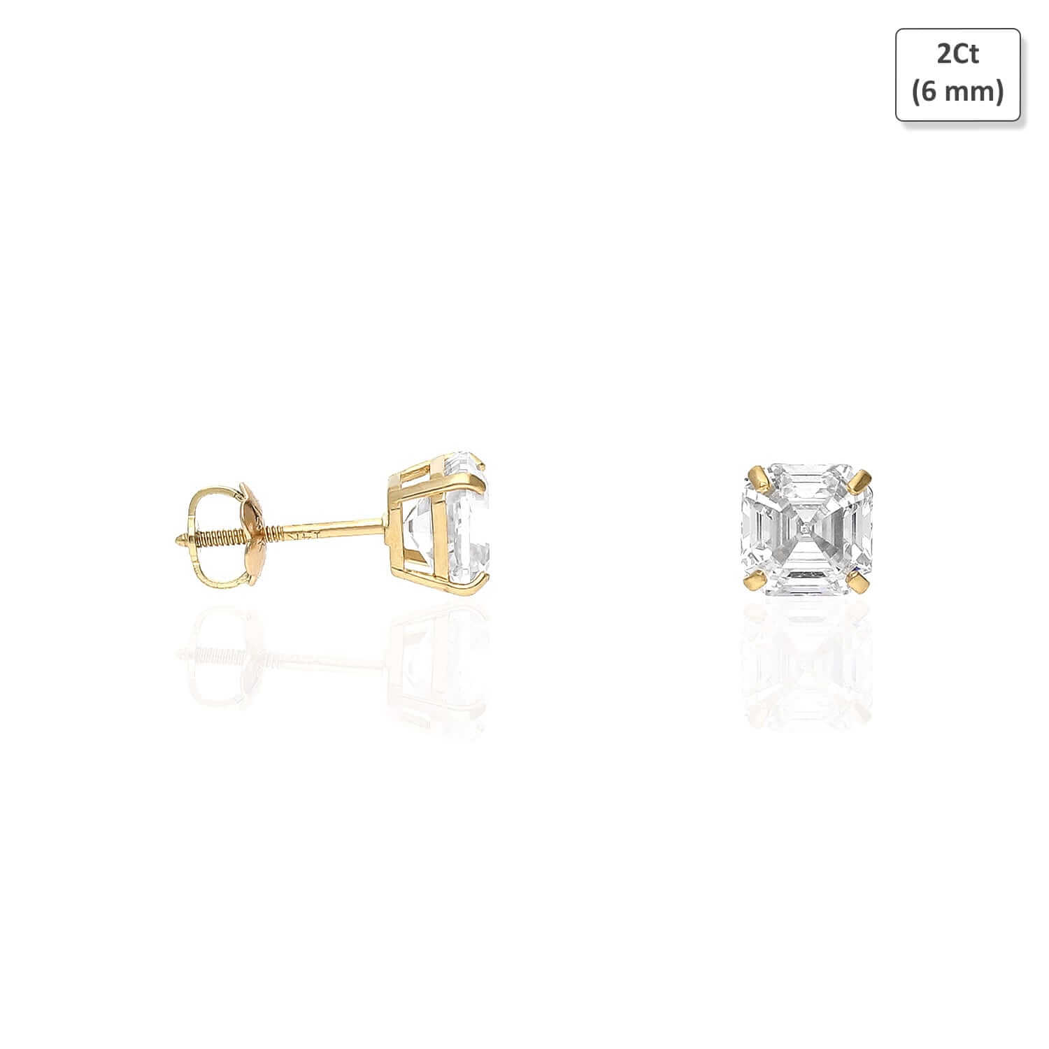 Read full return policy14K Yellow Gold Asscher-Cut CZ Screw Back Stud Earrings 1.5Ct-6Ct