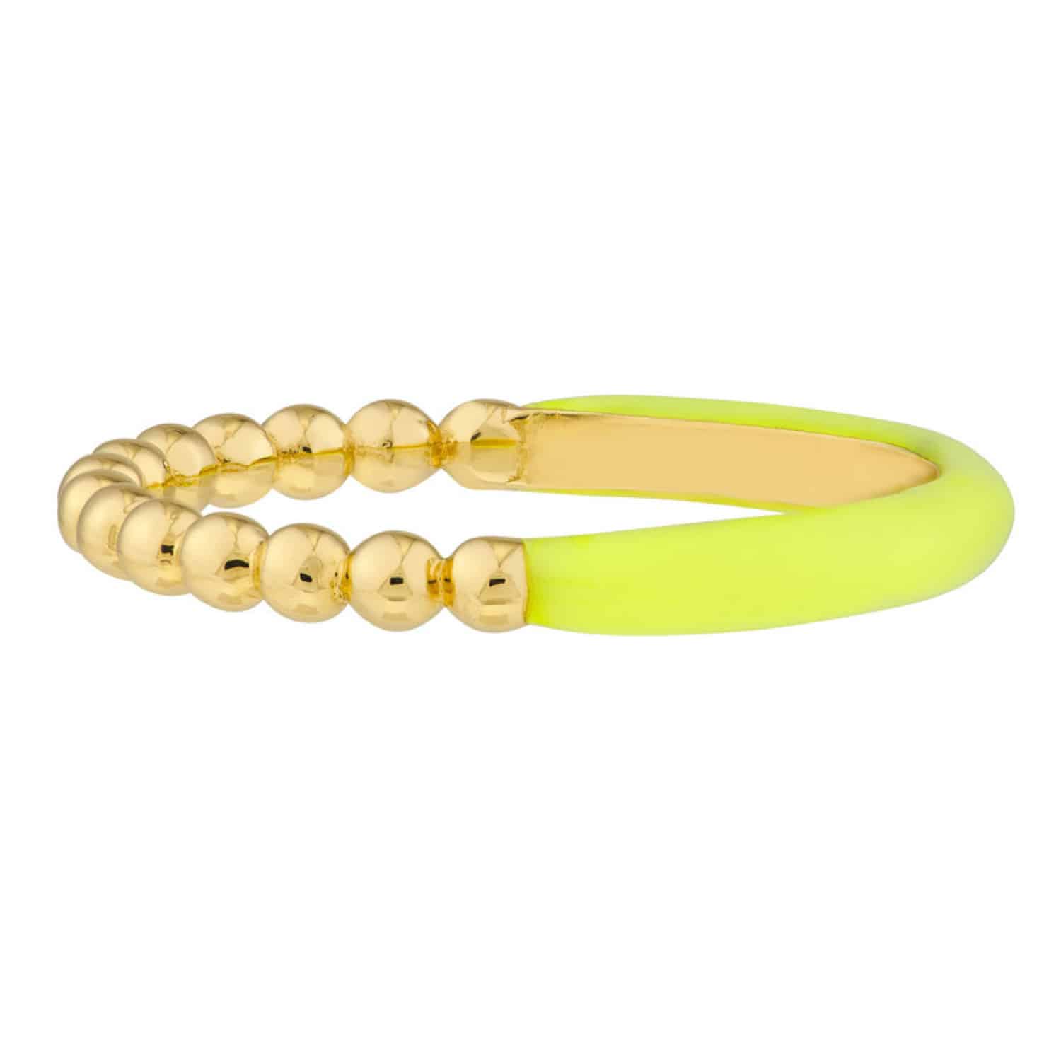 Read full return policy14K Gold Beaded Neon Yellow Enamel Cocktail Ring