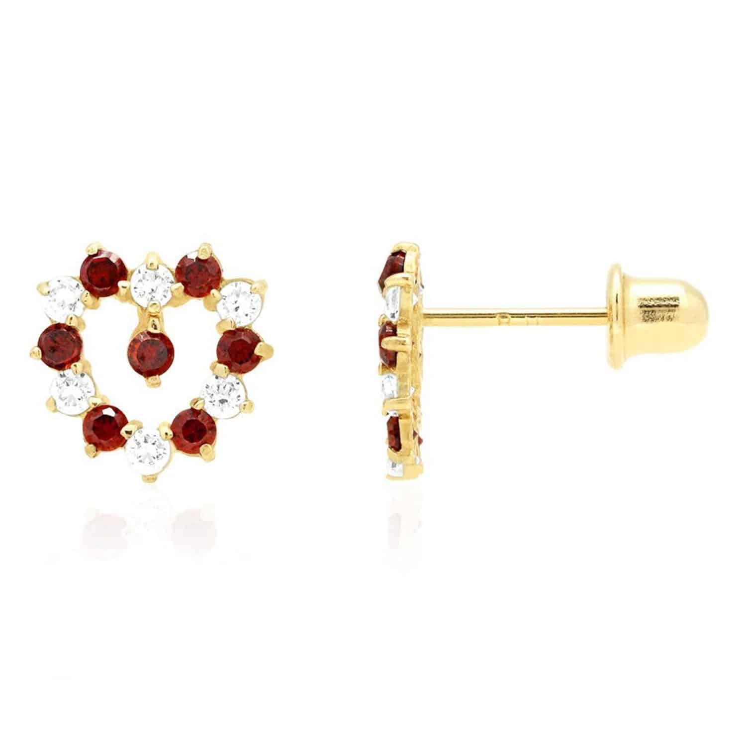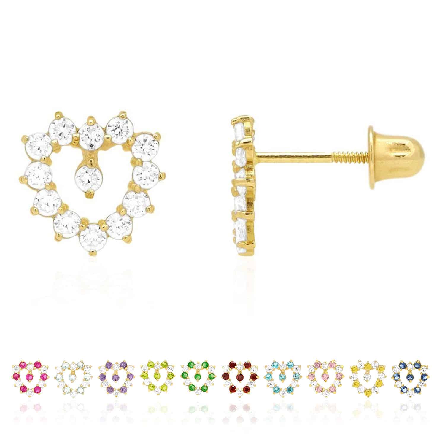 14K Yellow Gold Birthstone And White Zircon Heart Baby Screw Back Stud EarringsCouldn't load pickup availability