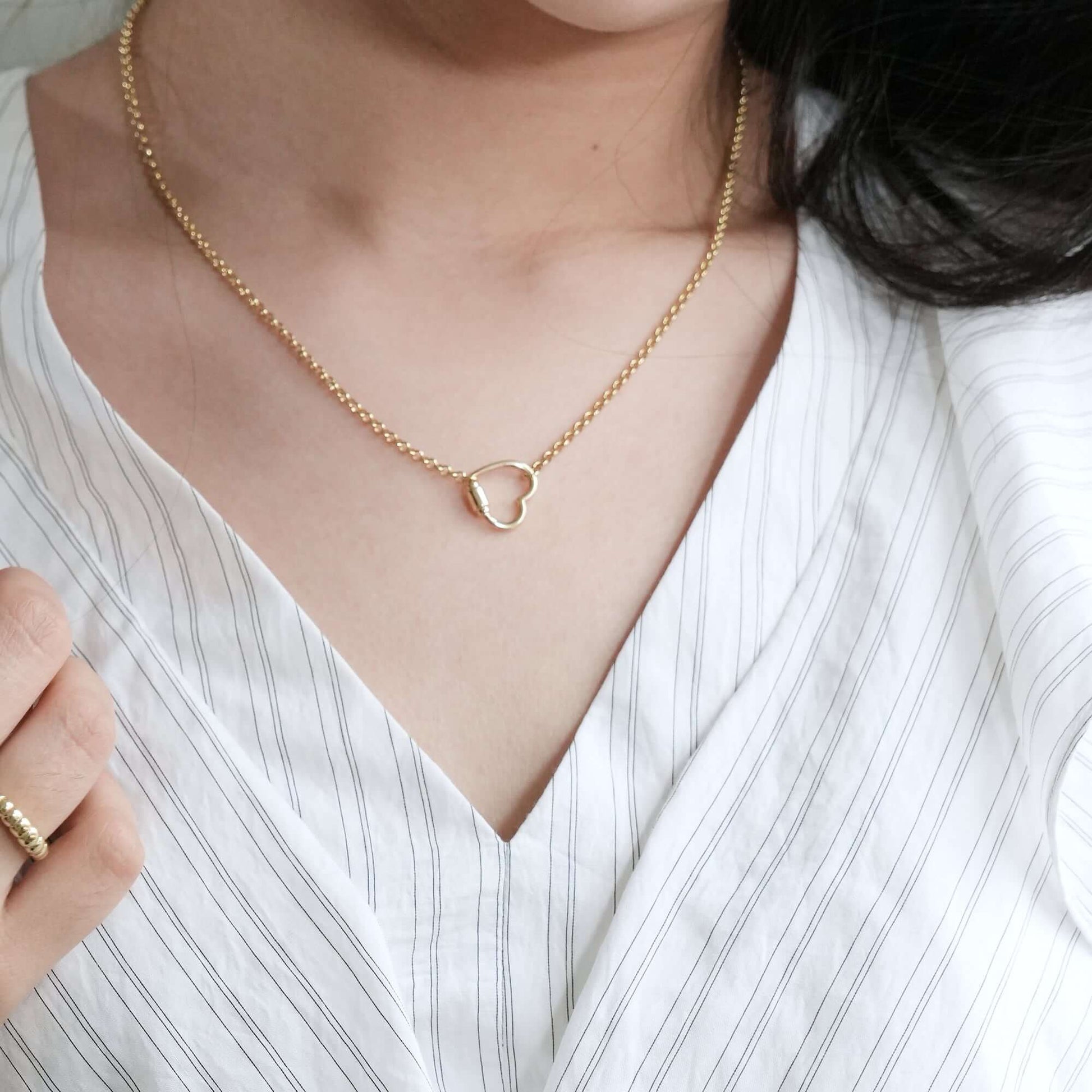 14K Yellow Gold Carabiner Heart Rolo Necklace (Hollow) 18"Couldn't load pickup availability