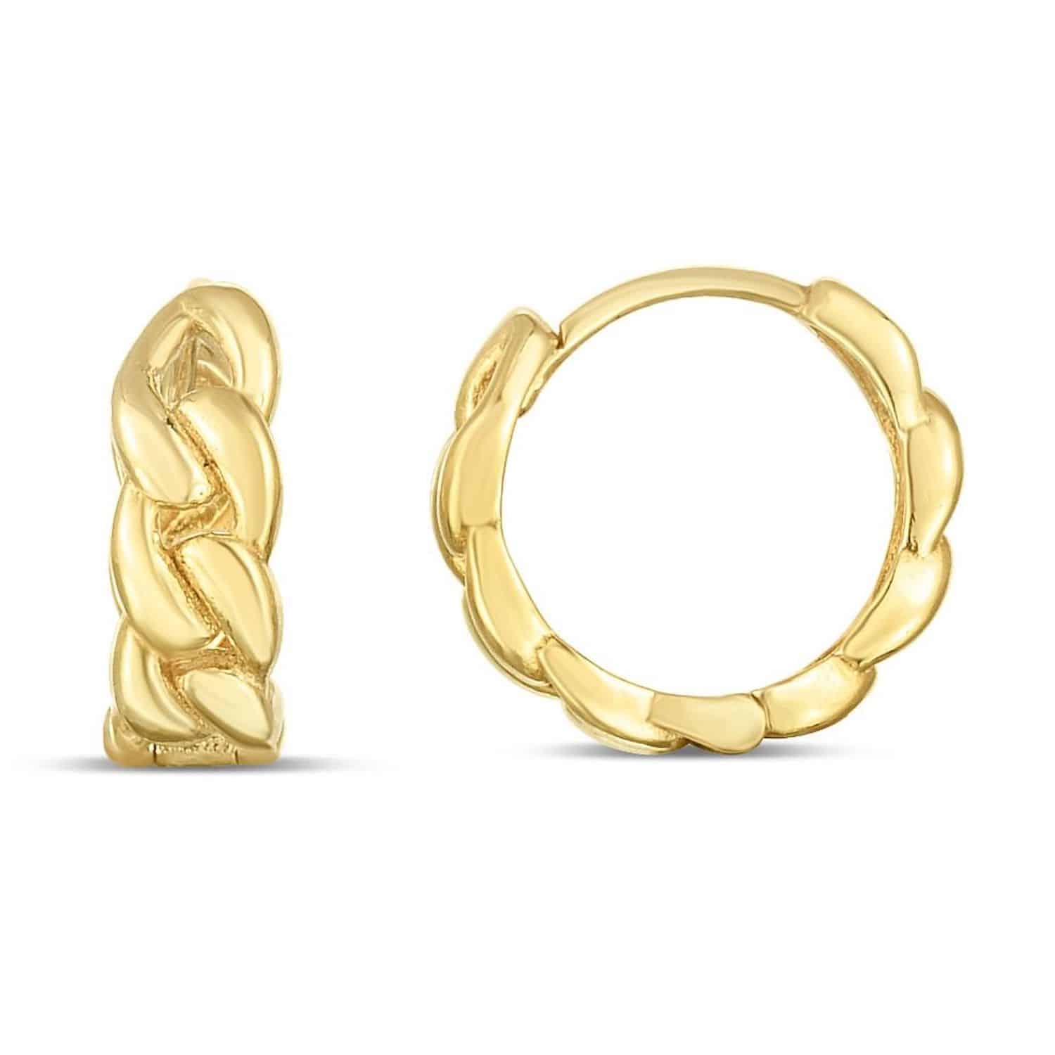 14K Yellow Gold Classic Miami Cuban Curb Snap Huggie Hoop Earrings 10mmCouldn't load pickup availability