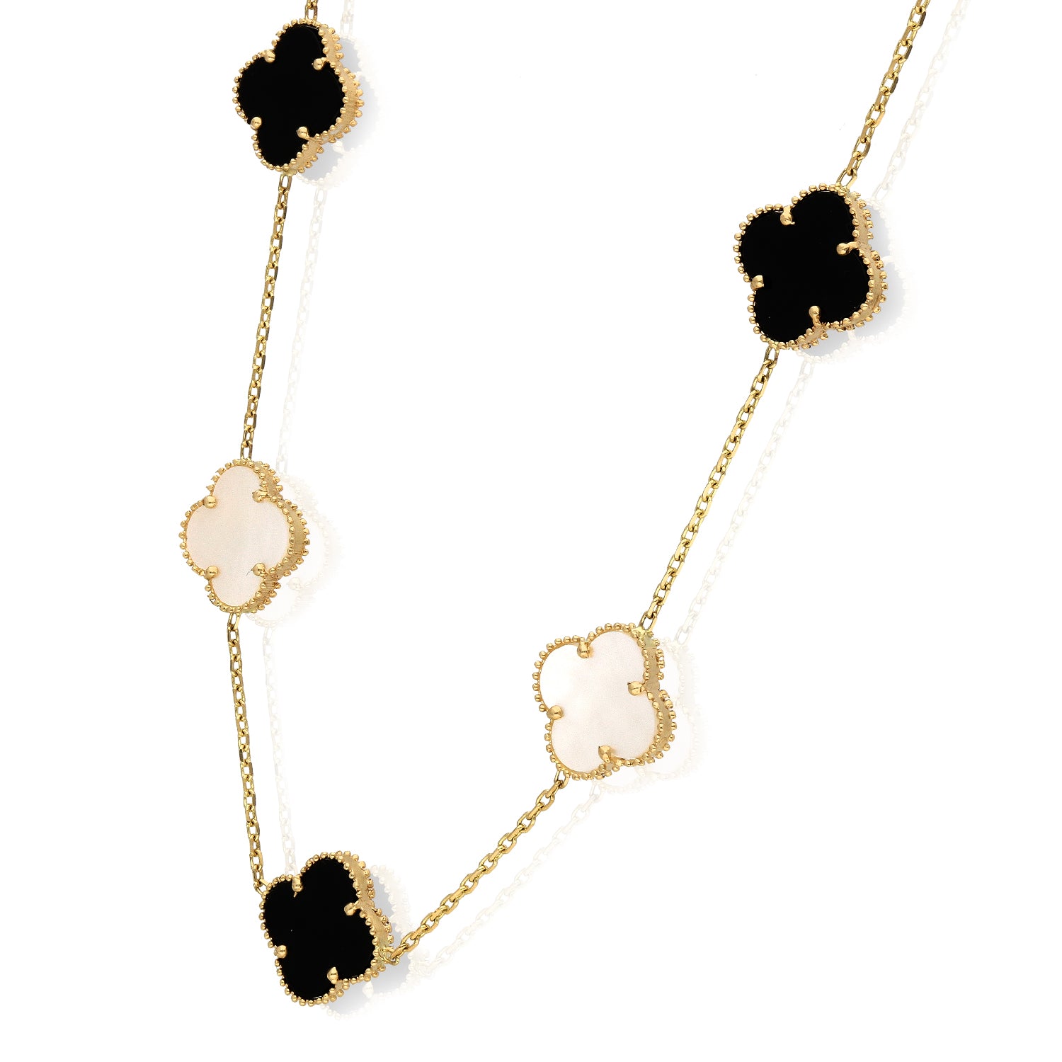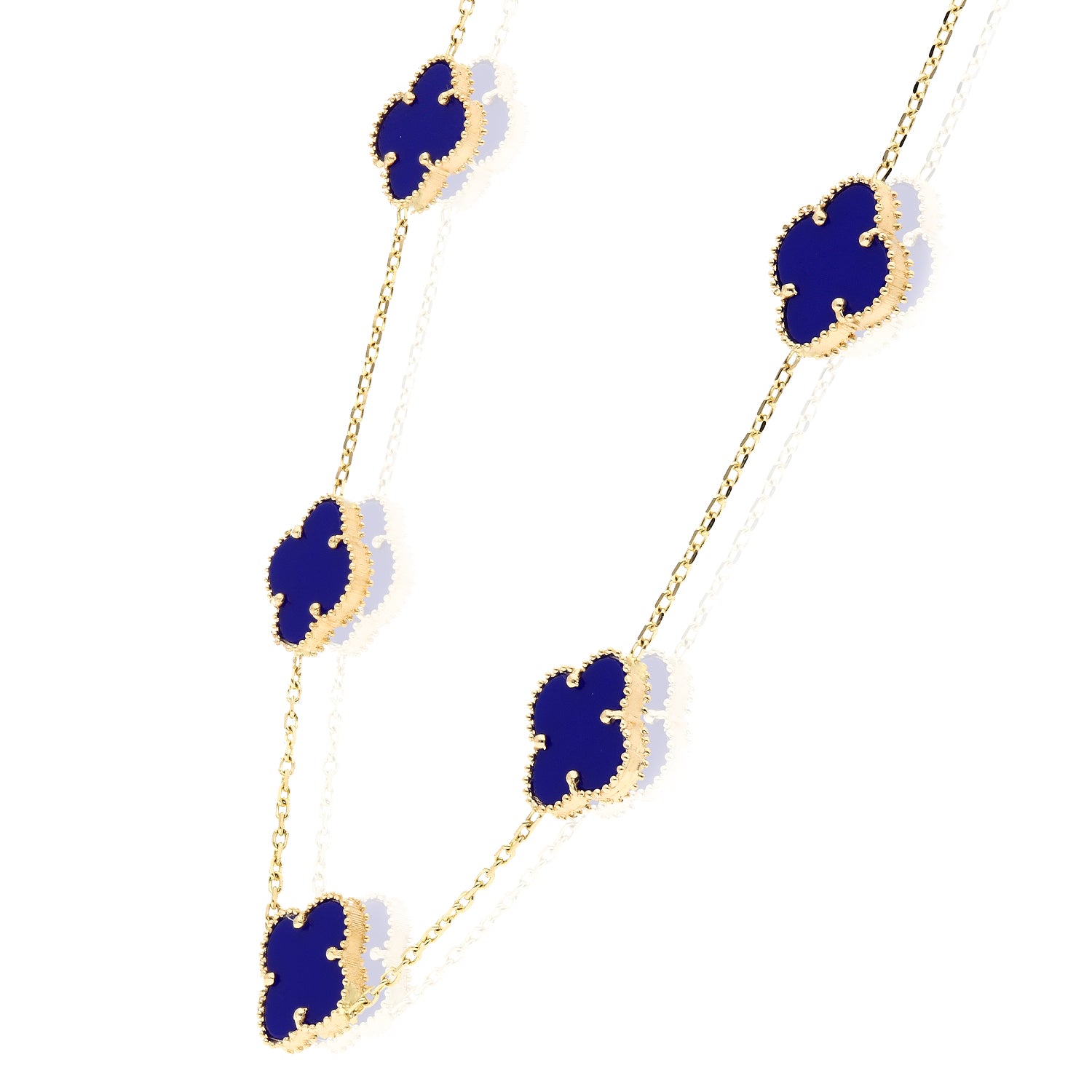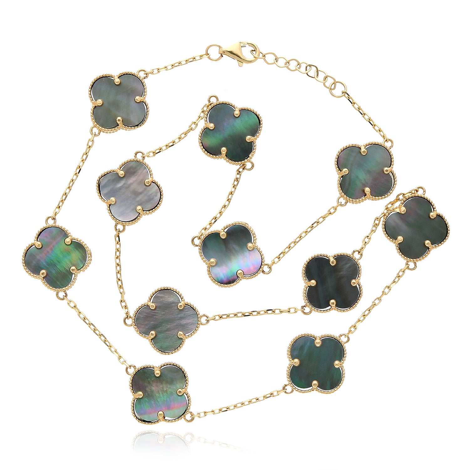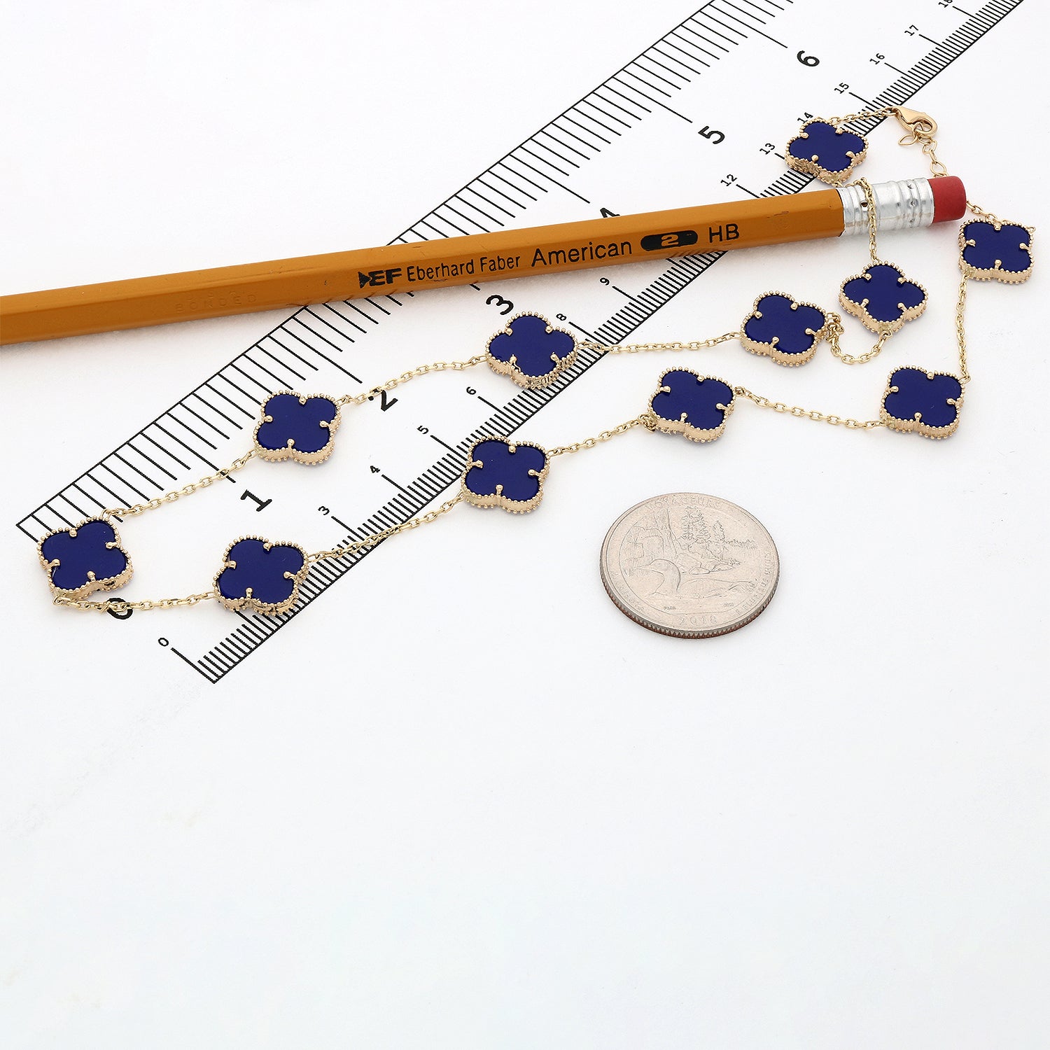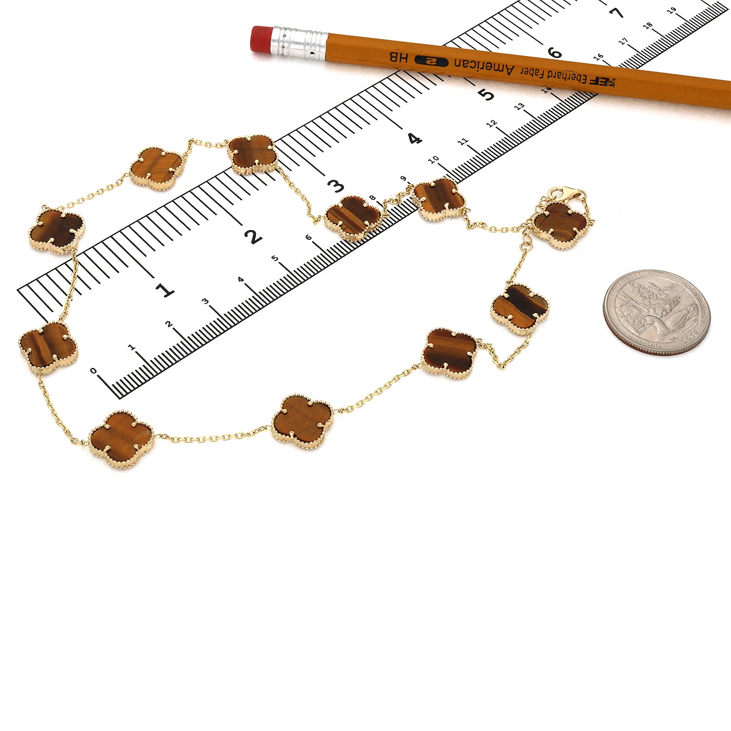 This 14K yellow gold necklace features a high-polished cable chain accented with a clover pendant set in natural gemstones. Crafted with a solid 18" chain and finished with a lobster claw clasp, the bezel-set clover design adds color, elegance, and everyday versatility. Made in Europe, this piece is perfect worn solo or layered. A third-party appraisal option is available for purchase.