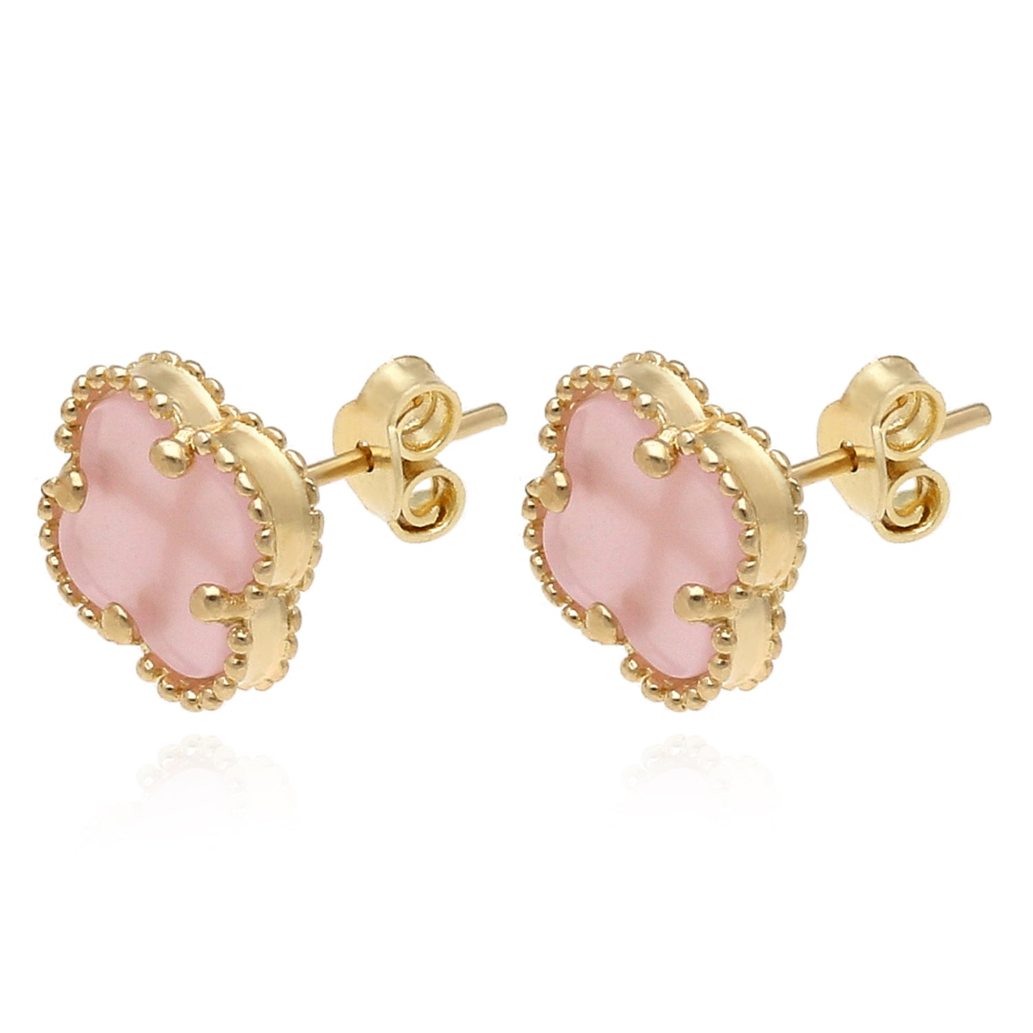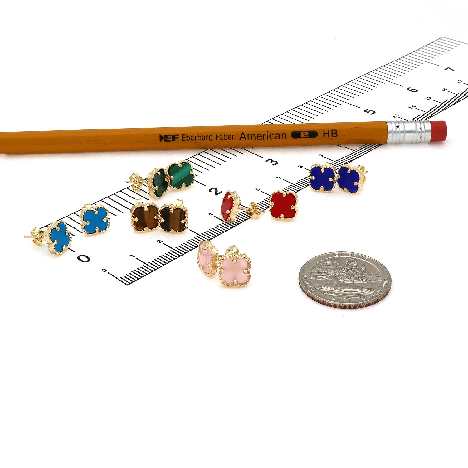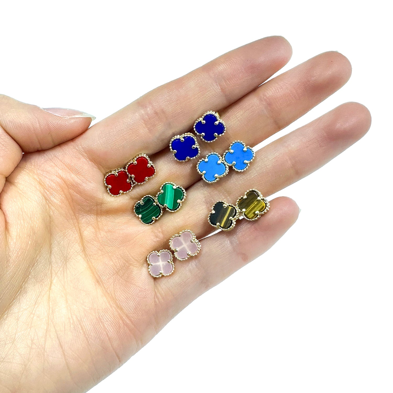 Read full return policy14K Yellow Gold Clover Gemstone Stud Earrings Bezel Set