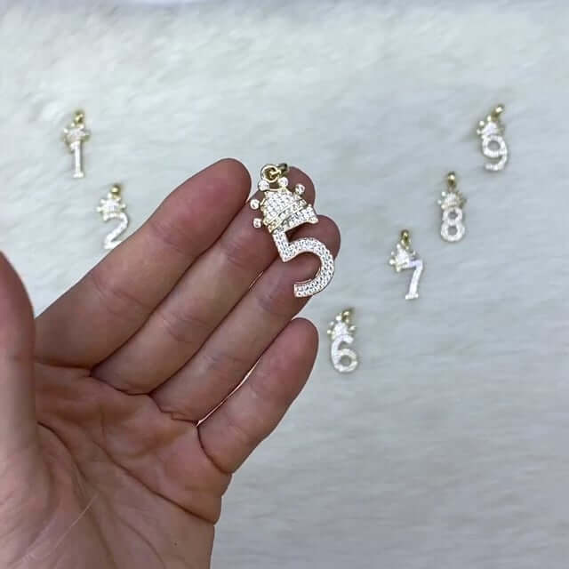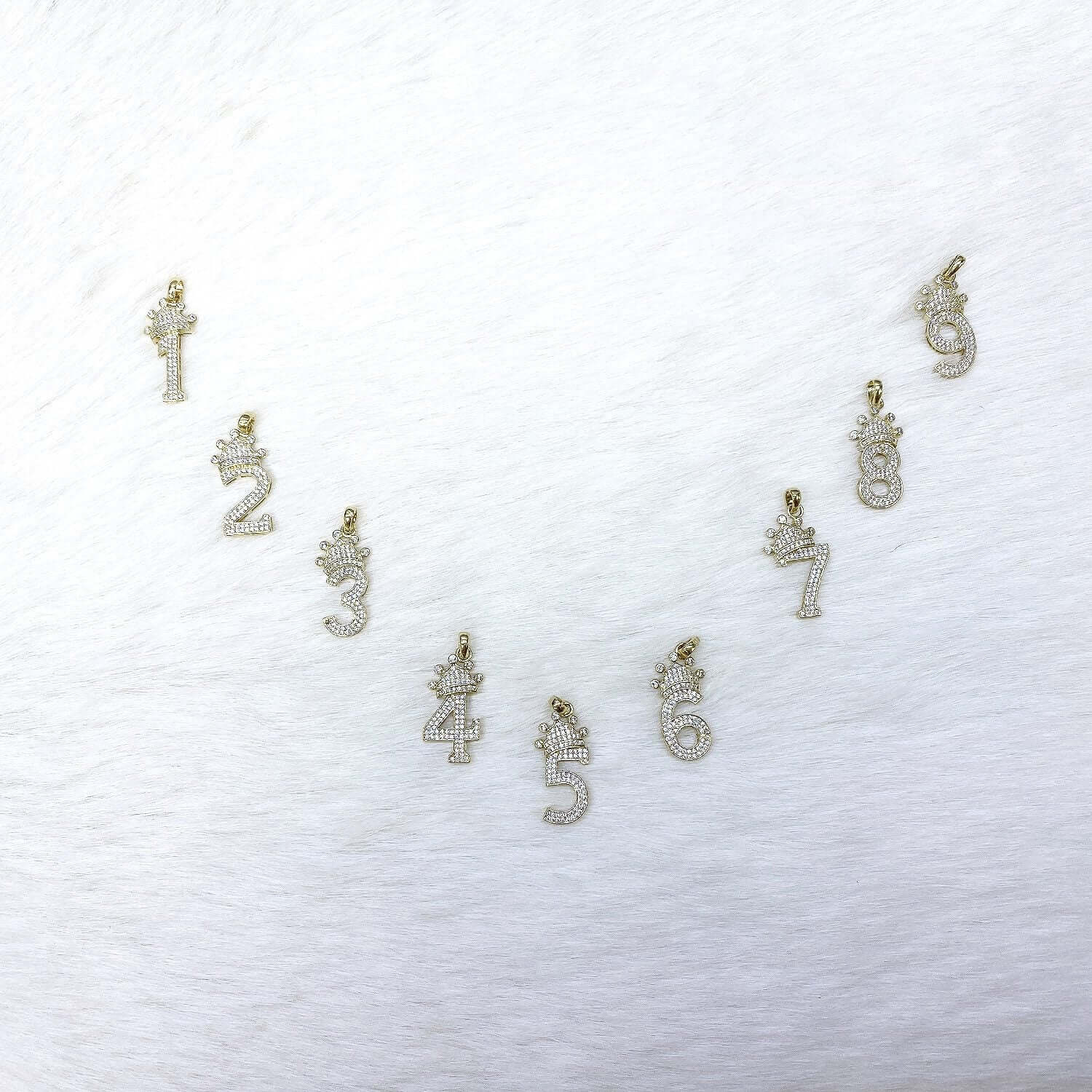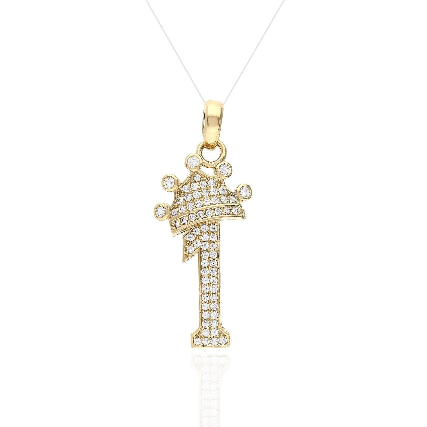 14K Yellow Gold CZ Crown Number 1 2 3 4 5 6 7 8 9 PendantCouldn't load pickup availability