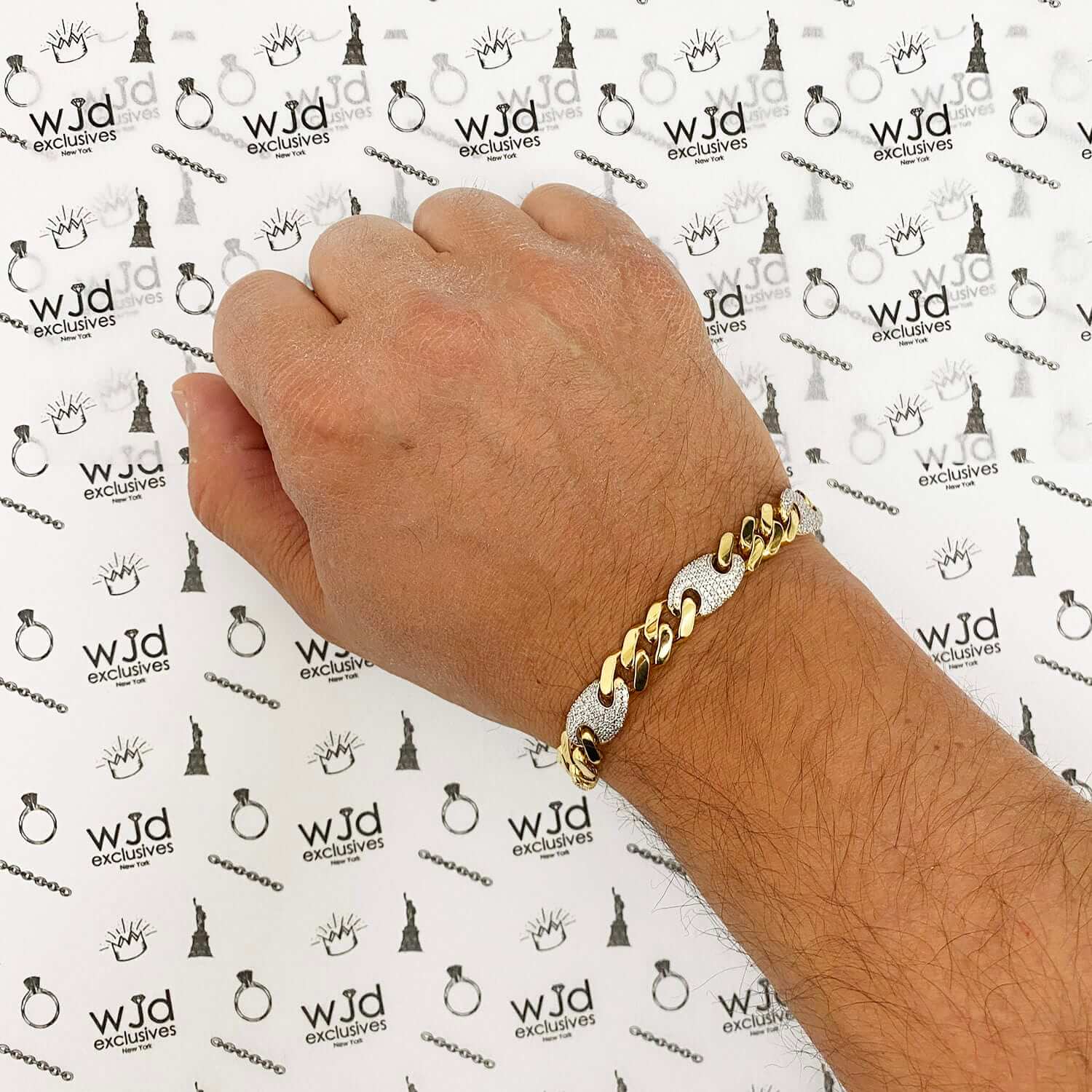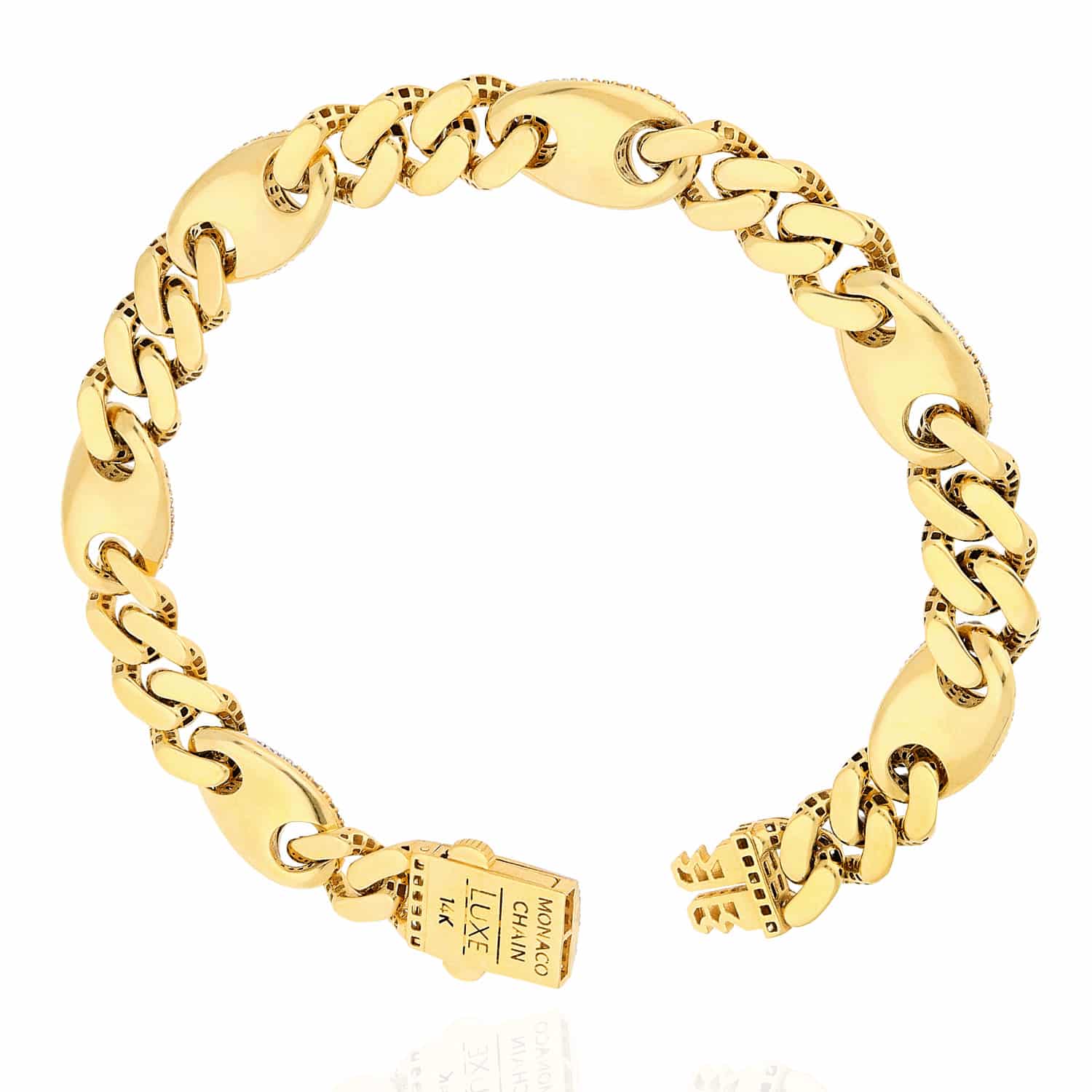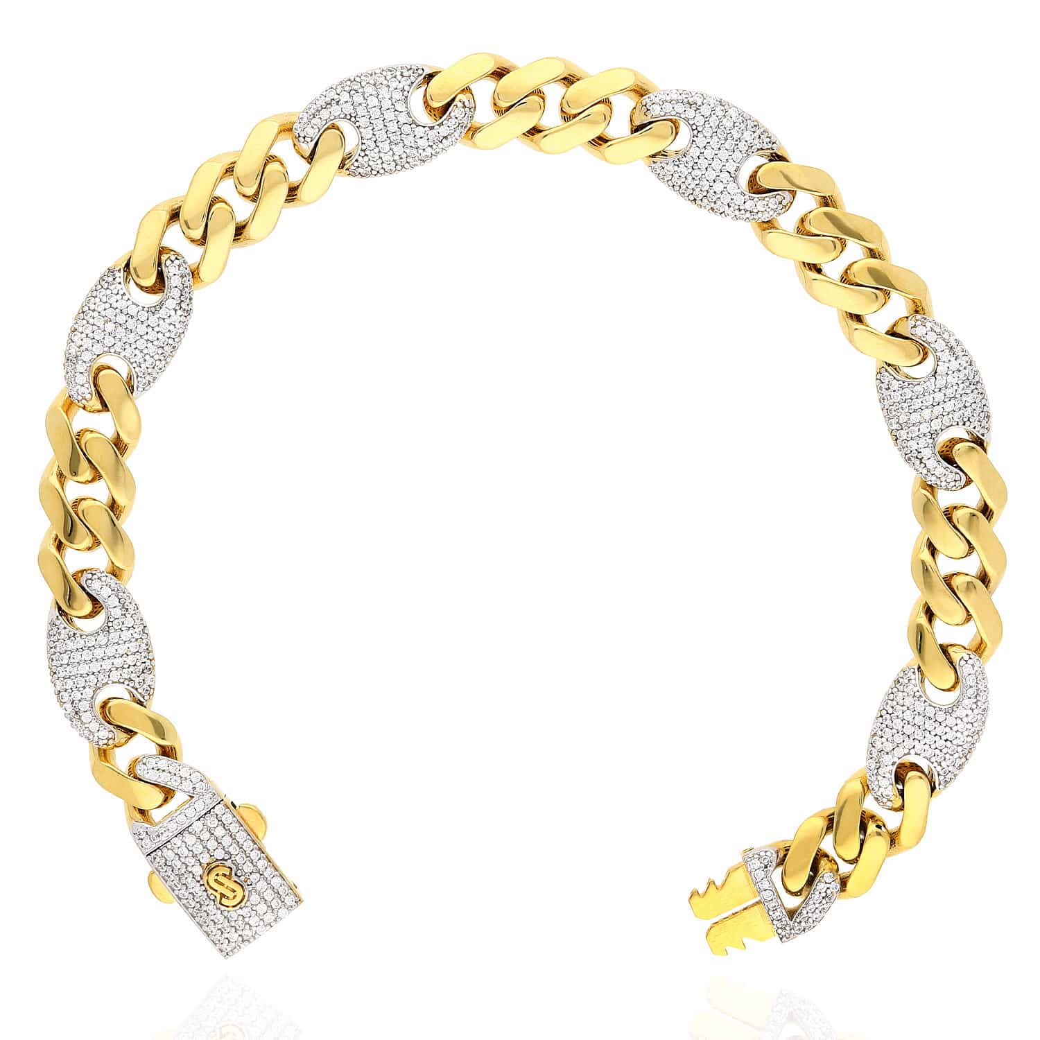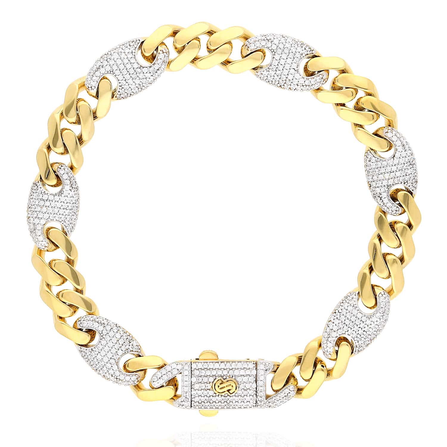 Read full return policy14K Yellow Gold CZ 10mm Miami Cuban Puffed Mariner Anchor Bracelet (Hollow) 8.5"