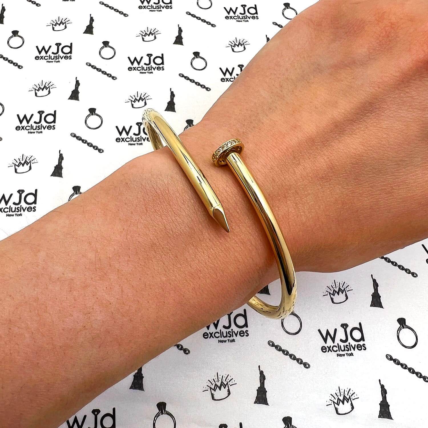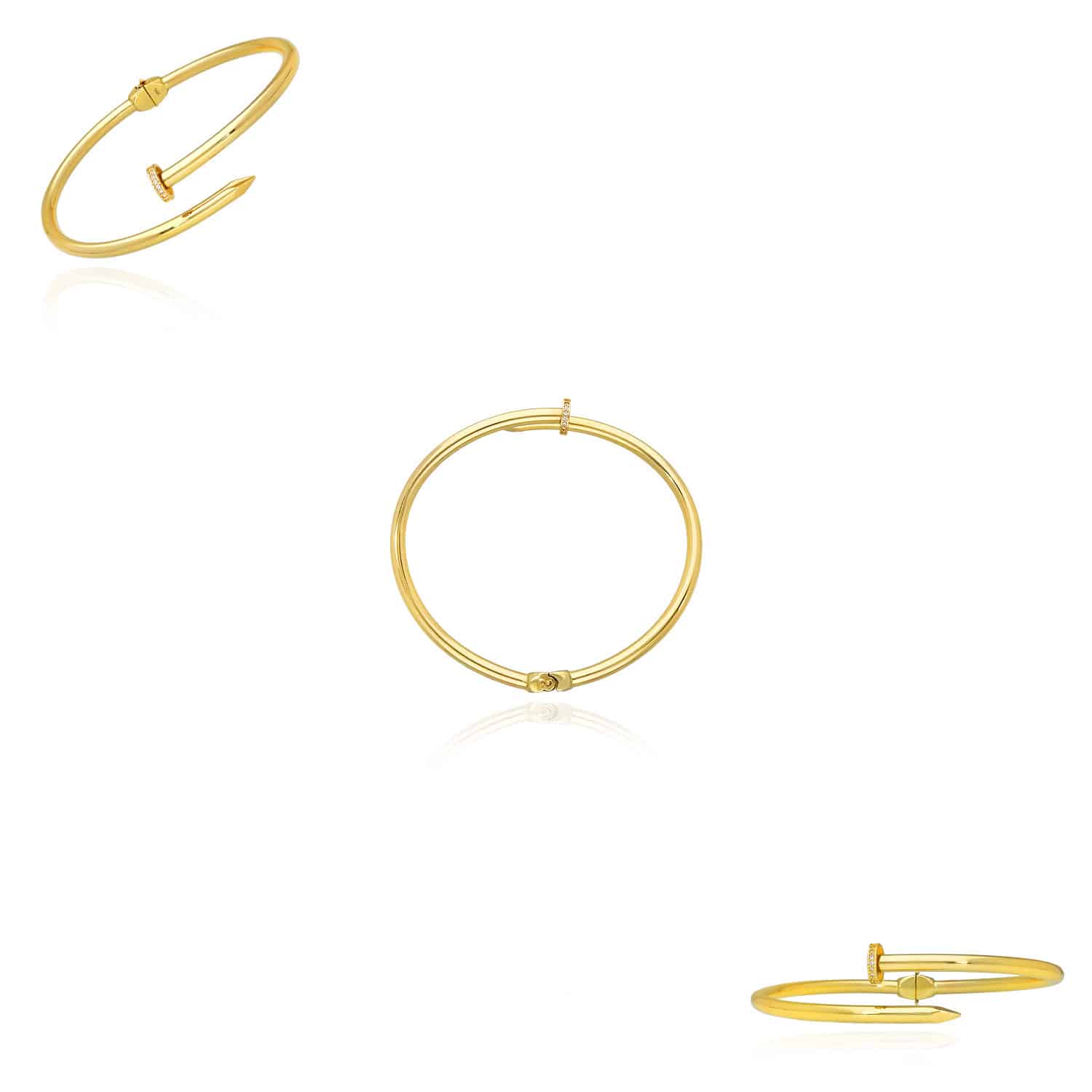 0.20CTW CZ 14K Yellow Gold Spike Cuff Hinged Bangle Bracelet 8"Couldn't load pickup availability