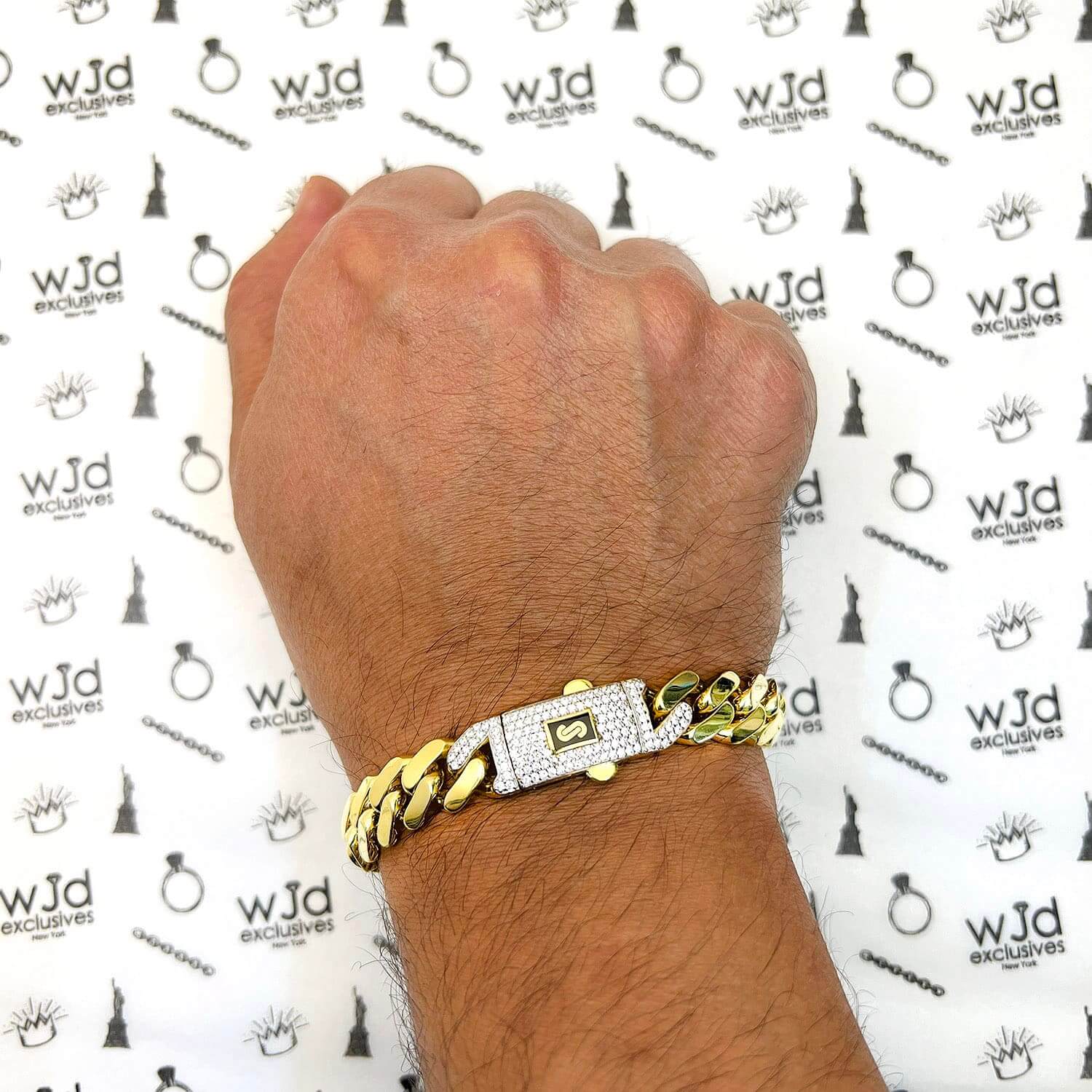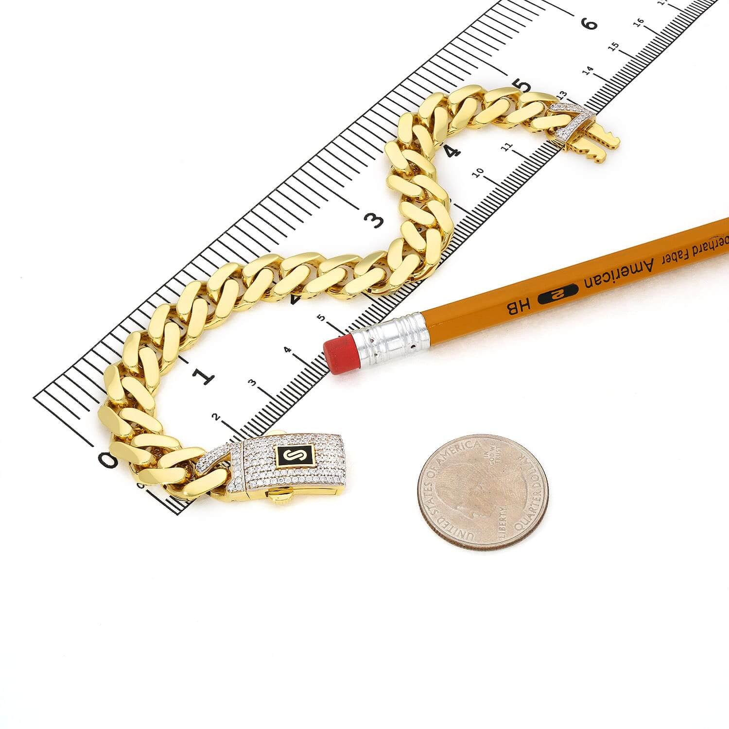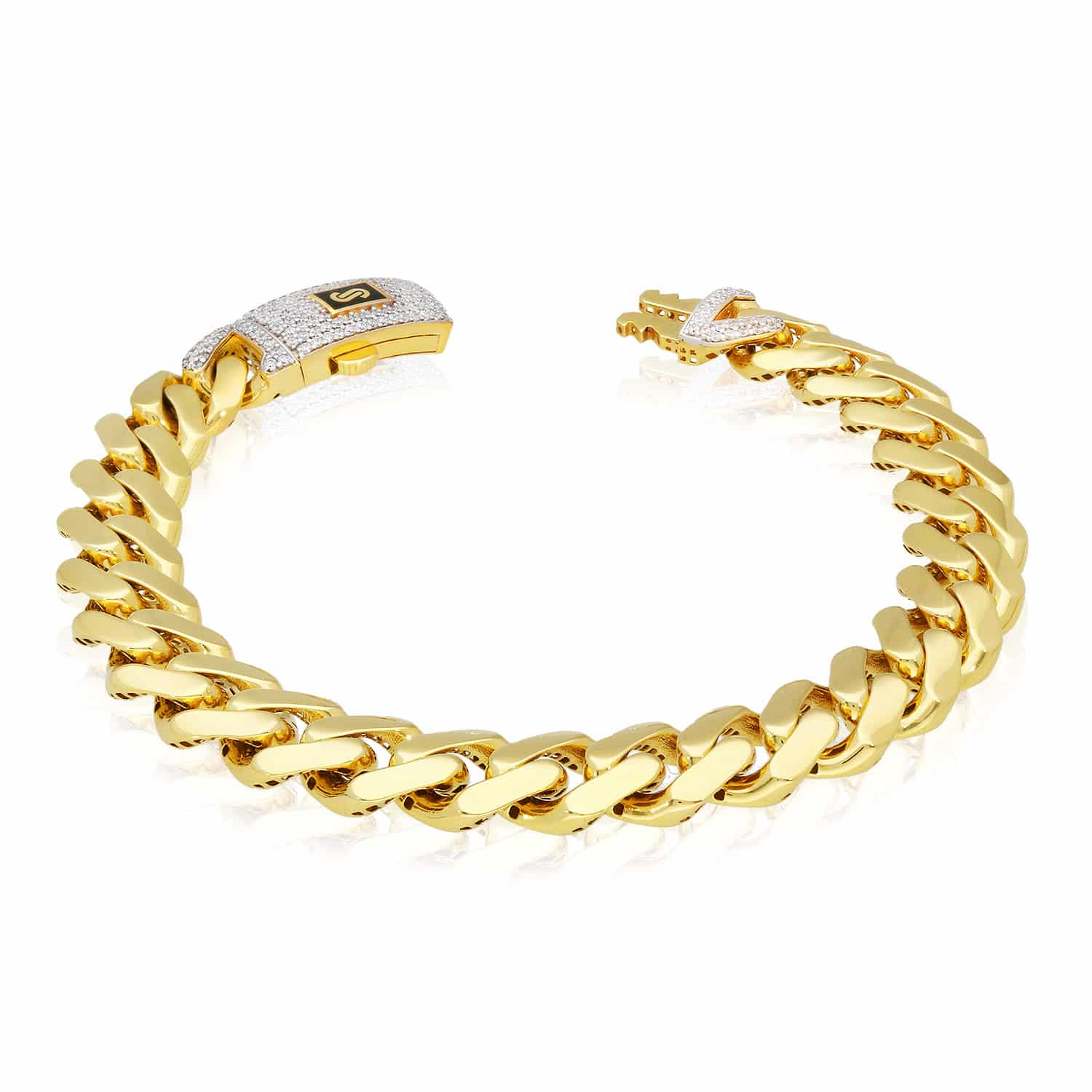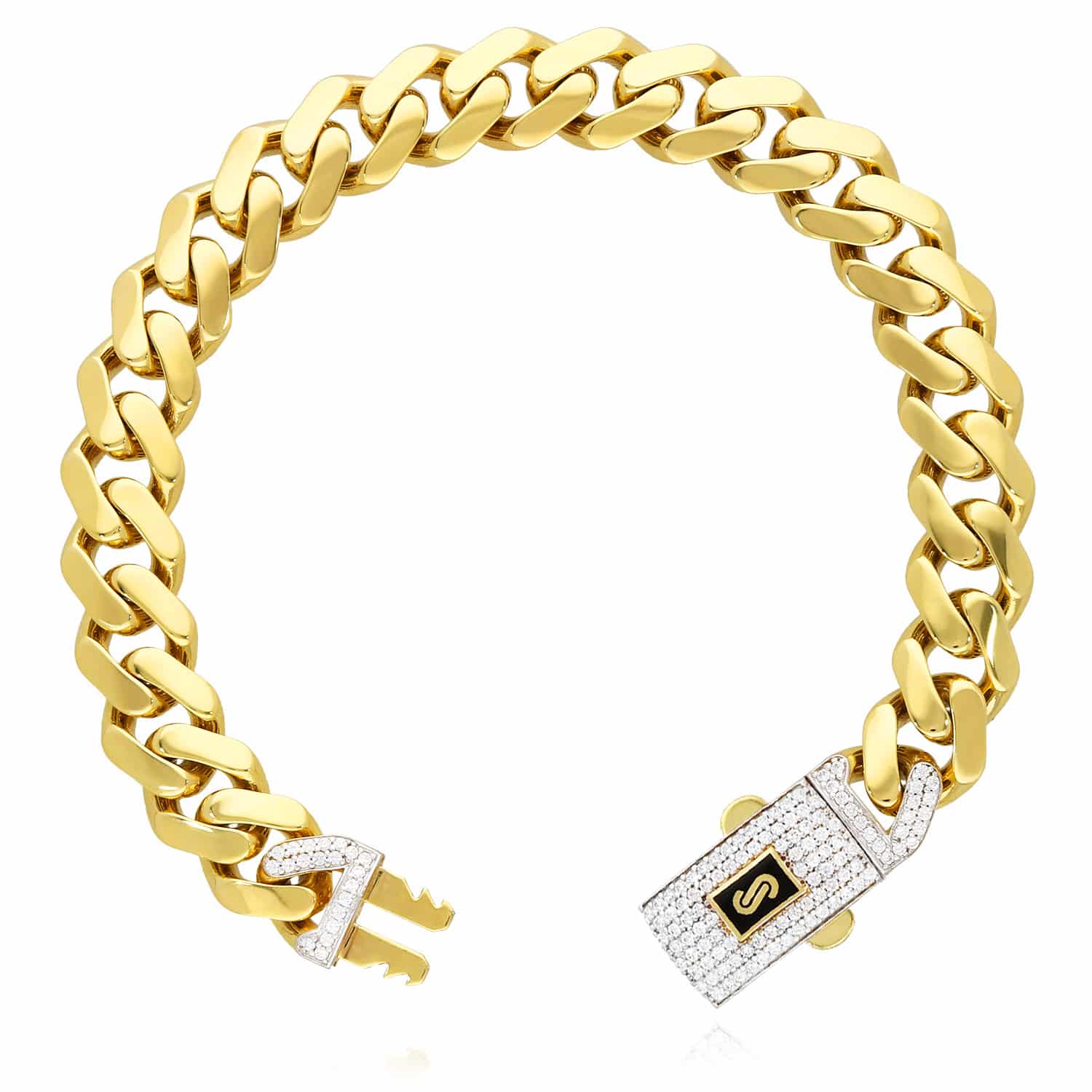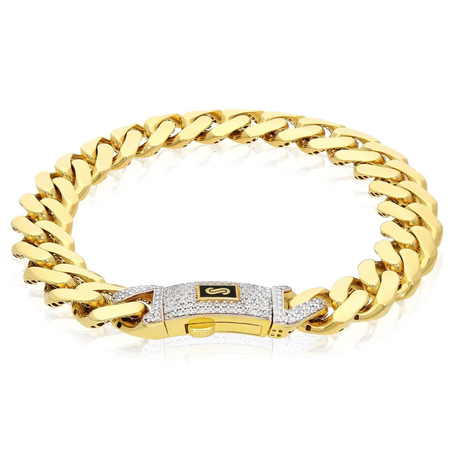 14K Yellow Gold 11.5mm Monaco Miami Bracelet with Swarovski Lock (Hollow) 8.5"Couldn't load pickup availability