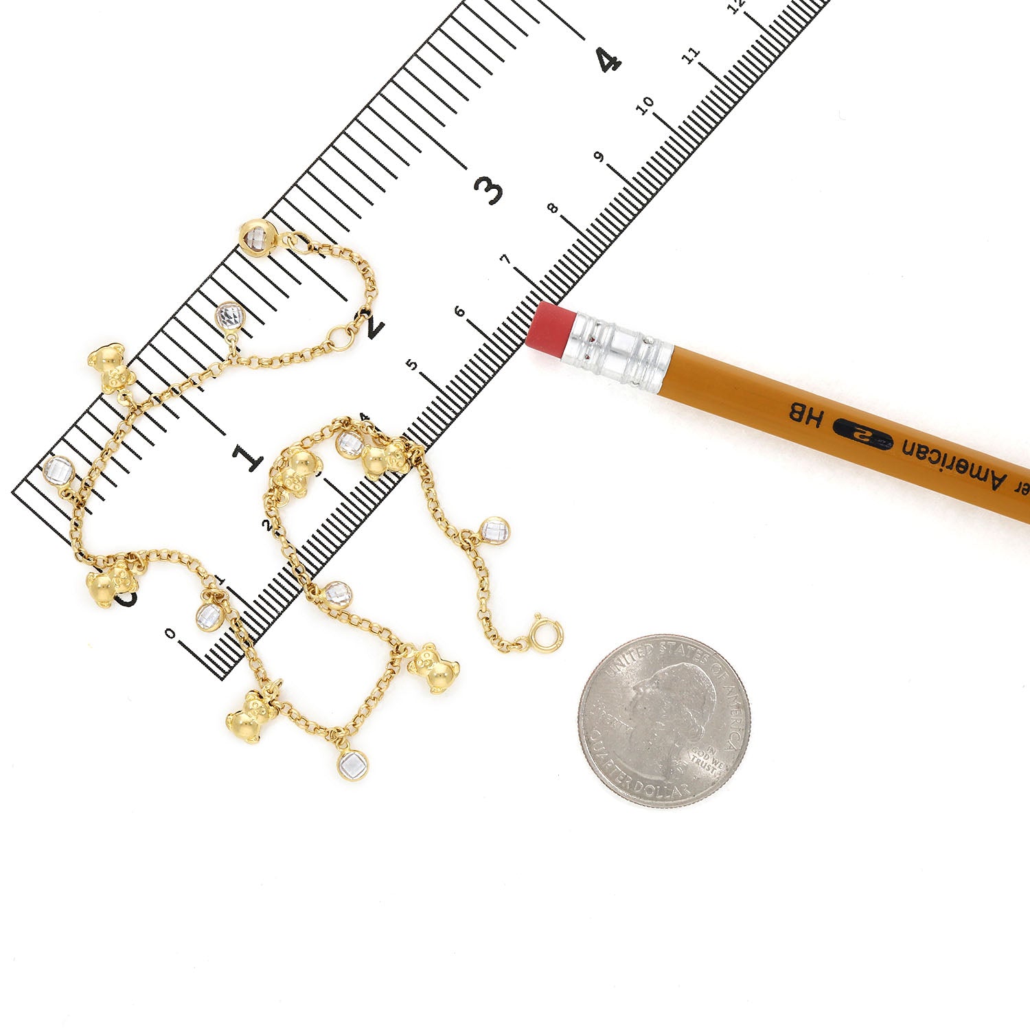 14K Yellow Gold CZ Dangle Bear Charm Cable Link Adjustable Anklet 9"–10"Couldn't load pickup availability