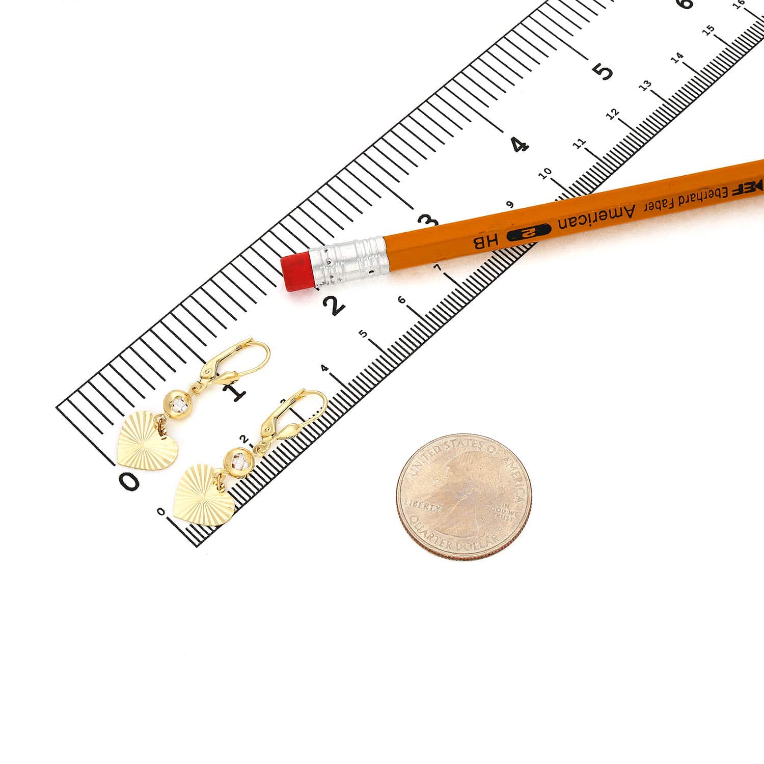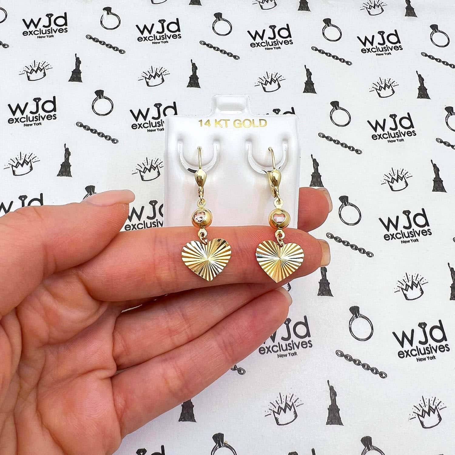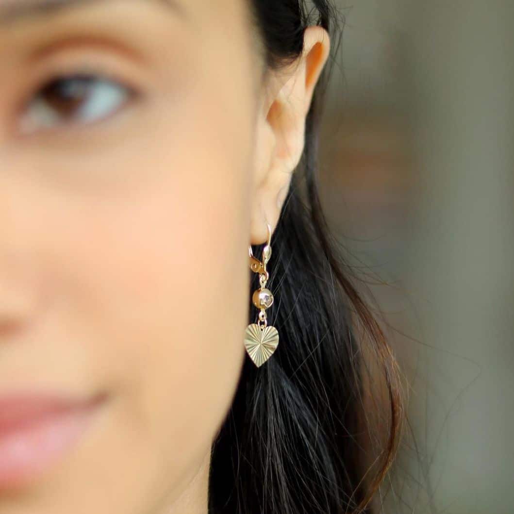 Read full return policy14K Yellow Gold CZ Diamond-Cut Heart Leverback Earrings 35mm