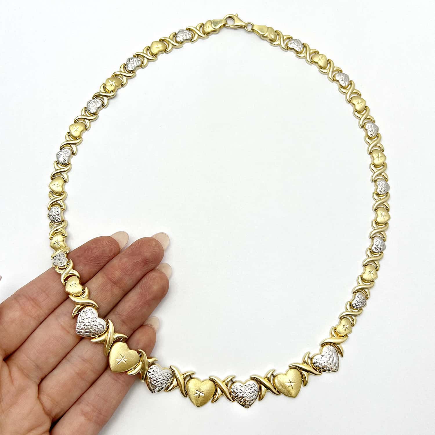 14K Yellow Gold Graduated Heart & Kisses Stampato XO Necklace (Hollow) 18.5"Couldn't load pickup availability
