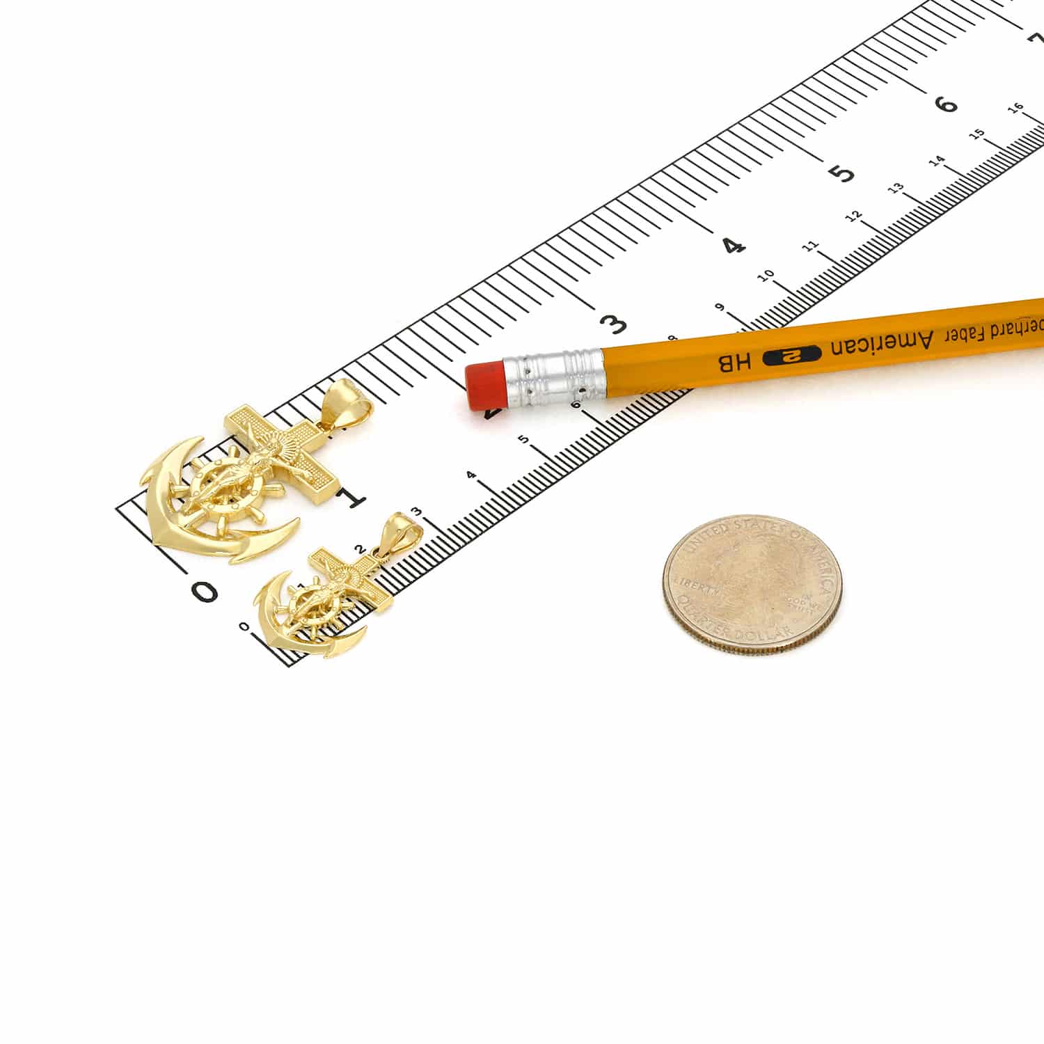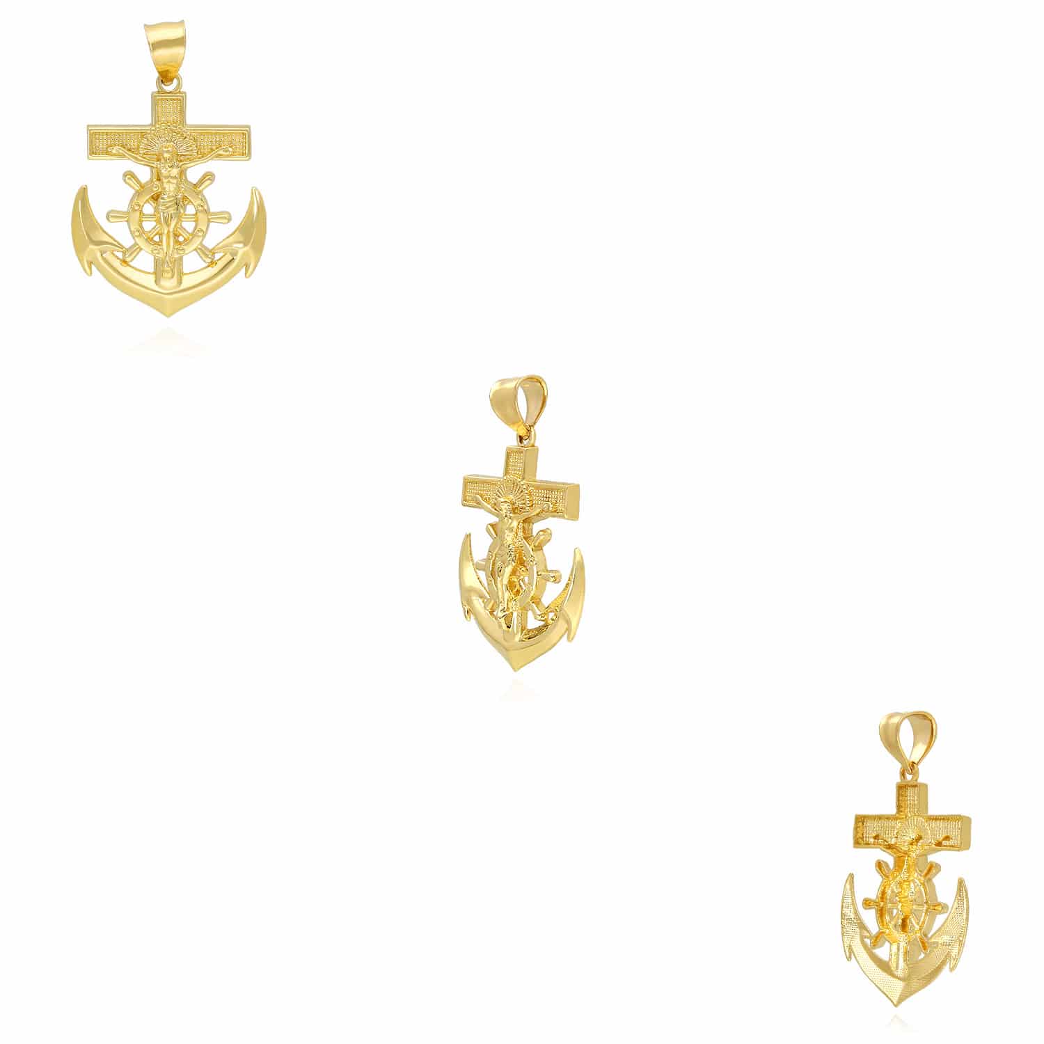Read full return policy14K Yellow Gold Helm Jesus Christ Cross Anchor Pendant 1"-1.5"