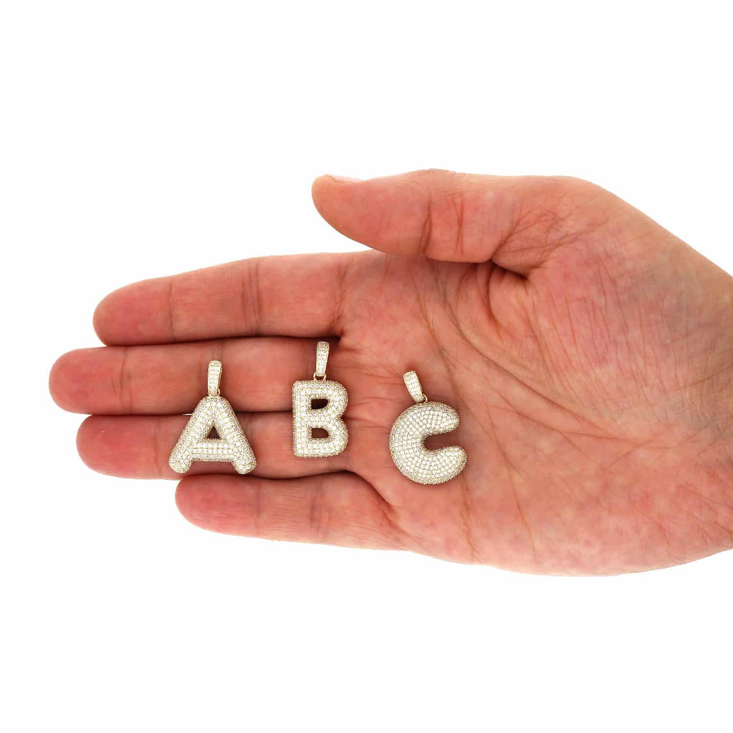 14K Gold CZ Bubble Letter Initial 1.2" Pendant A-ZCouldn't load pickup availability
