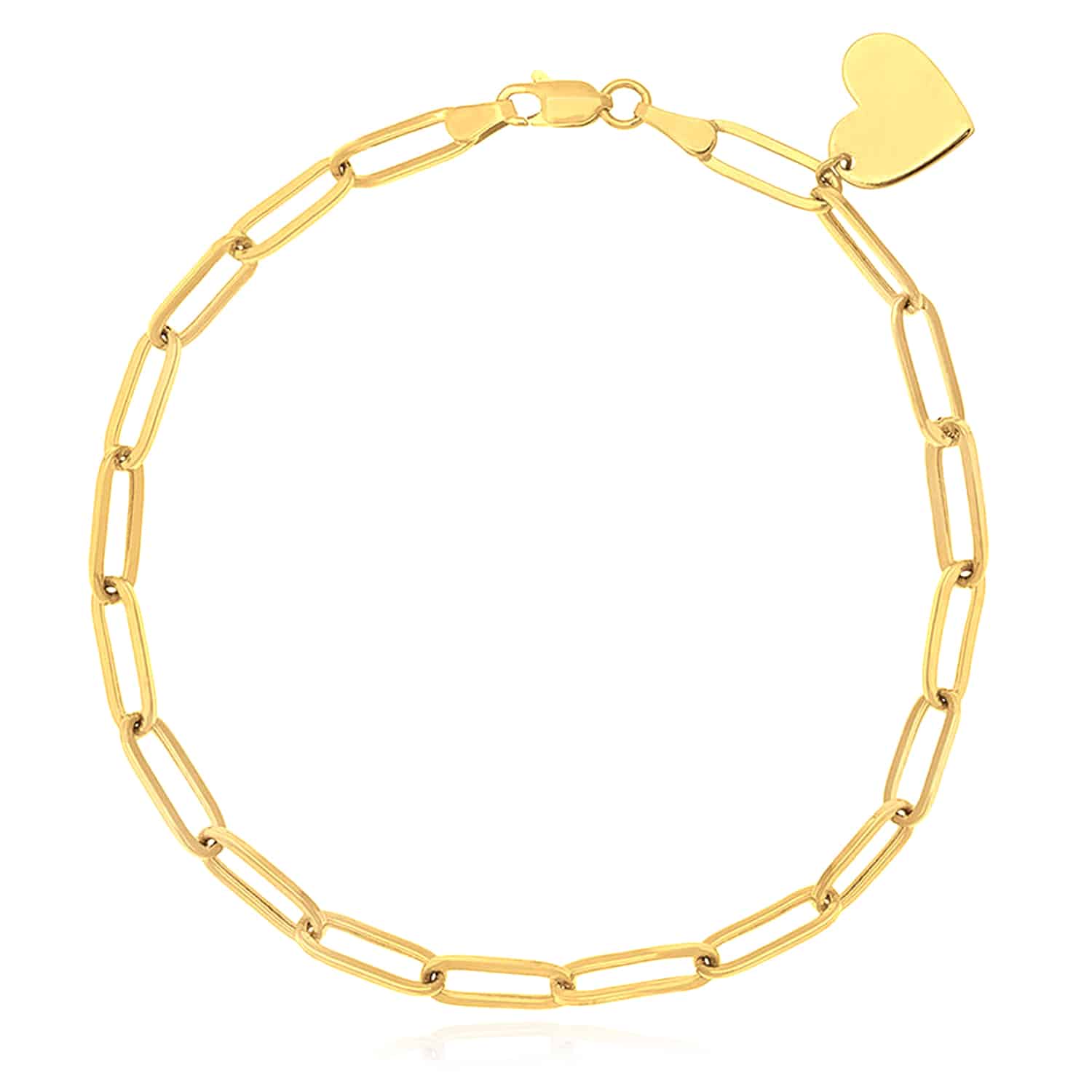 Read full return policy14K Yellow Gold Paperclip Heart Charm Bracelet (Hollow) 7.5"