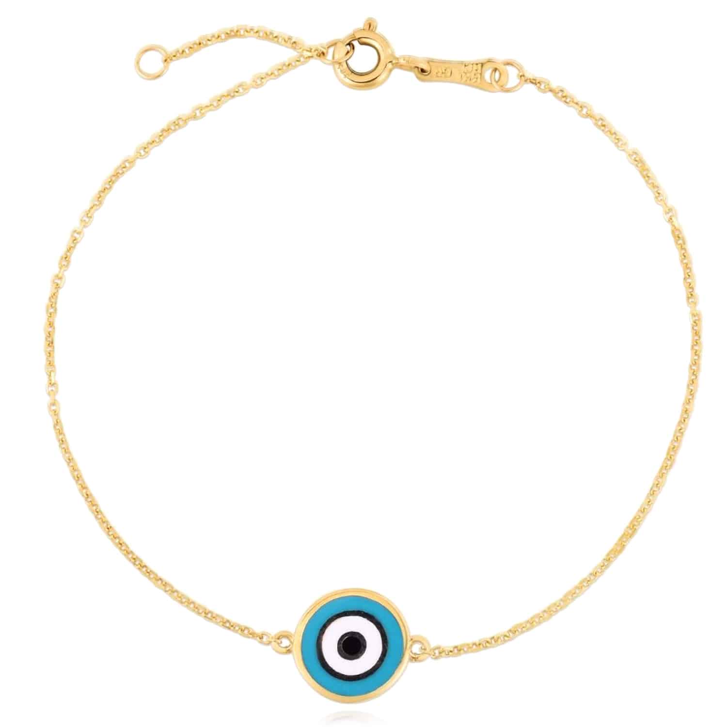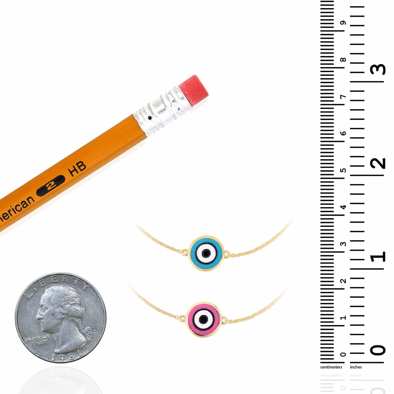 14K Yellow Gold Round Evil Eye Bracelet Pink Love Blue Serenity (Solid Links) 6.25"-7" AdjustableCouldn't load pickup availability