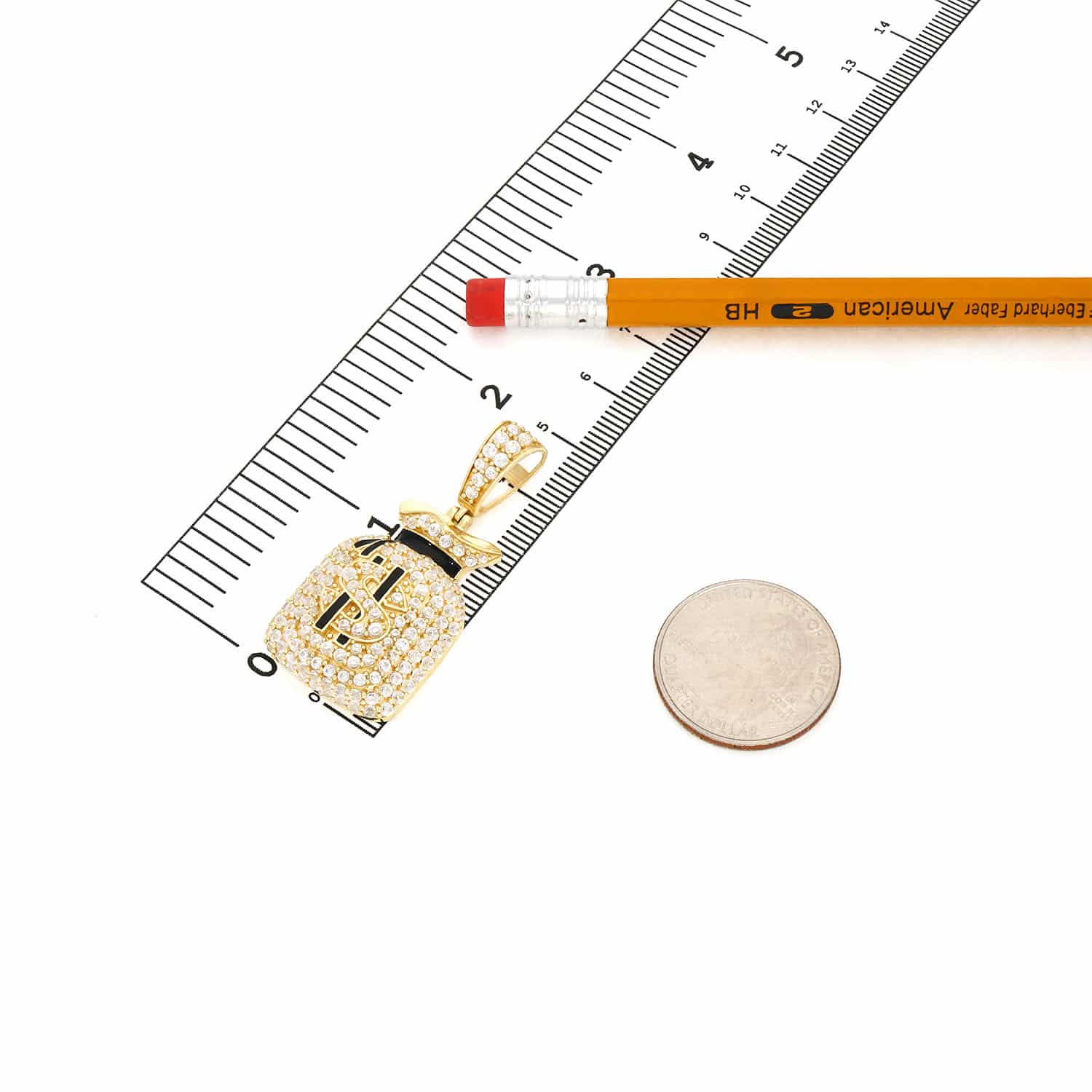 14K Yellow Gold CZ Black Enamel Cash Money Bag Pendant 1.8"Couldn't load pickup availability