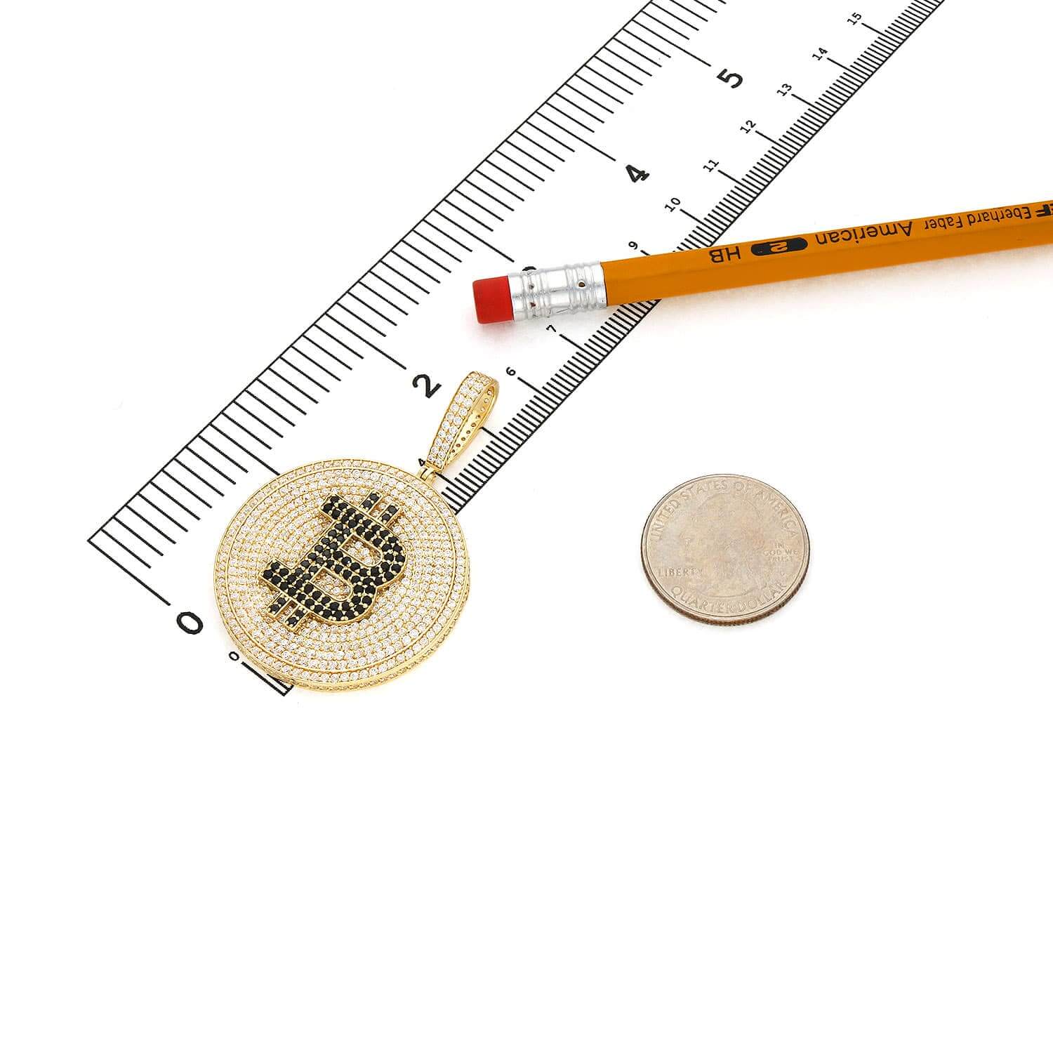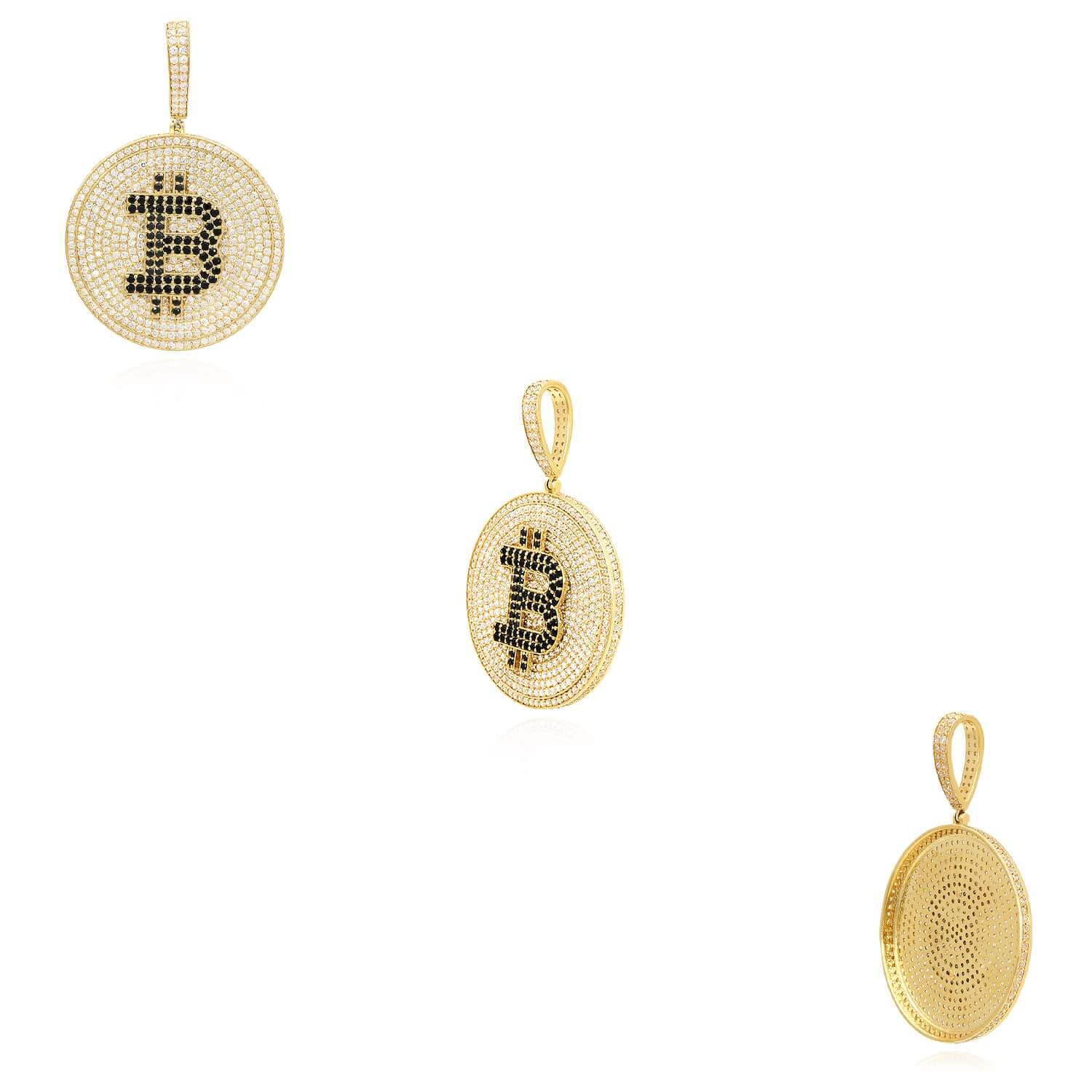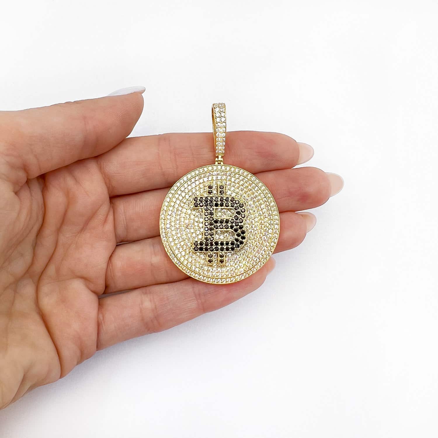 Read full return policy14K Yellow Gold CZ Black Pave Iced Bitcoin Pendant 2.1"