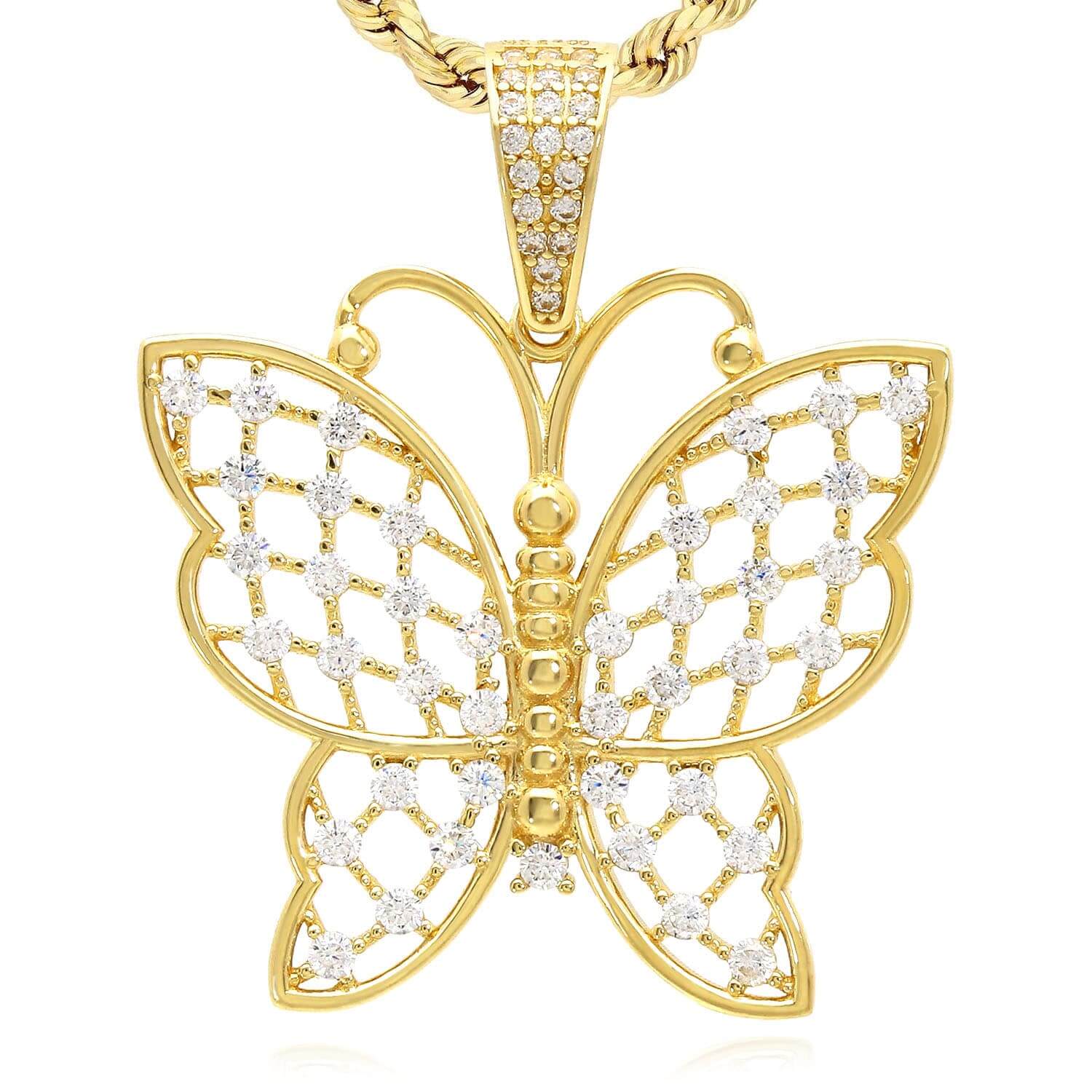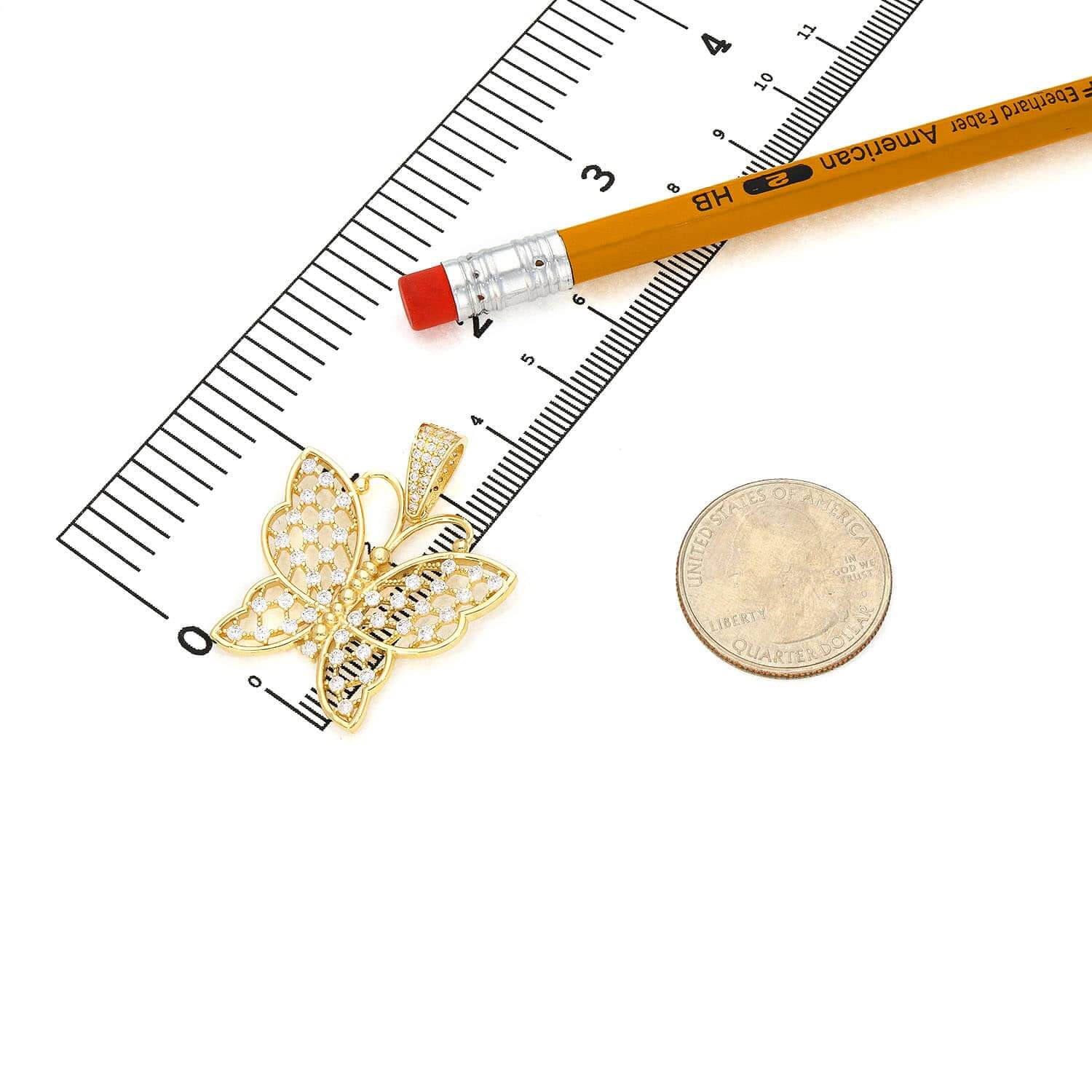 14K Yellow Gold CZ Butterfly Pendant 1.4"Couldn't load pickup availability