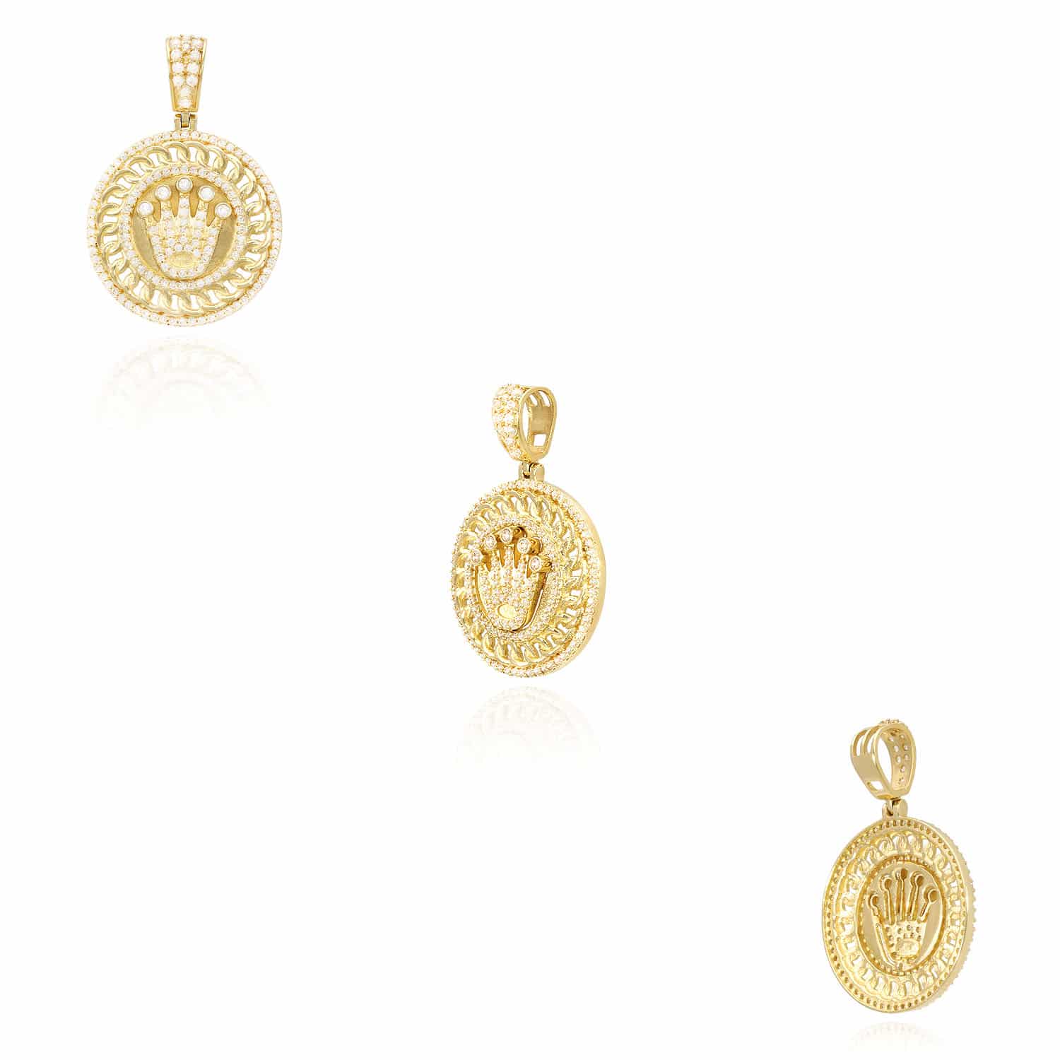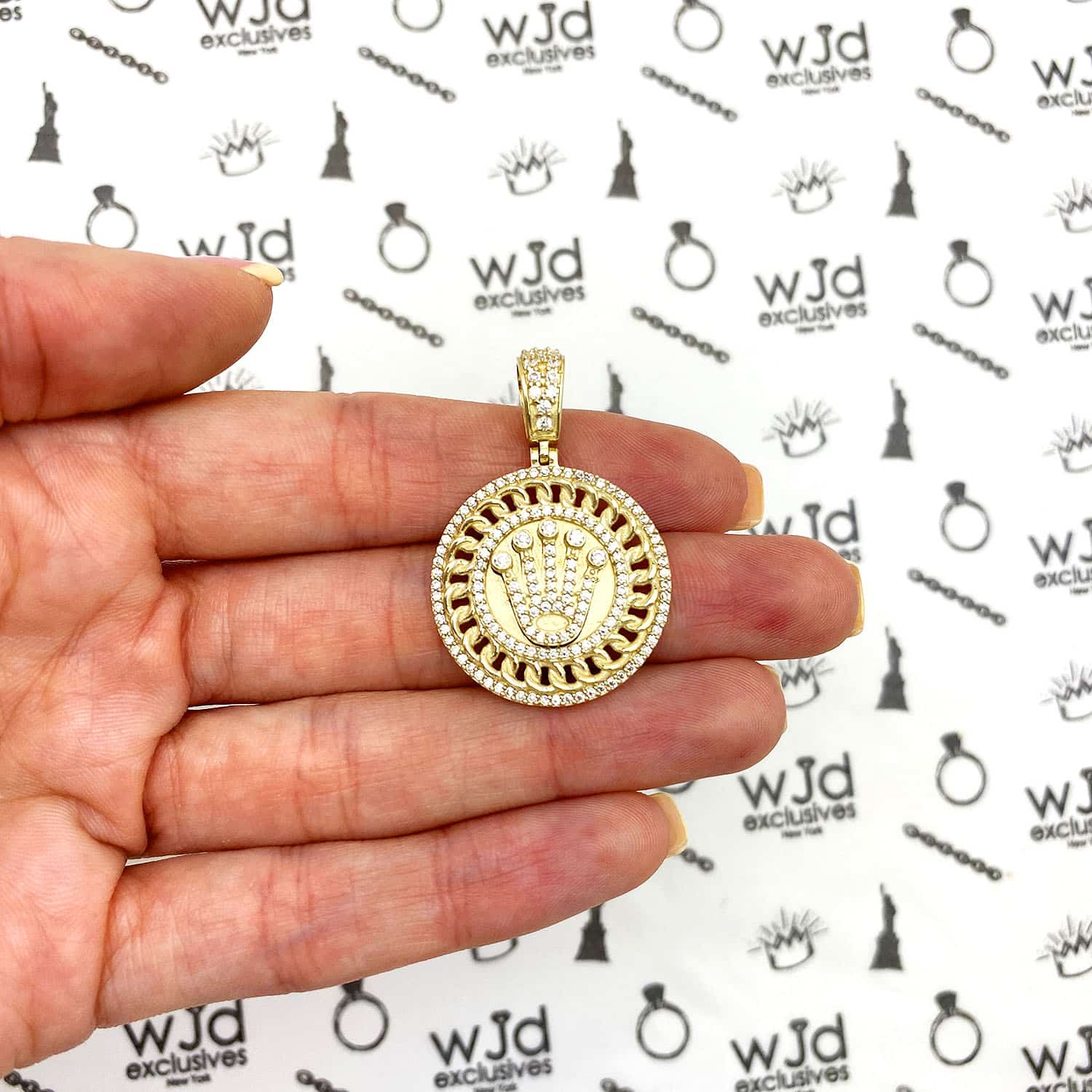 Read full return policy14K Yellow Gold CZ Crown Round Medallion Pendant 1.46"