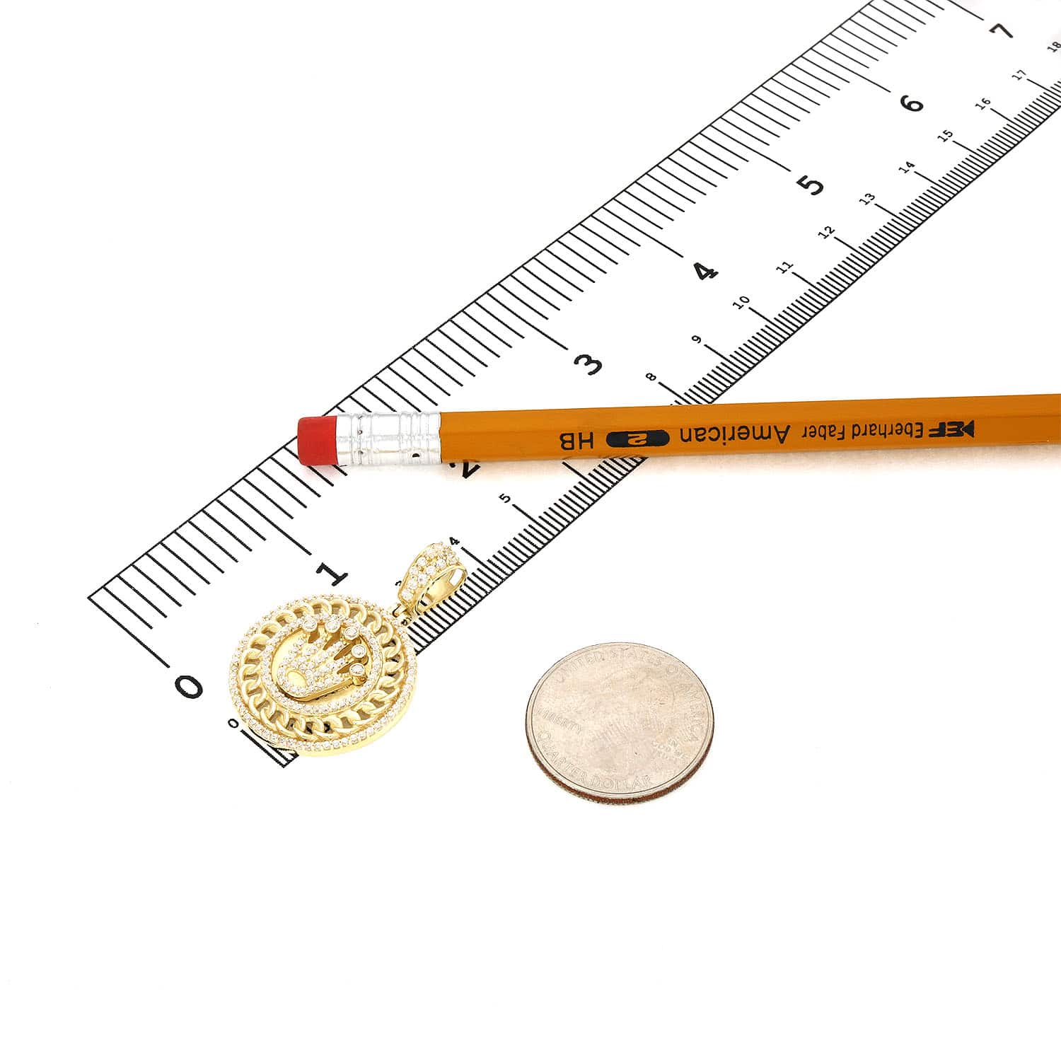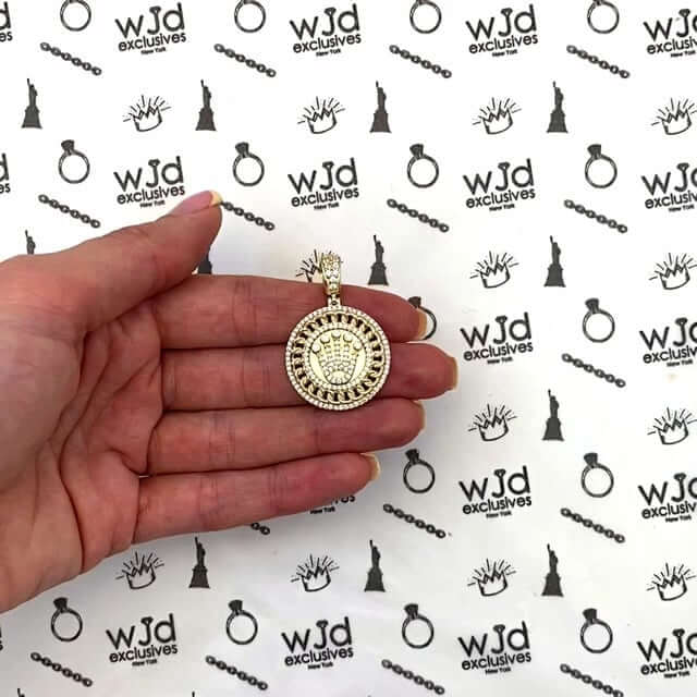14K Yellow Gold CZ Crown Round Medallion Pendant 1.46"Couldn't load pickup availability