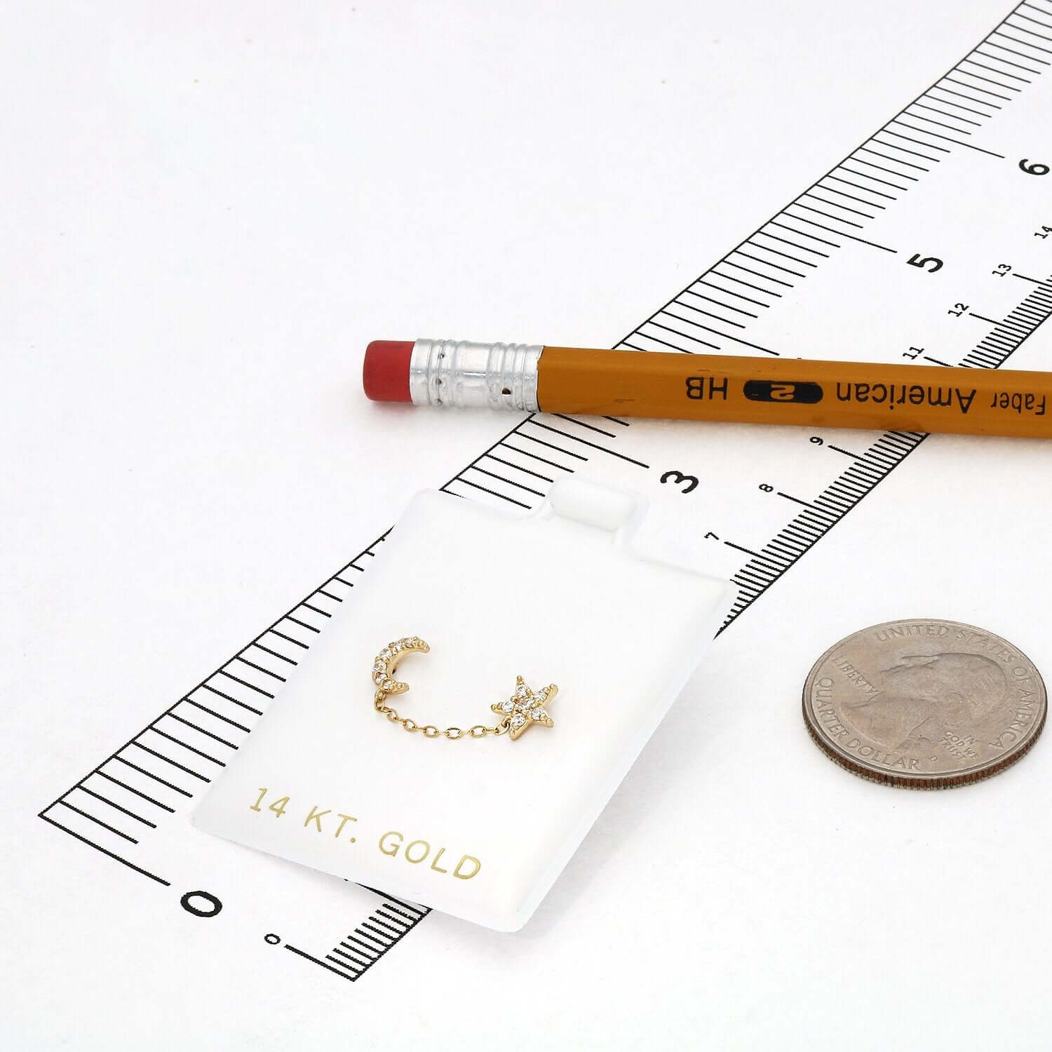 14K Gold CZ Half Moon & Star Double Pierced Stud EarringsCouldn't load pickup availability