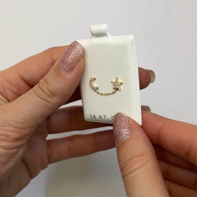 Read full return policy14K Gold CZ Half Moon & Star Double Pierced Stud Earrings
