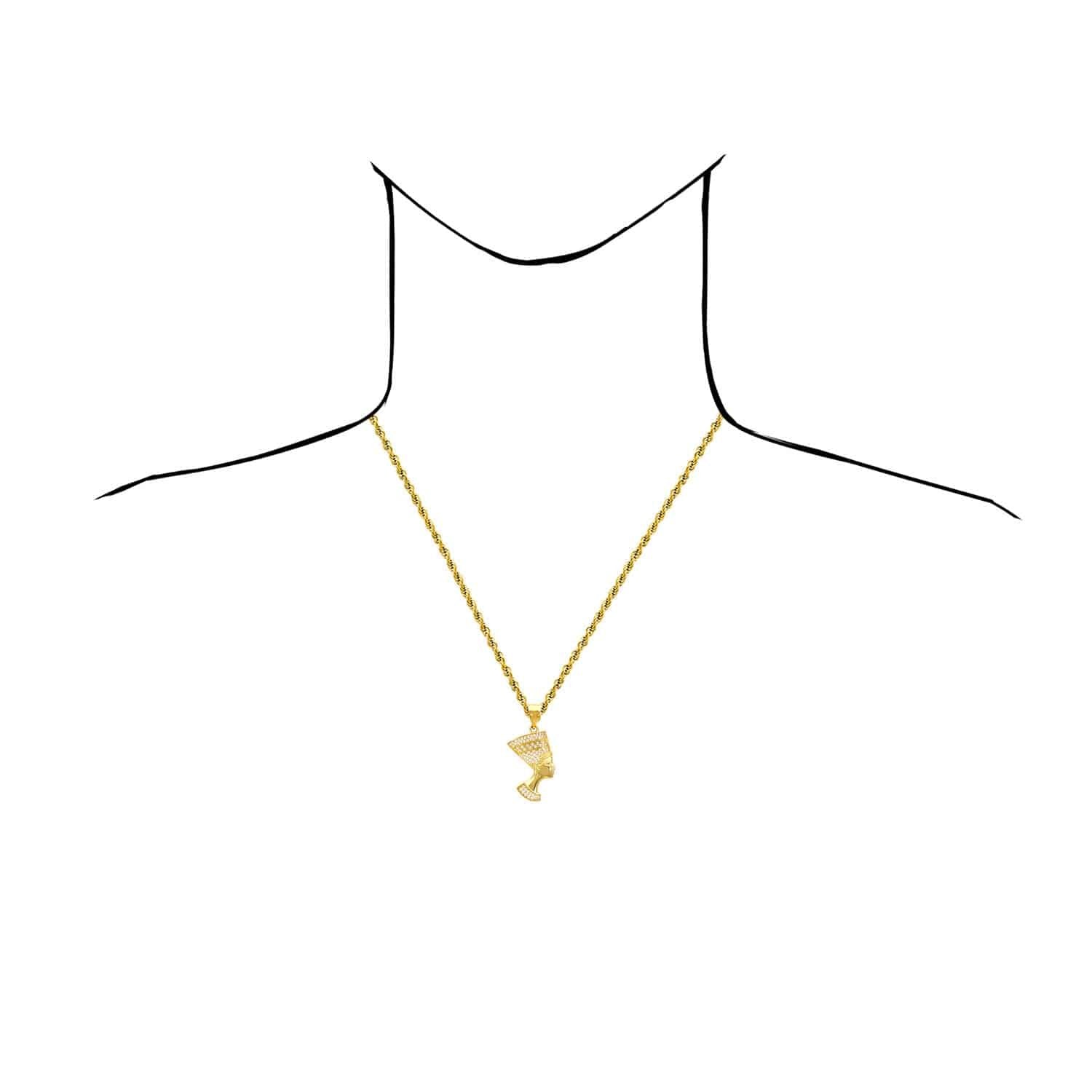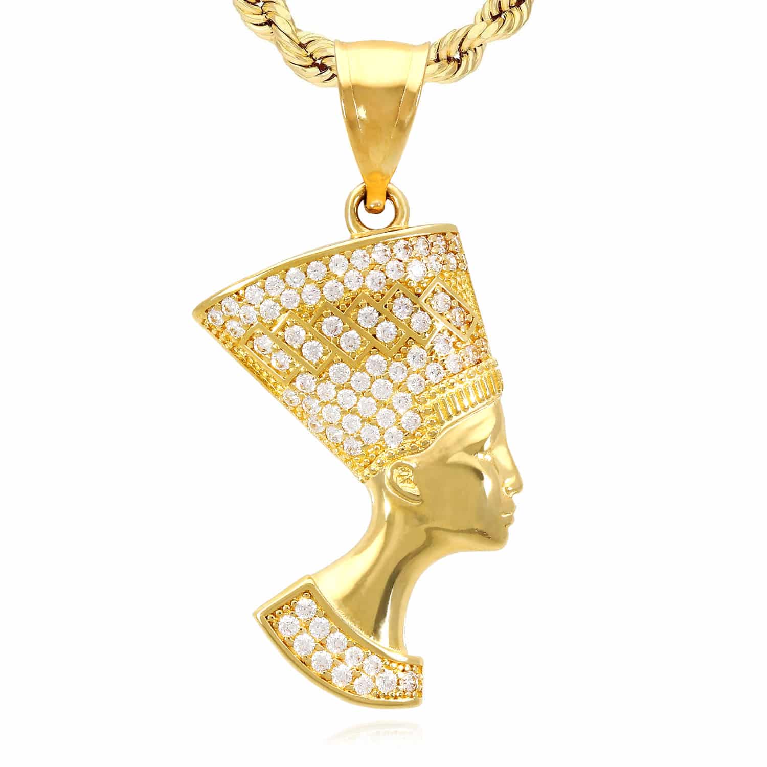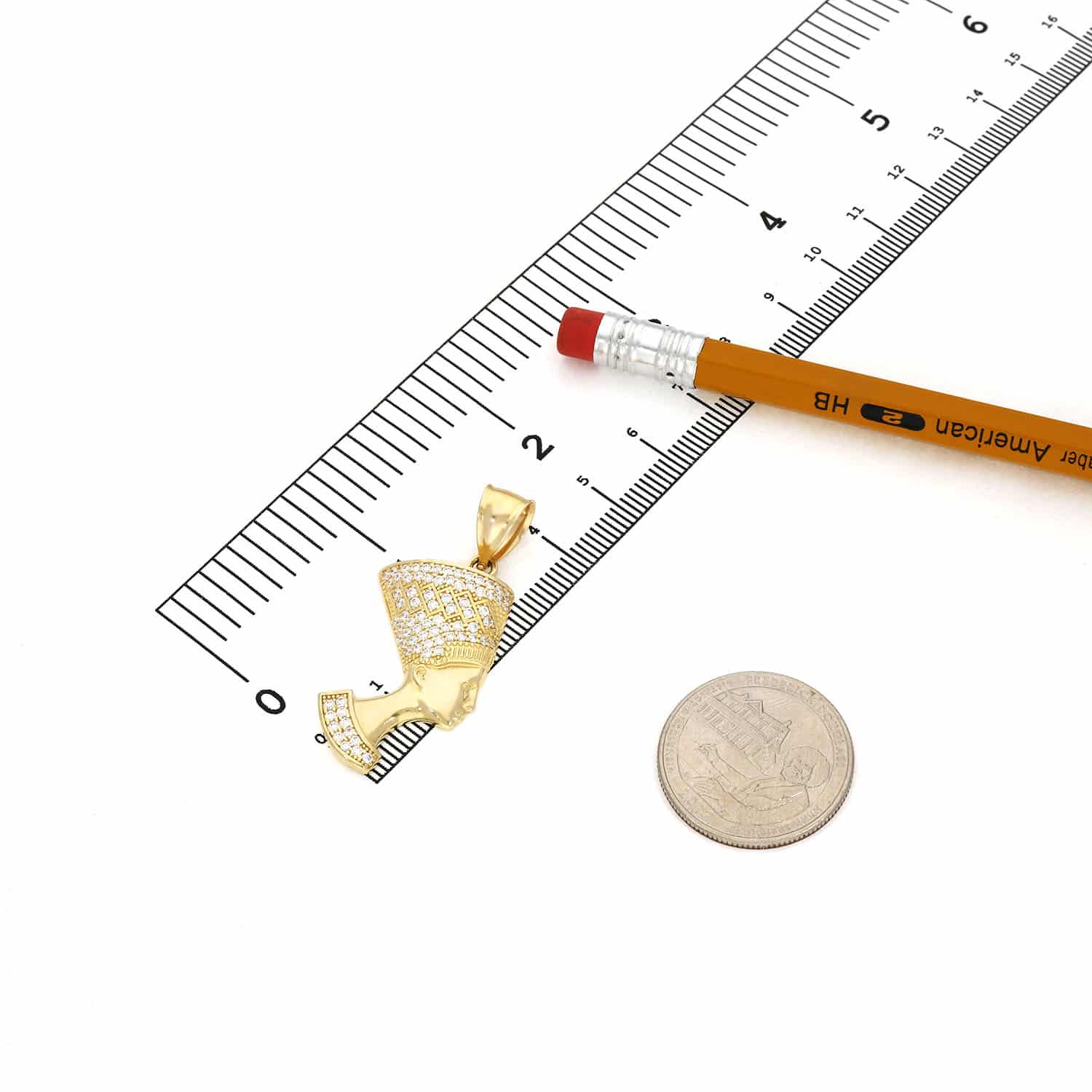 Read full return policy14K Yellow Gold CZ Nefertiti Head Pendant 1.8"