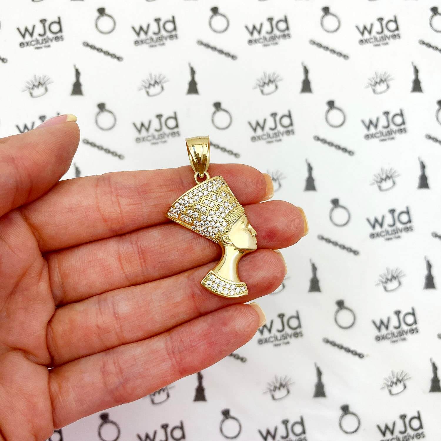 14K Yellow Gold CZ Nefertiti Head Pendant 1.8"Couldn't load pickup availability