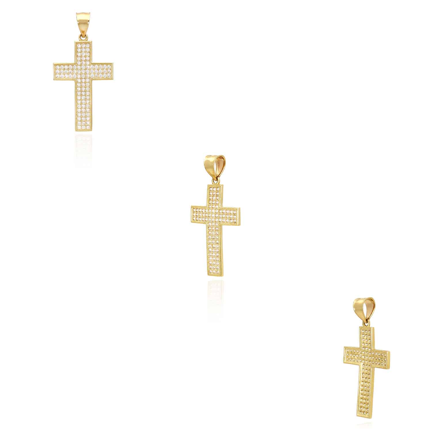 Read full return policy14K Yellow Gold CZ Pave Cross Pendant 1.57"