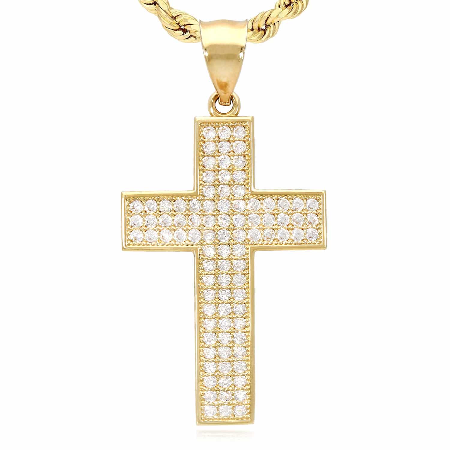 14K Yellow Gold CZ Pave Cross Pendant 1.57"Couldn't load pickup availability