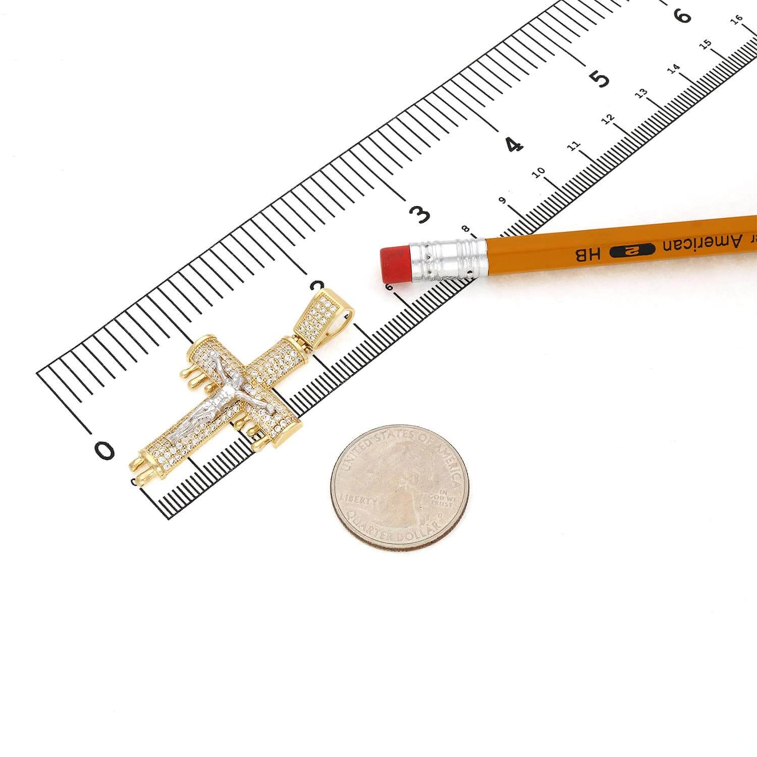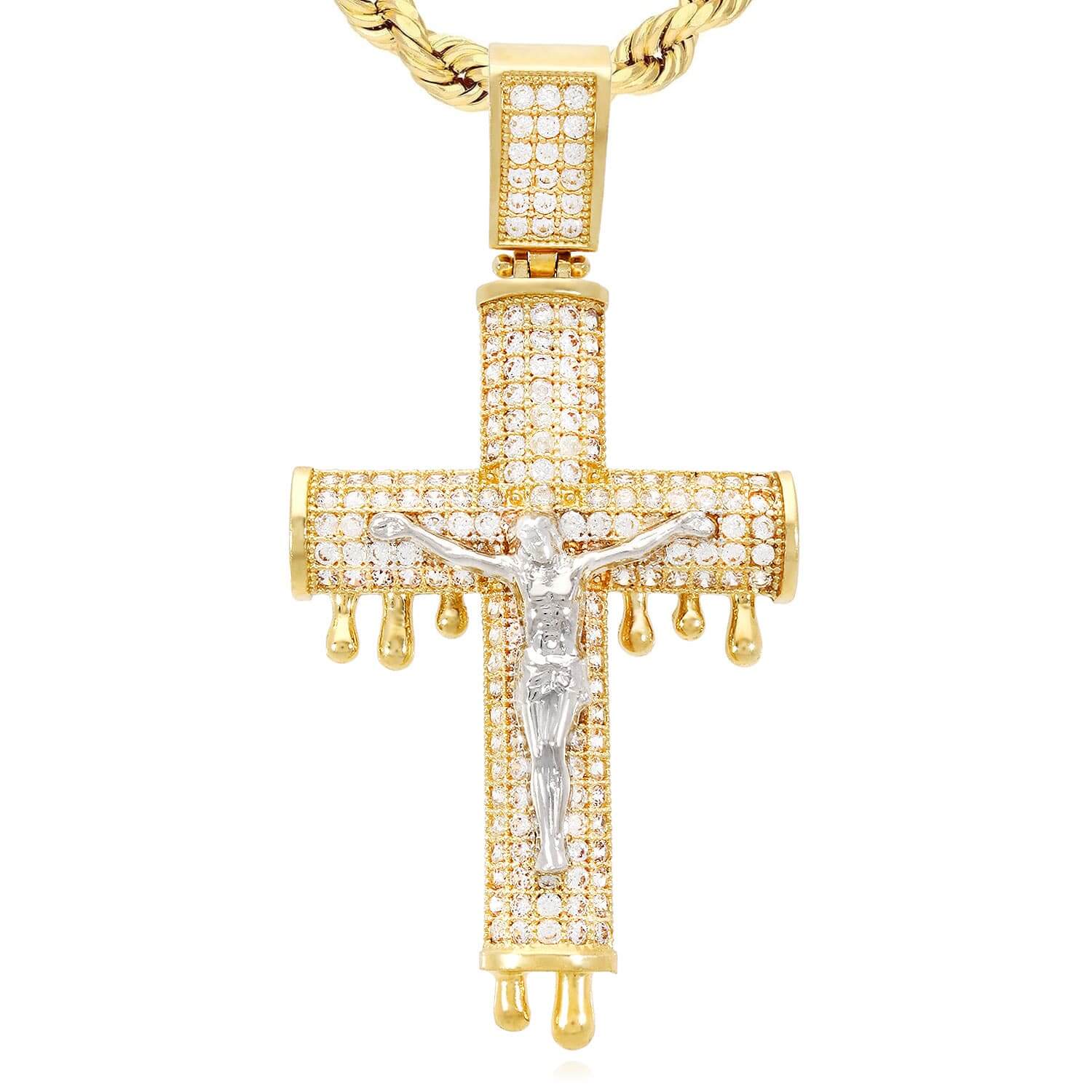 Read full return policy14K Yellow Gold CZ Pave Dripping Crucifix Cross Pendant 2"