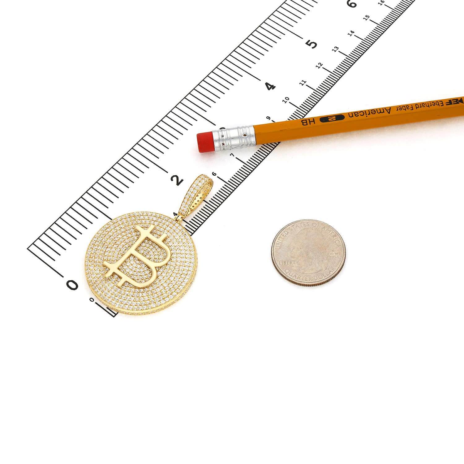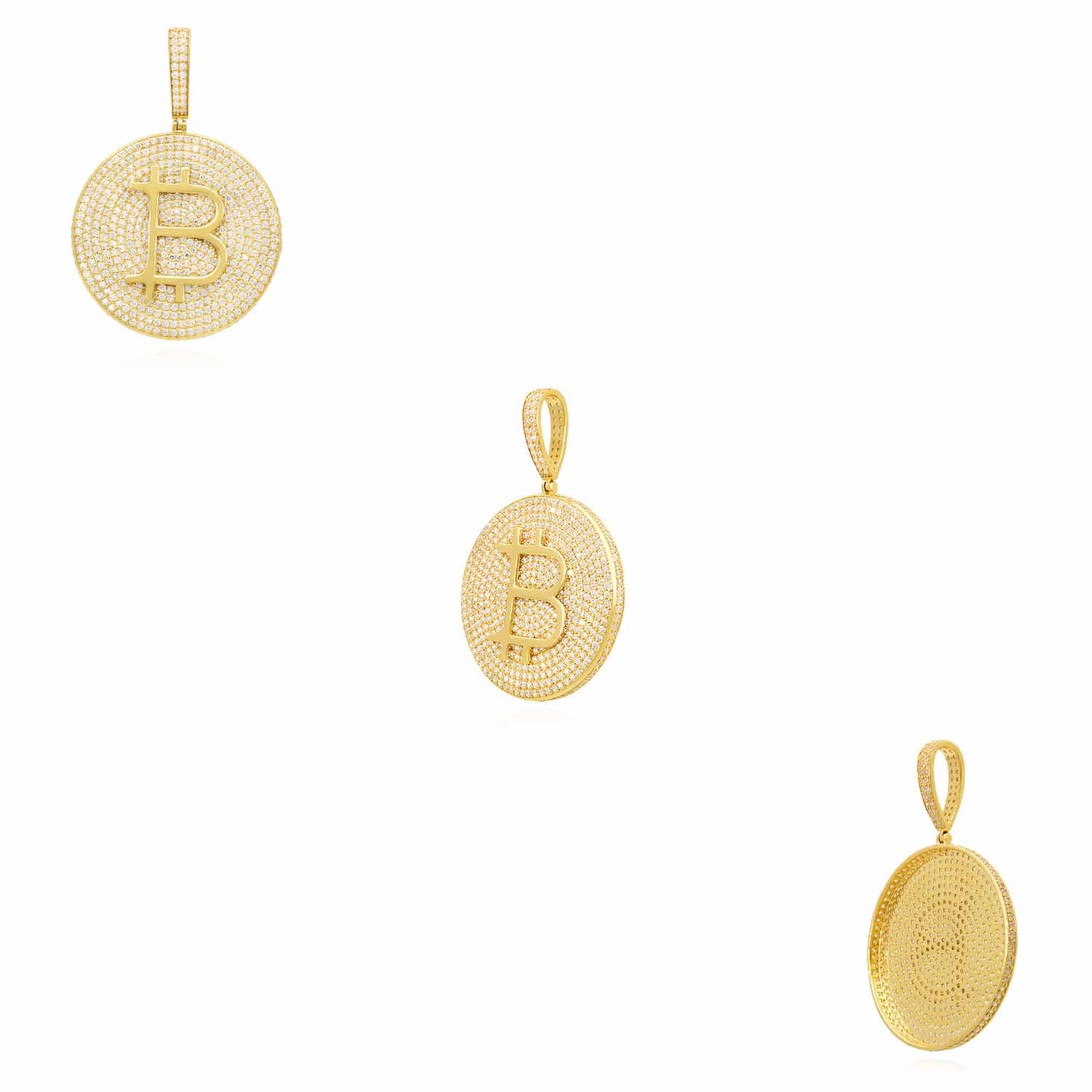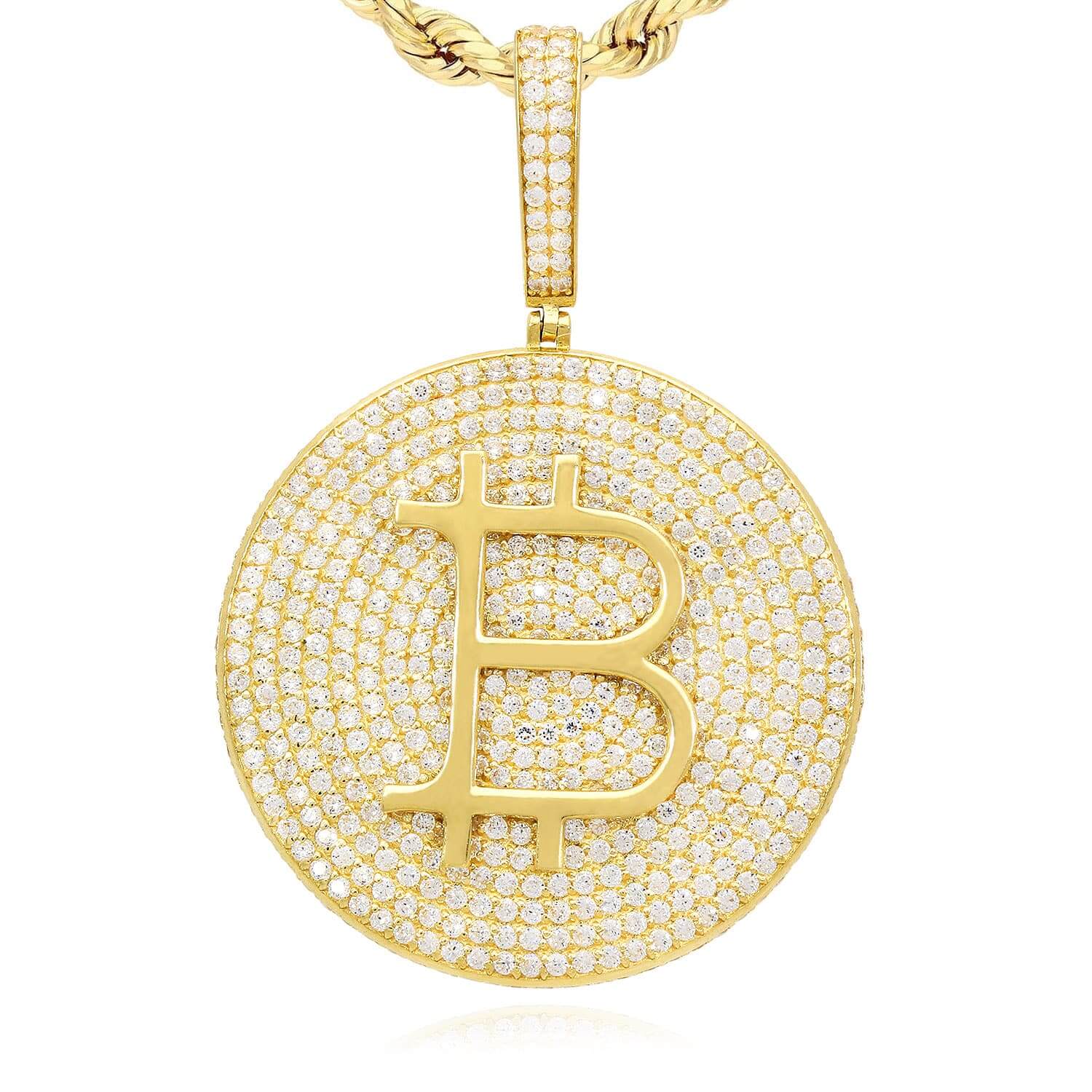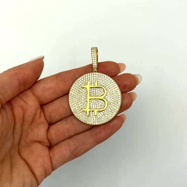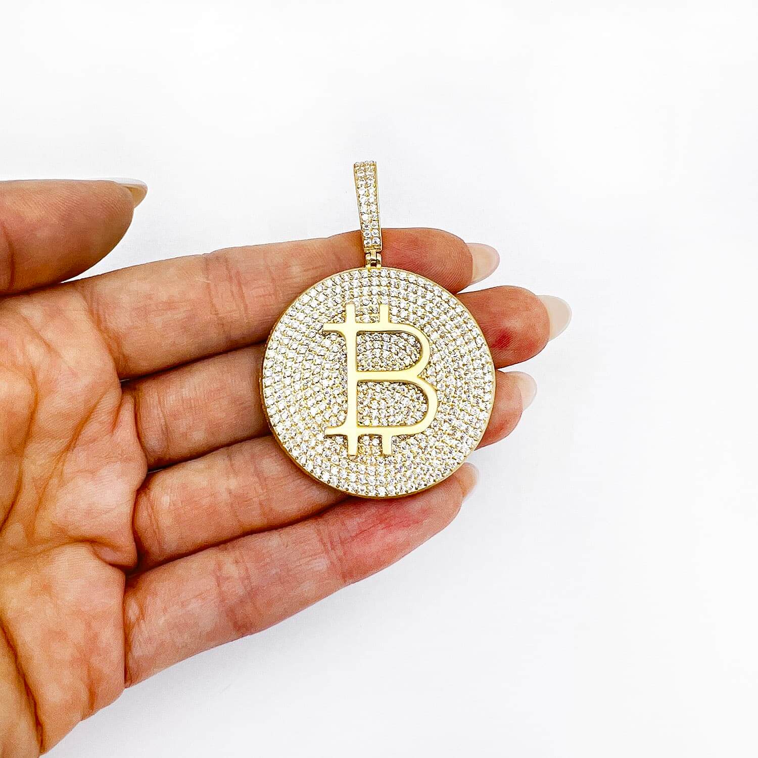 Read full return policy14K Yellow Gold CZ Pave Iced Bitcoin Pendant 2.2"