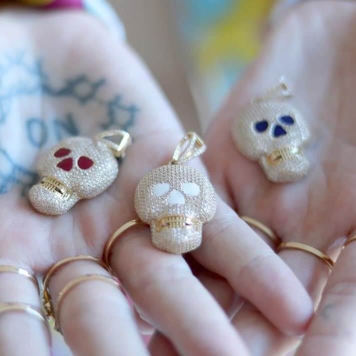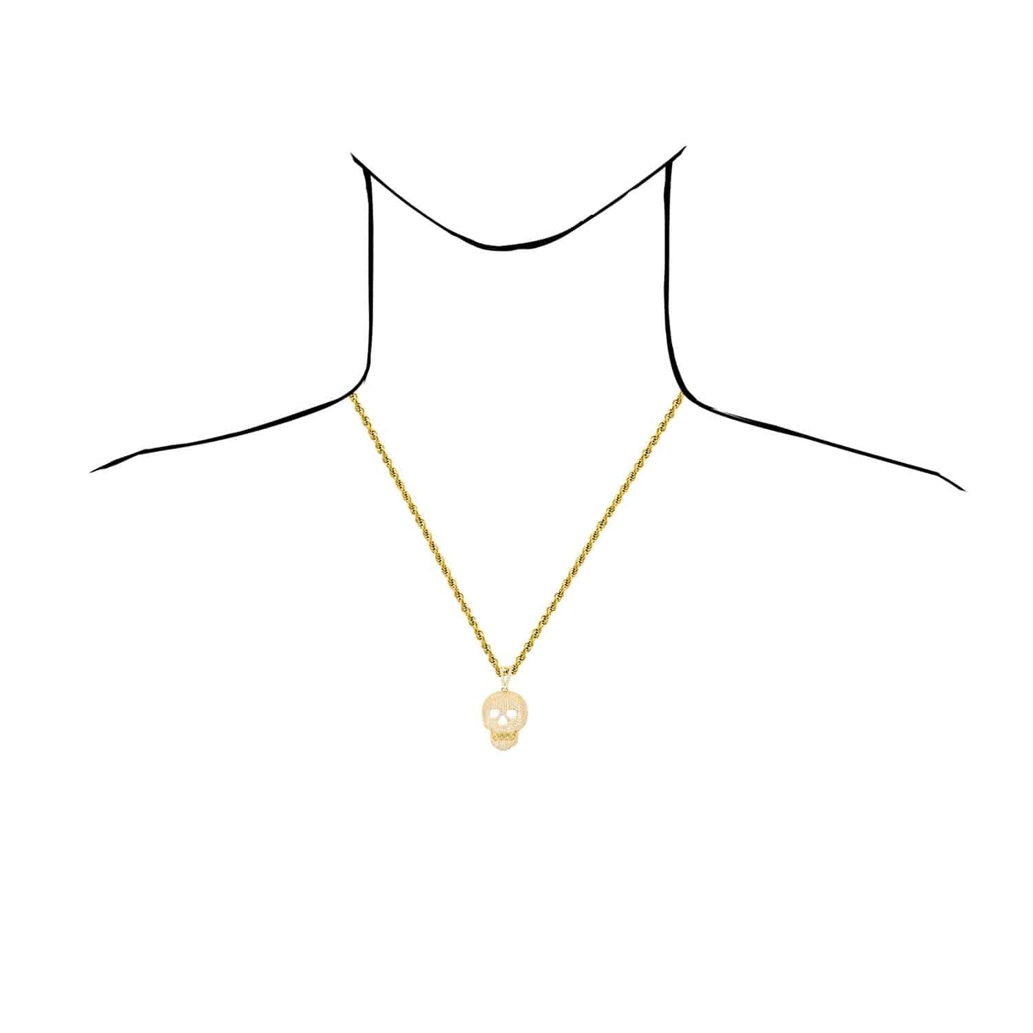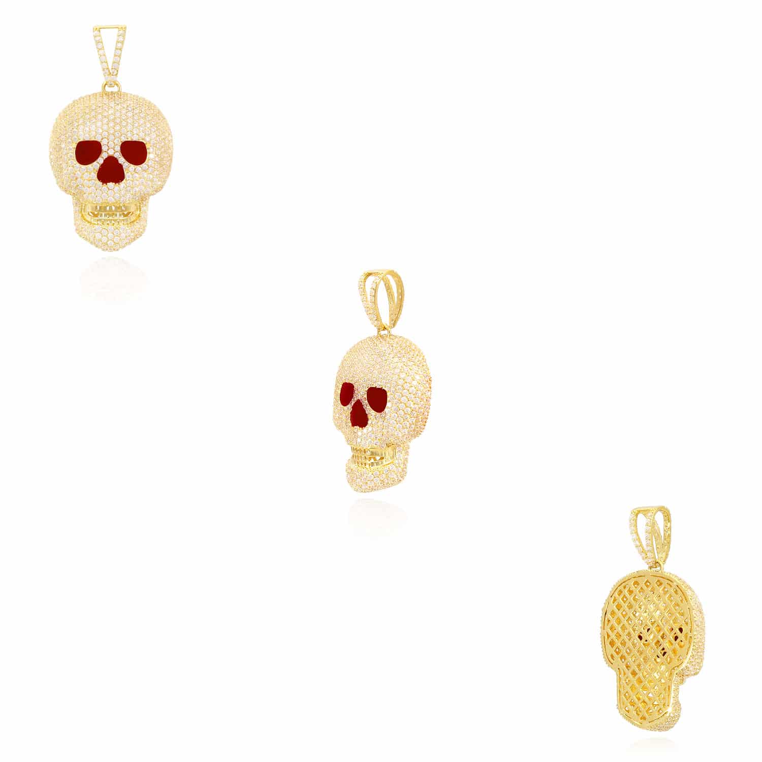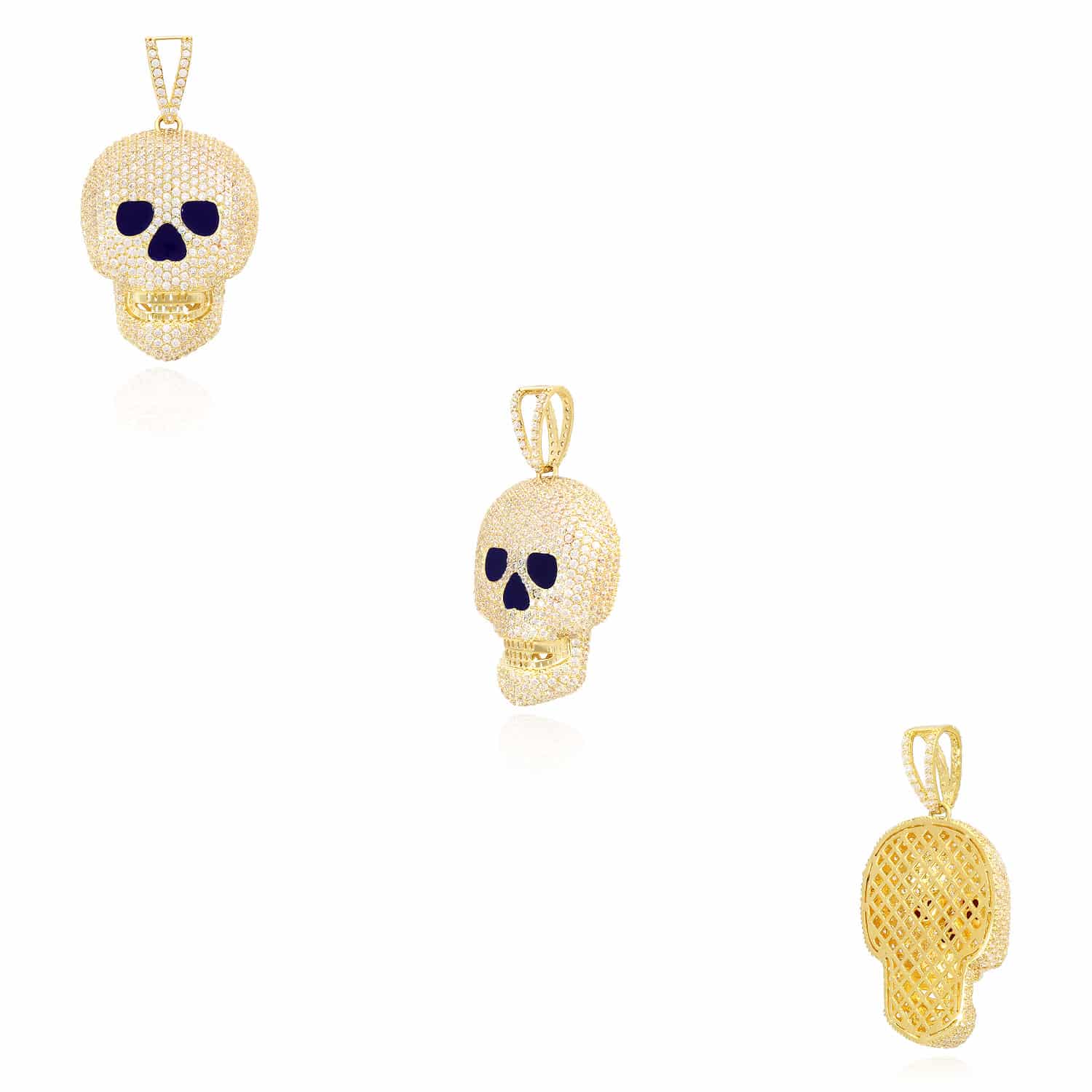 Read full return policy14K Yellow Gold CZ Pave Iced Out Classic Skull Pendant 1.6"