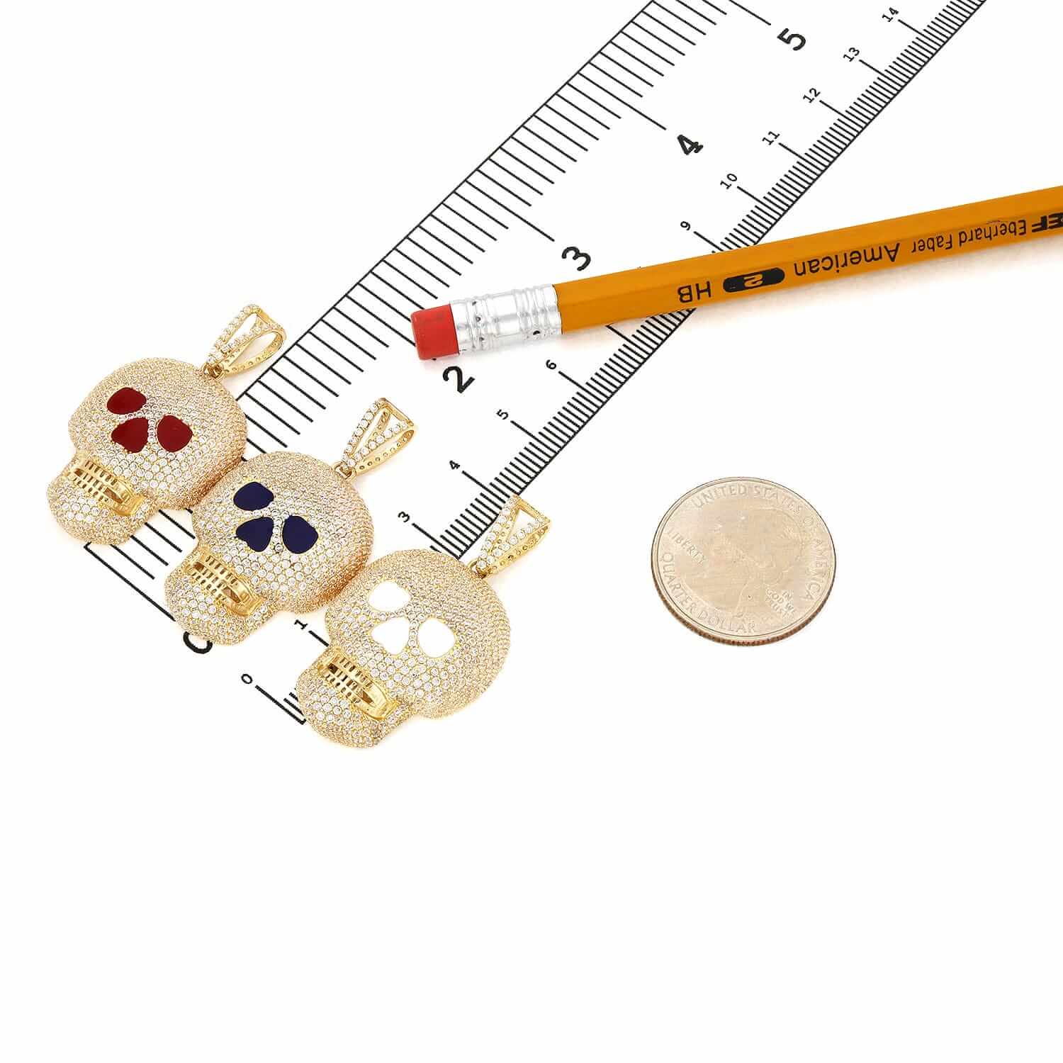 14K Yellow Gold CZ Pave Iced Out Classic Skull Pendant 1.6"Couldn't load pickup availability