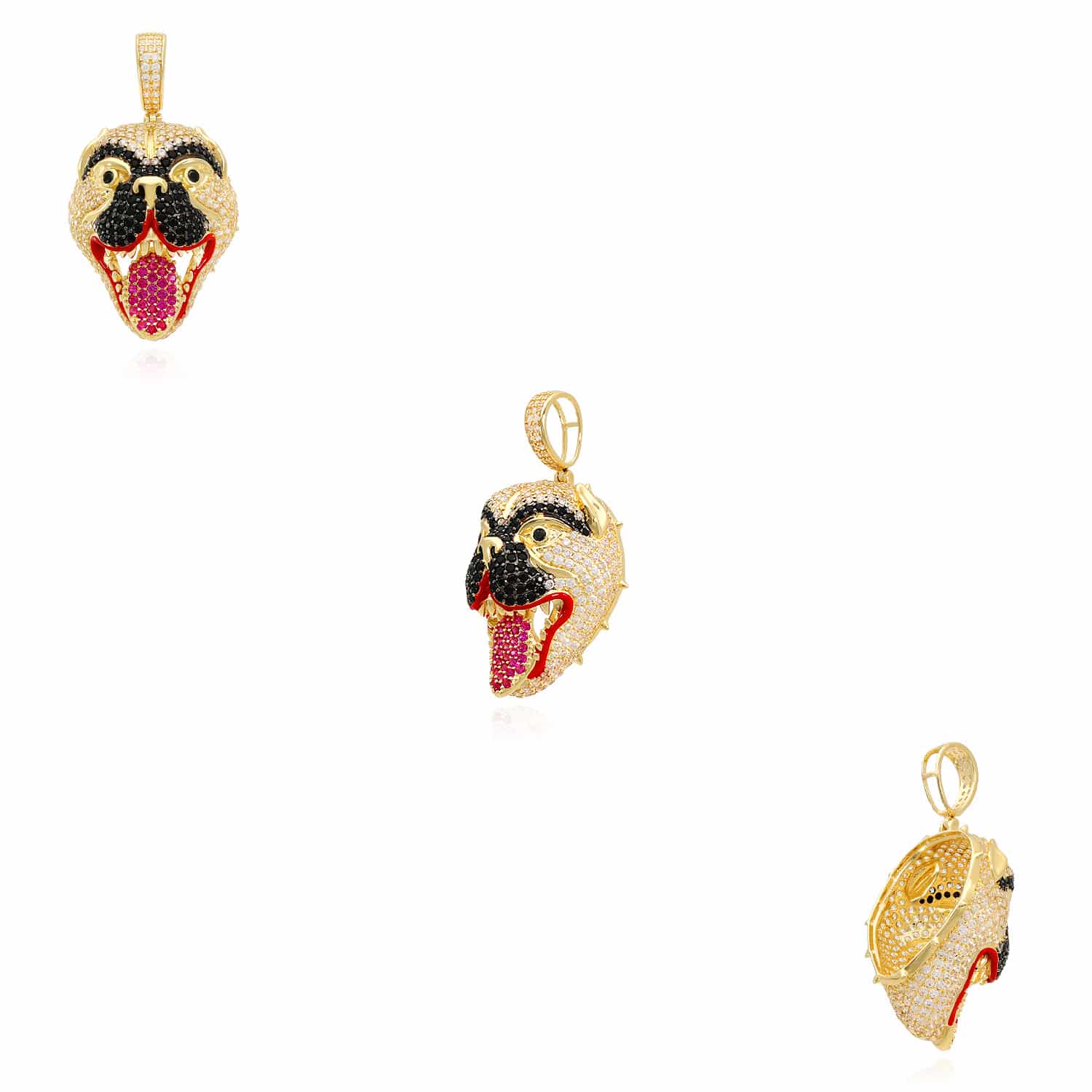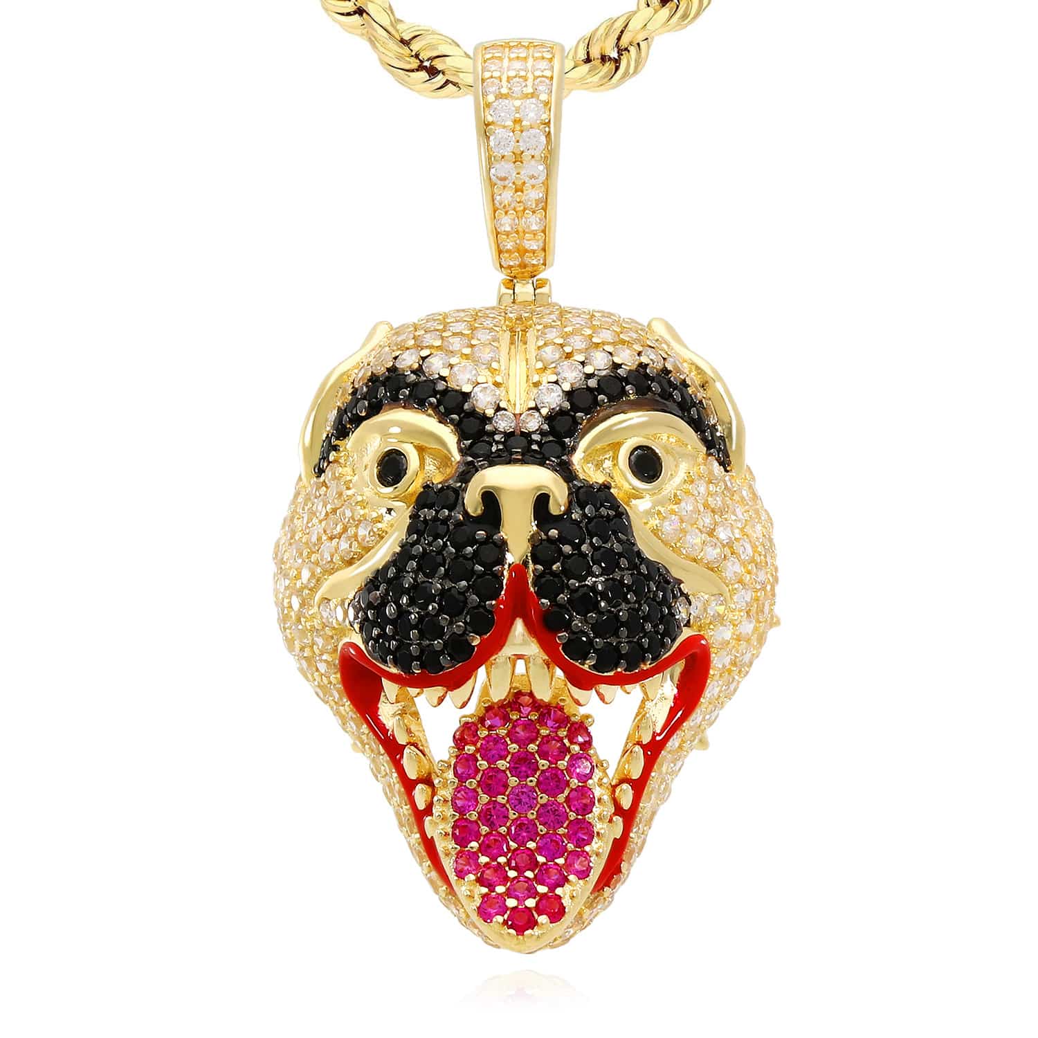 Read full return policy14K Yellow Gold CZ Pave Mad Dog Face Hip Hop Pendant 1.8"