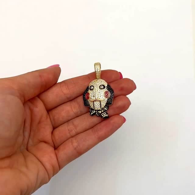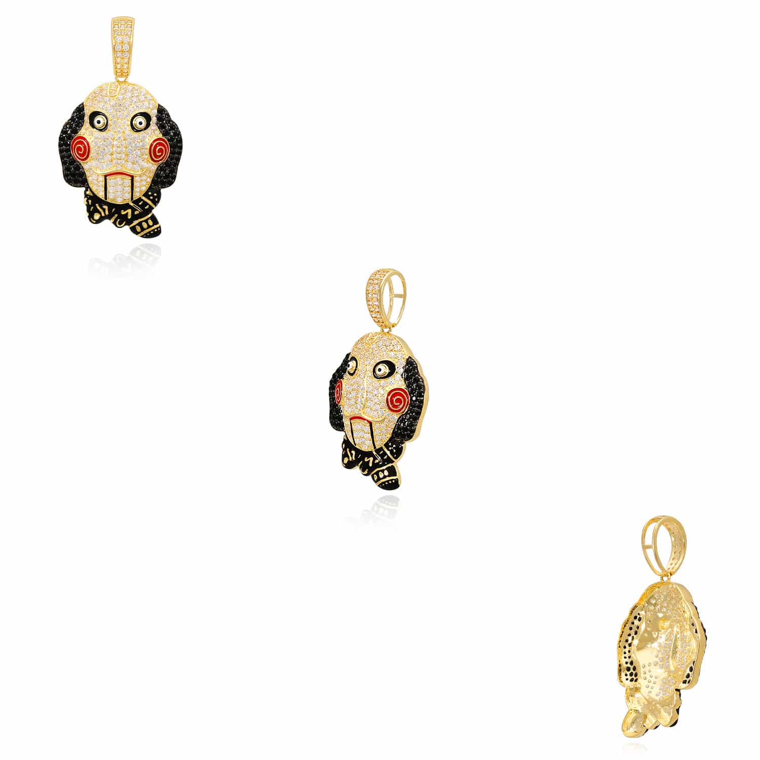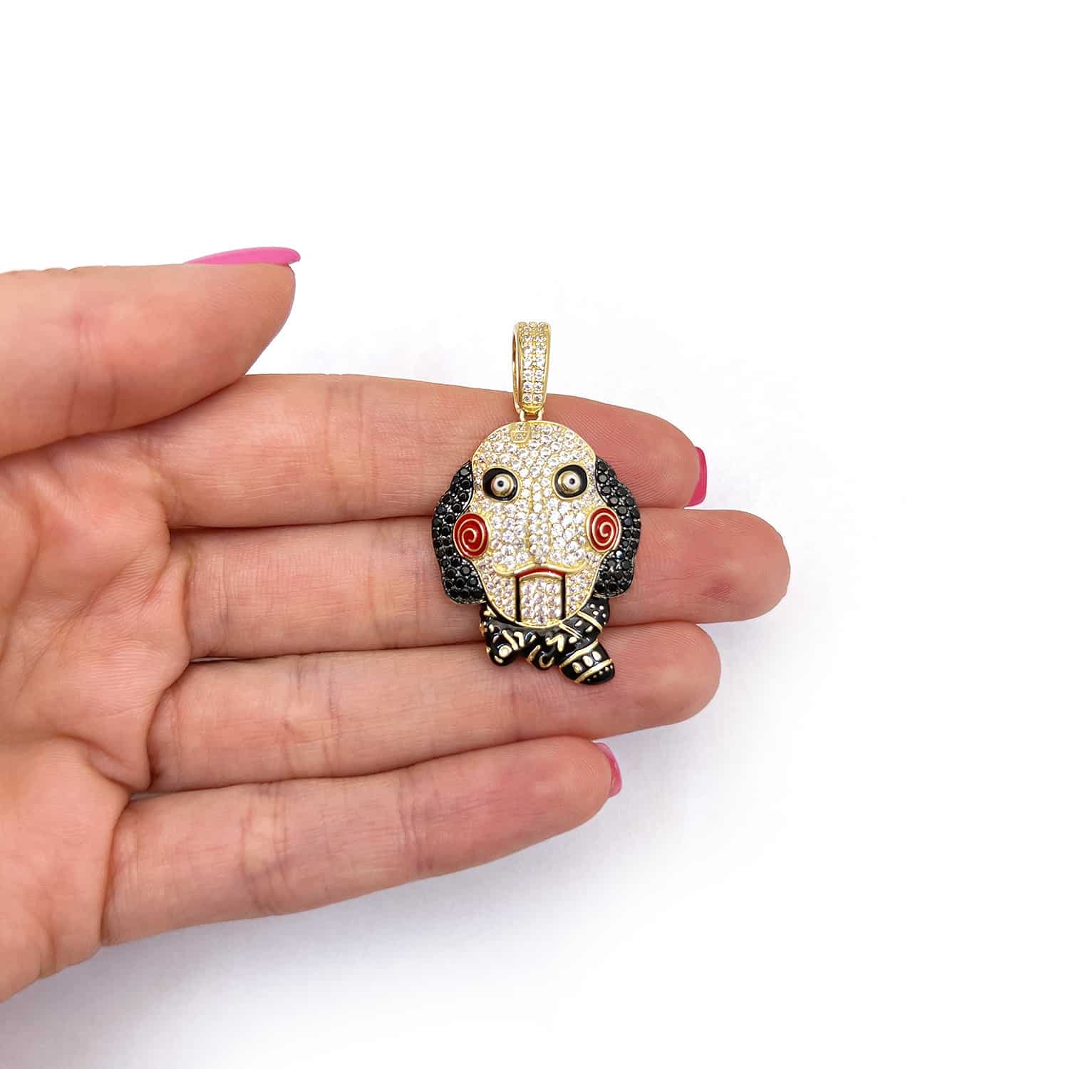 Read full return policy14K Yellow Gold CZ Pave SAW Jigsaw Mask Pendant 1.7"
