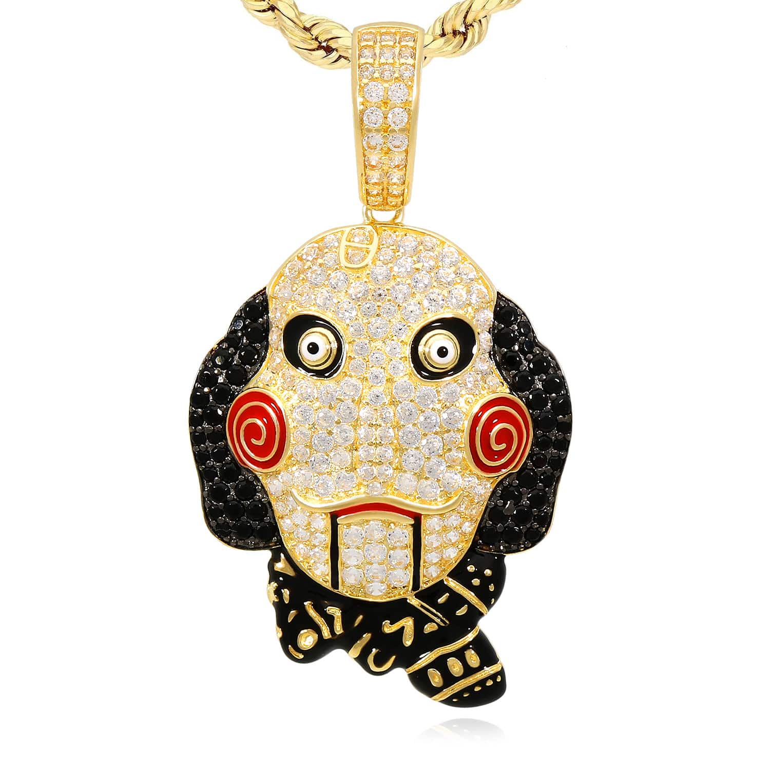 14K Yellow Gold CZ Pave SAW Jigsaw Mask Pendant 1.7"Couldn't load pickup availability